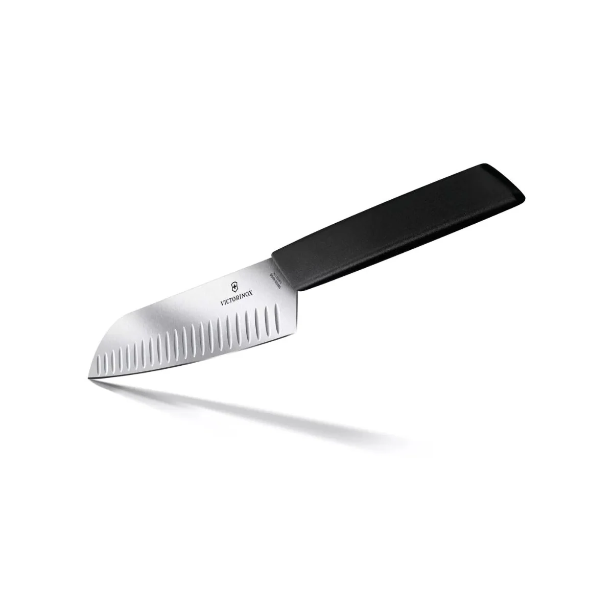 Cuchillo de cocina con filo con alvéolos. Presentamos nuestro último cuchillo multiuso en un tono rojo vibrante. Elija el cuchillo Santoku Swiss Classic para tener una experiencia alegre en la cocina, tanto a nivel estético como funcional. Esta hoja inspirada en el estilo japonés es idónea para manejar una amplia variedad de ingredientes en la tabla para picar. Desde fruta y verdura hasta pescado, carne y queso, es idóneo, preciso y está listo para rebanar y trocear donde sea que se encuentre.