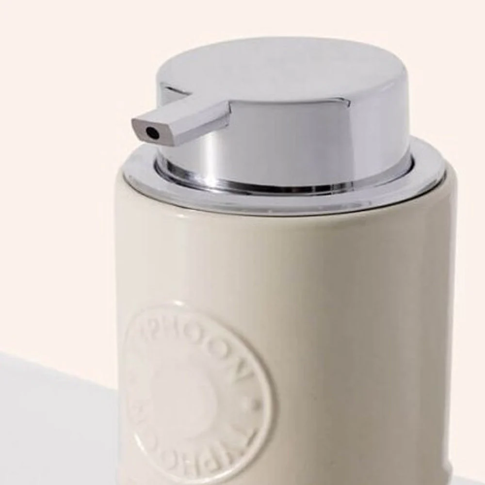 El Dispensador de Espuma Typhoon Living Cream es el accesorio perfecto para cocinas y baños. Como parte de la colección Living Cream, el dispensador es fácil de usar con su mecanismo de bomba manual, simplemente llene ¼ de jabón con ¾ de agua en la base, agite y presione la bomba para crear una espuma que cubra completamente sus manos. El uso de una bomba de espuma requiere menos consumo de jabón, lo que significa que durará más que un jabón líquido normal, lo que lo convierte en una opción ecológica y económica para su hogar. En un bello tono crema, el dispensador tiene una generosa capacidad de 320 ml. La base está hecha de cerámica duradera con un detalle de insignia redonda en relieve, se completa el set con bases de almohadillas de espuma para ayudar a proteger su superficie. Capacidad: 320 ml