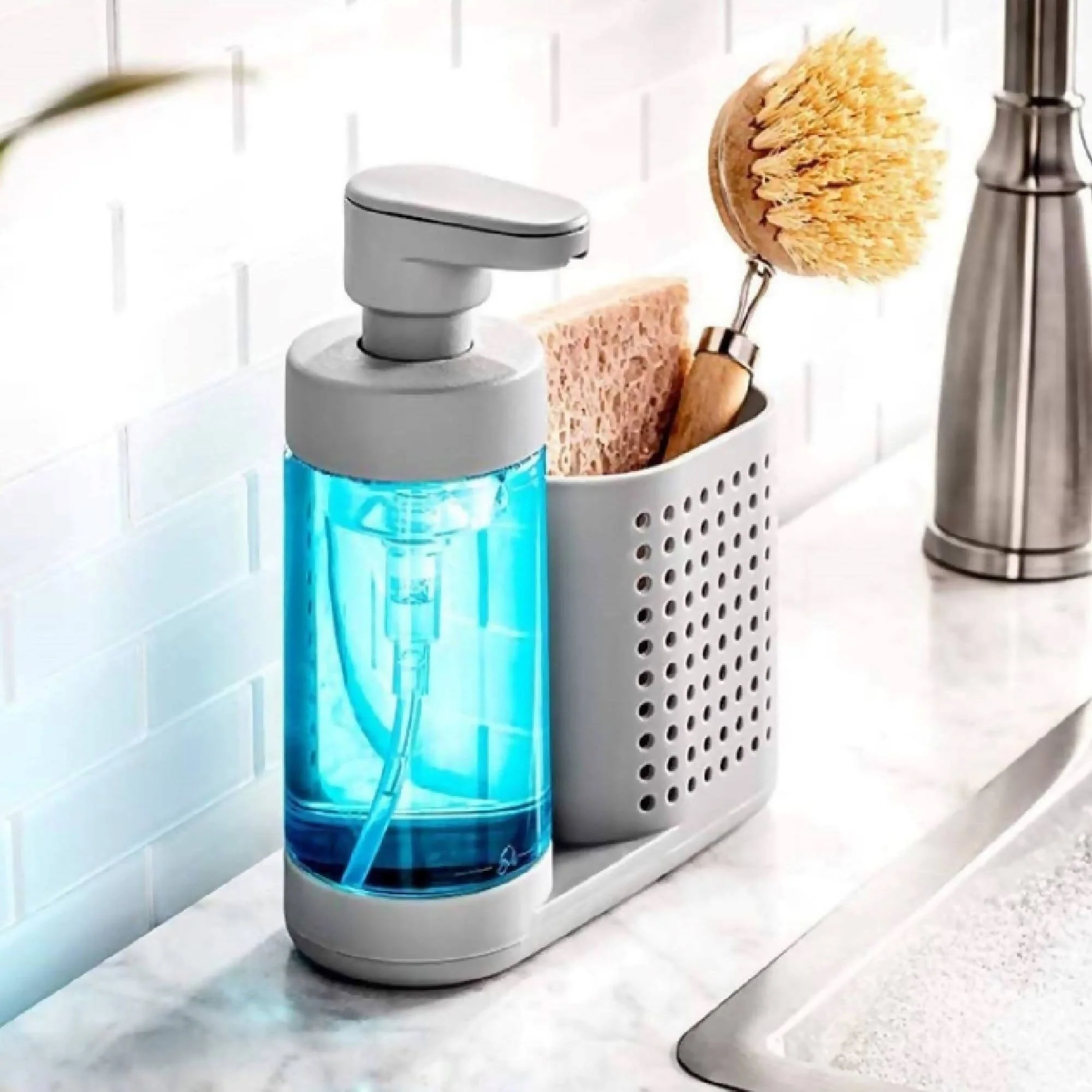 La estación de jabón espumoso Madesmart® es el asistente de lavado de platos que estaba esperando. Guarde las esponjas y estropajos en el compartimento ventilado para un secado más rápido y más higiénico. Use las líneas de llenado de la botella para crear la espuma perfecta y extender significativamente la vida útil de su jabón para platos, reduciendo el desperdicio ambiental. Si bien la base resistente y de agarre suave mantiene la estación en su lugar, la botella de la bomba de jabón se puede quitar cómodamente para una limpieza portátil.