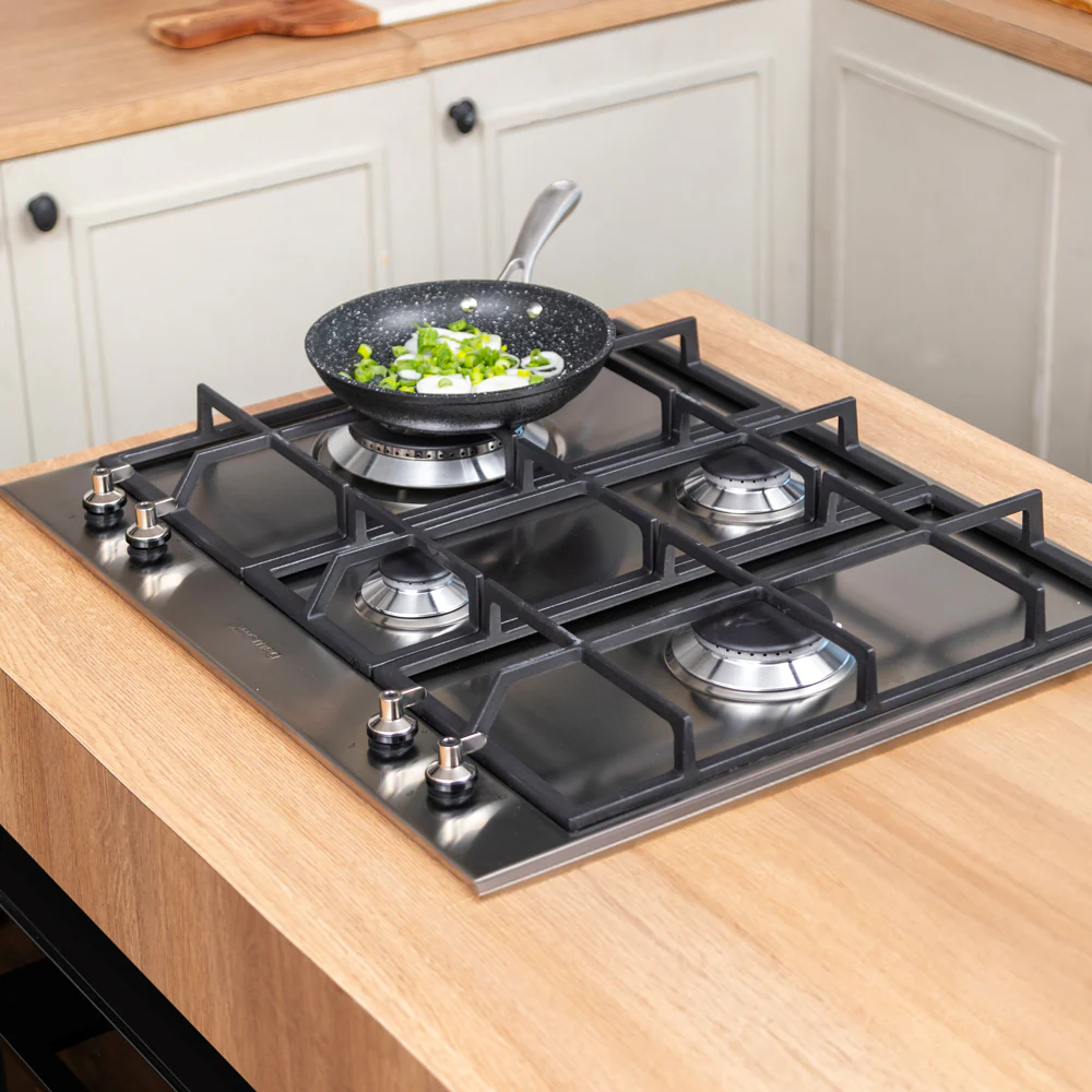 La Encimera a Gas Clásica PX364L de Smeg, con diseño italiano, combina elegancia y funcionalidad. Está equipada con cuatro quemadores, incluyendo un quemador ultra rápido con doble corona para una cocción potente y eficiente. Las parrillas de fierro fundido en color negro no solo son duraderas, sino que también aportan un toque sofisticado. Esta encimera de gas mide 40 x 600 x 510 mm, ofreciendo un diseño compacto y versátil, ideal para cualquier cocina.