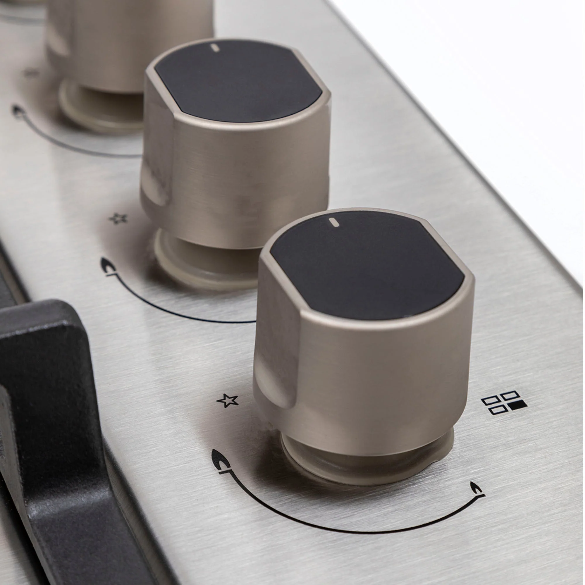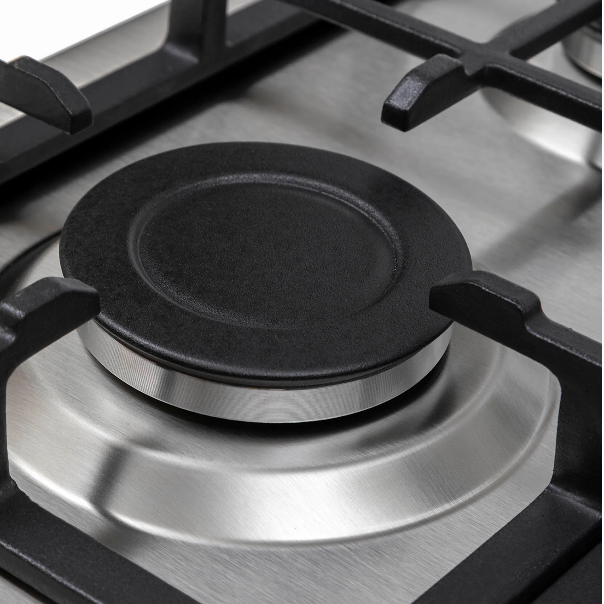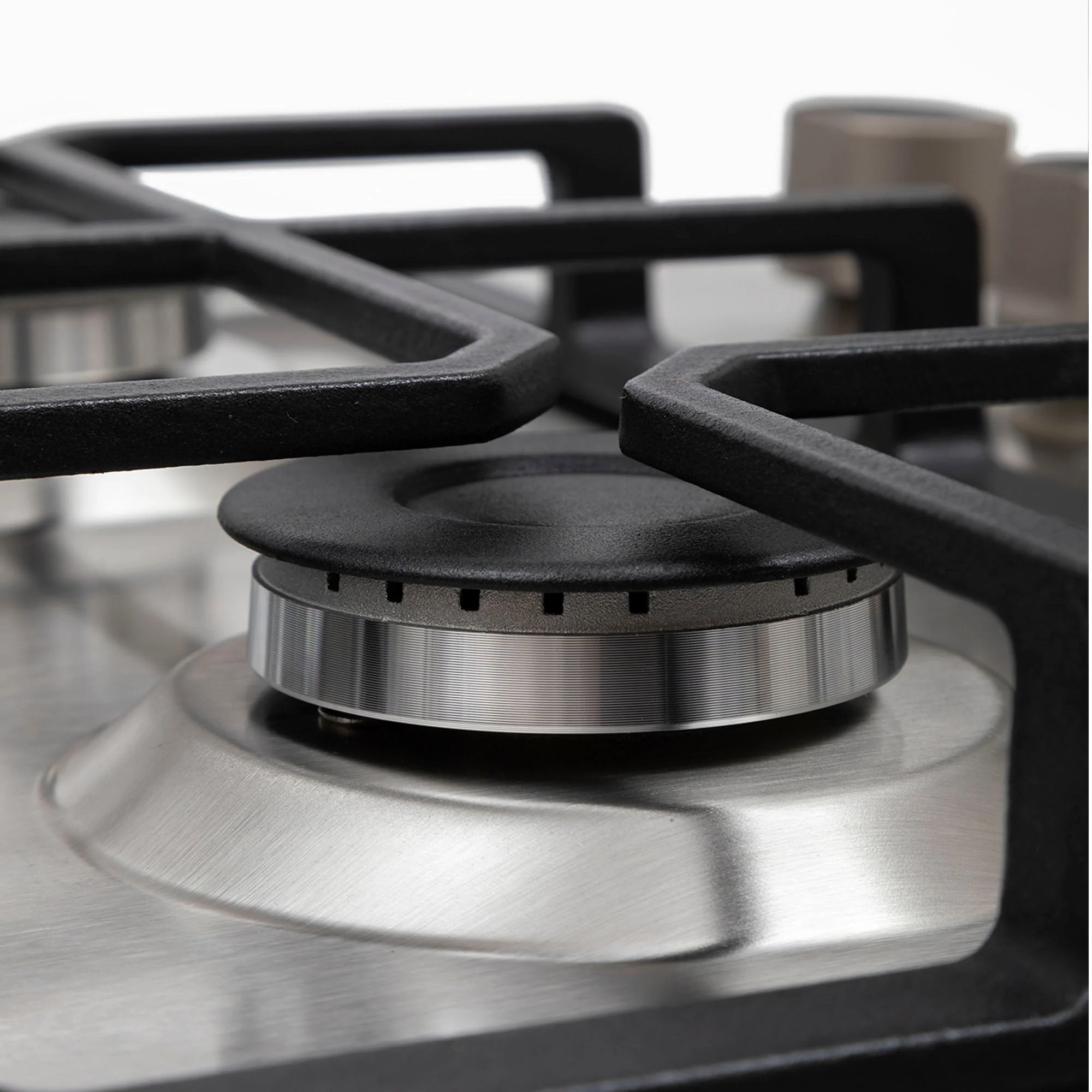 La Encimera Kubli Teo de 4 quemadores, de 58 cm, ofrece potencia y seguridad. Su sistema FFD corta automáticamente el gas si la llama se apaga, garantizando protección. Con parrillas de hierro fundido y perillas de metal, combina durabilidad y estabilidad. Incluye un quemador triple corona para cocciones rápidas y un quemador semi-rápido para mayor versatilidad. Con medidas de 540×400 mm, es perfecta para optimizar el espacio en la cocina.