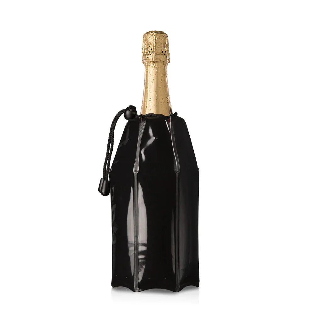 Mantén tu Champagne perfectamente frío con el Enfriador Active Cooler Para Champagne de VacuVin. Este elegante enfriador en negro no solo enfría rápidamente tu botella favorita en tan solo 5 minutos, sino que también la mantiene a la temperatura ideal hasta el último sorbo. Su funda aislante reutilizable, con 6 bolsillos de gel no tóxico, es fácil de usar: simplemente guárdala en el congelador durante al menos 6 horas antes de su uso. Diseñado para ajustarse a botellas de champagne de 0,7 a 1 litro, este enfriador es perfecto para cualquier ocasión, ya sea un picnic, una barbacoa o un día de playa. Después de usarlo, aplánalo y guárdalo en el congelador para la próxima ocasión. Adquiere tu Enfriador Active Cooler de VacuVin y disfruta de champagne refrescante en cualquier evento al aire libre o celebración especial.