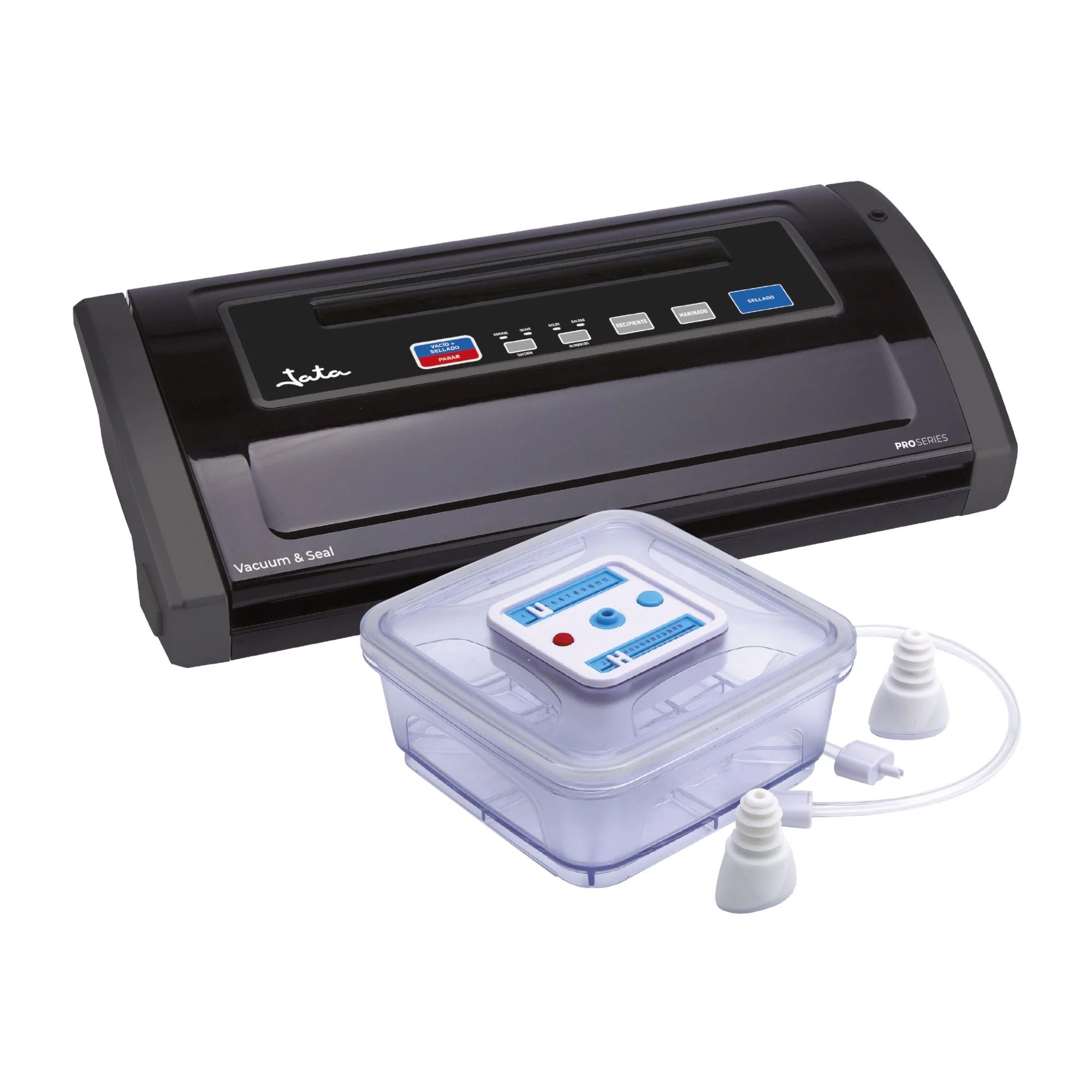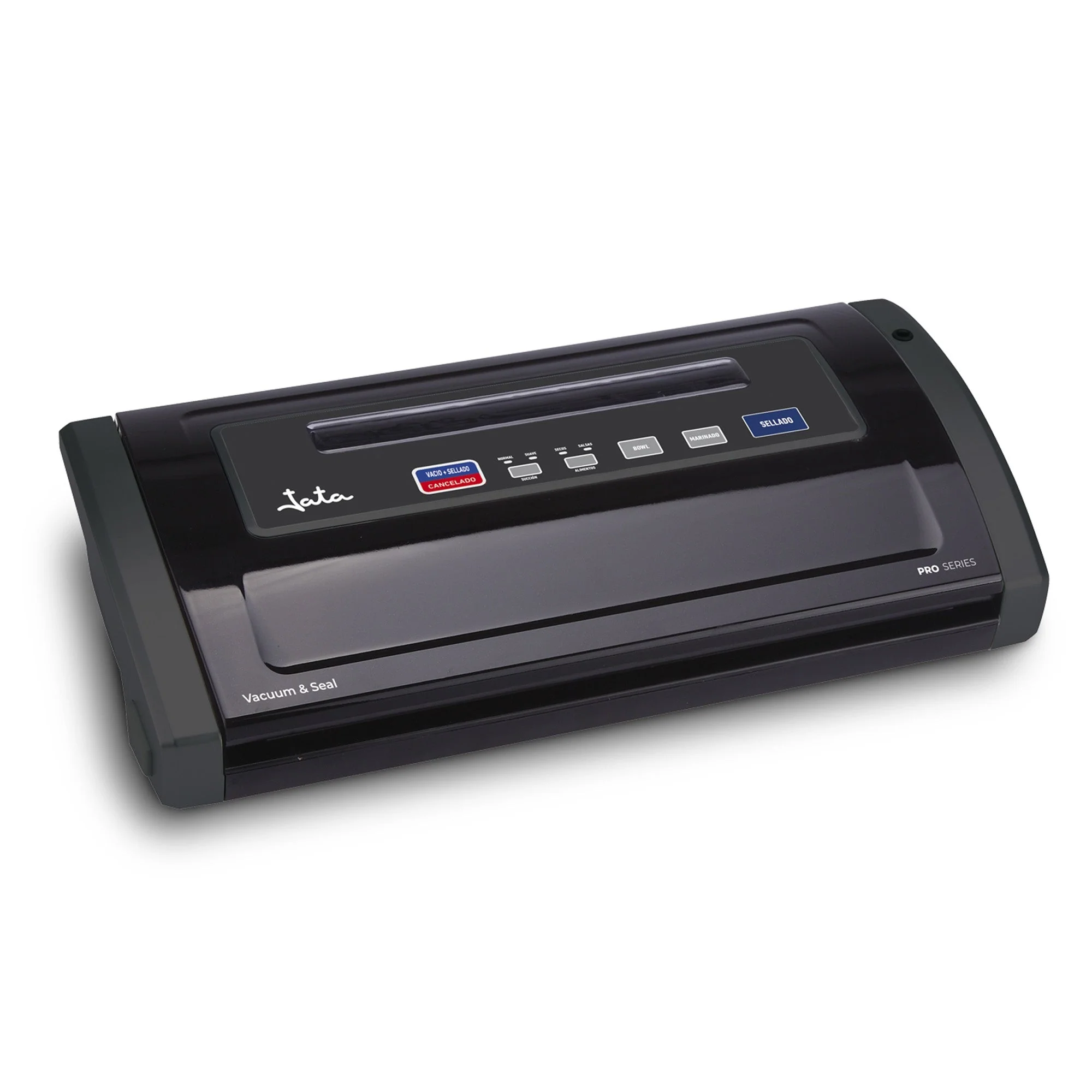 Multiplica por 5 la vida de los alimentos y mantiene intactas sus propiedades nutritivas. Envasado al vacío y sellado, higiénico y saludable. Sistema de vacío manos libres. Potencia de succión: máx. 0,85 bar. Capacidad de la bomba: 12 L/min. Funciones: – Solo sellado – Sellado suave – para evitar la deformación de alimentos delicados después del vaciado. Tiempo de sellado: 6 seg. alimentos secos y 9 seg. salsas. Función de marinado. Función específica de vacío del bowl. Elegante diseño, ligero y compacto.