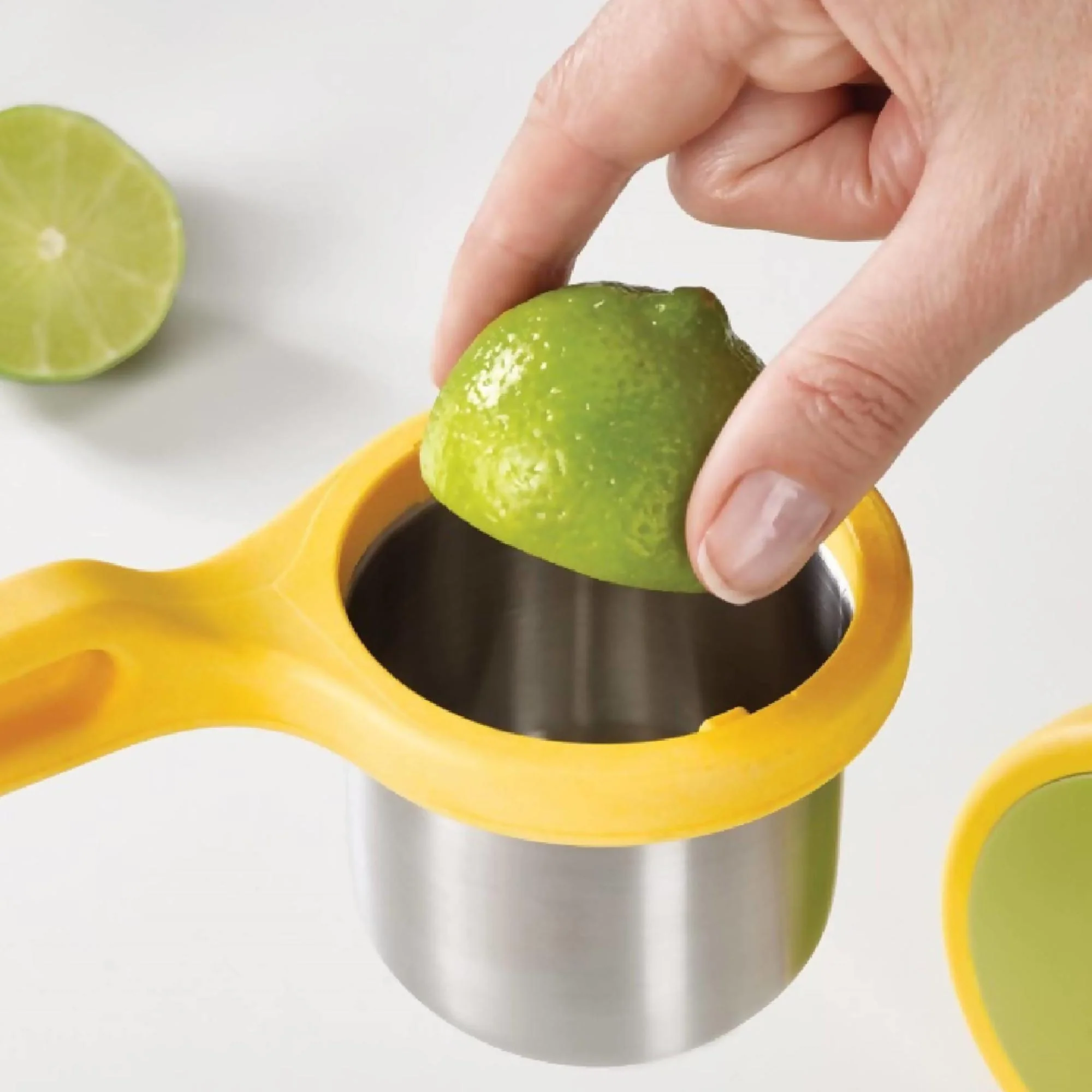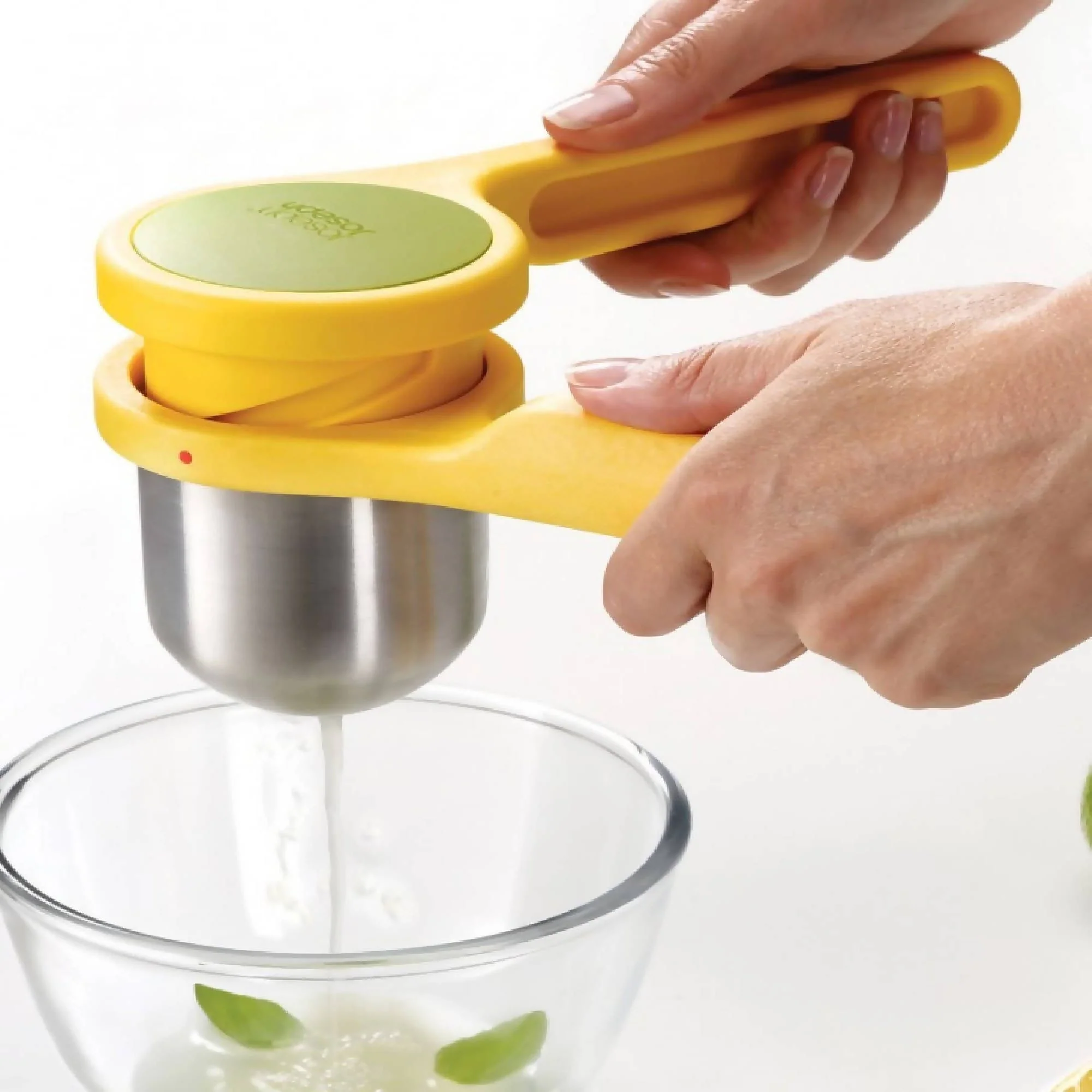 El innovar diseño de 2 piezas del Exprimidor de Cítricos Helix de Joseph Joseph exprime cítricos de manera más fácil que los exprimidores tradicionales. A diferencia de estos donde la fuerza es hacia abajo, la fuerza que se ejerce con Helix es torsión horizontal. Fabricado de acero inoxidable y nylon, se separa para ser limpiado fácilmente.
