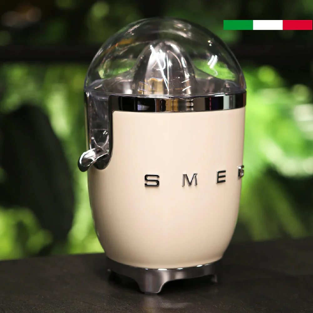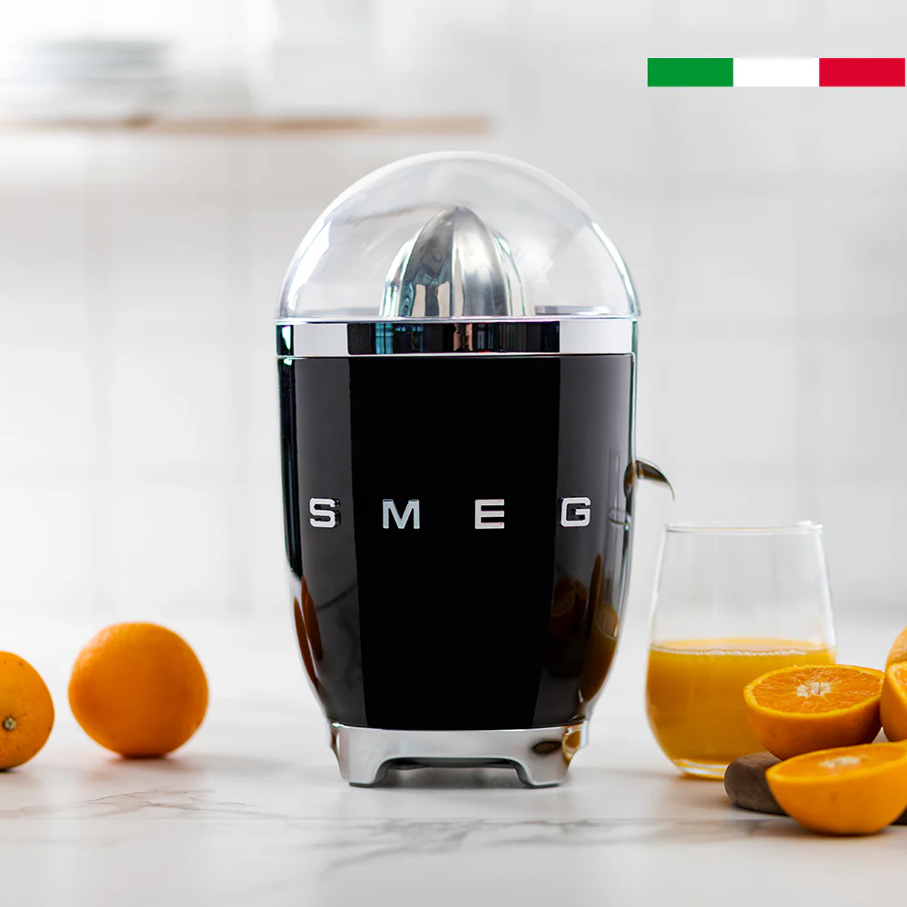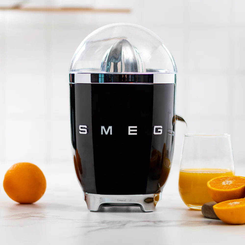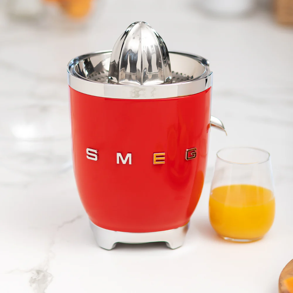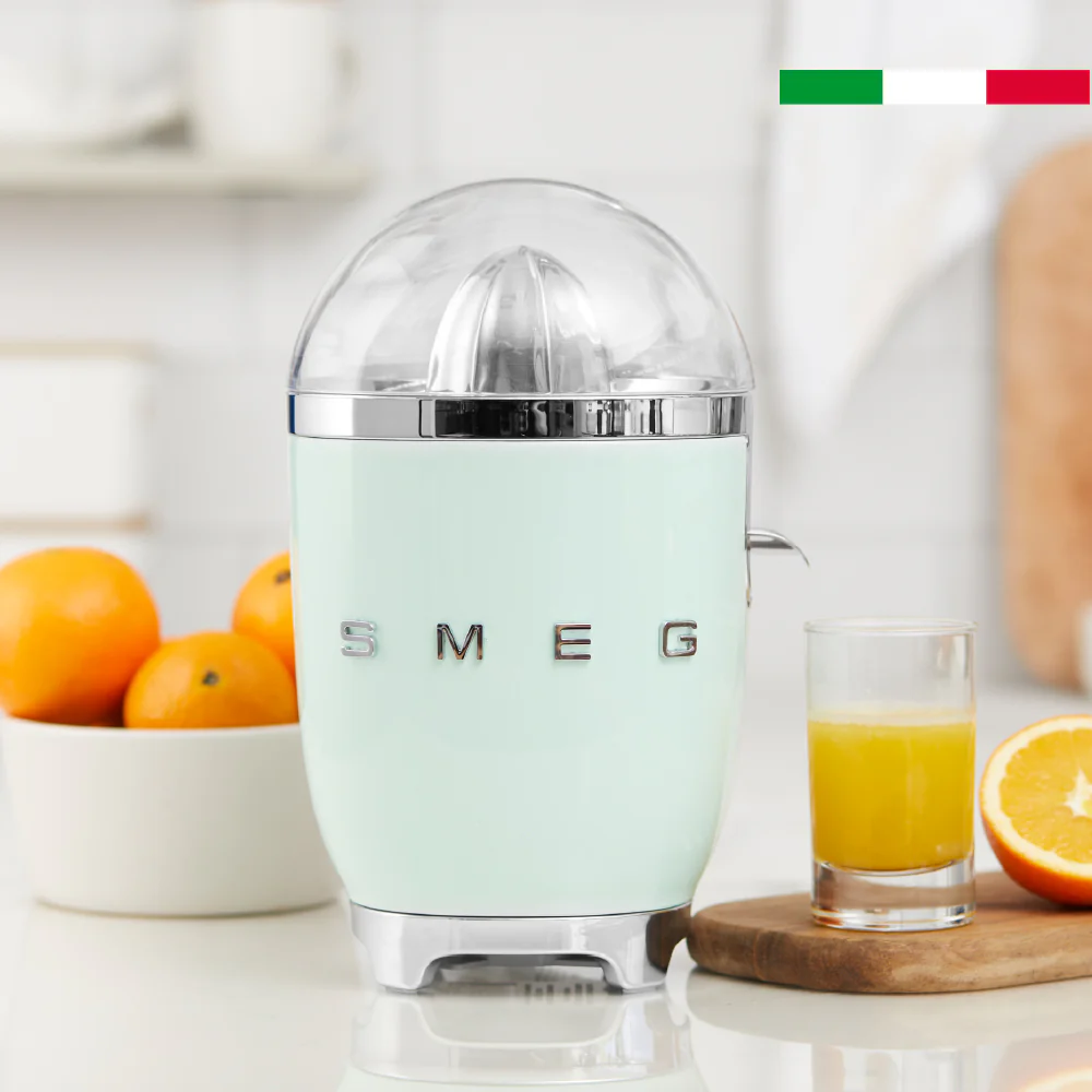 Con el nuevo exprimidor Smeg, podrás disfrutar de frescos y naturales jugos de naranja, pomelo y mucho más. Con boquilla y filtro de acero inoxidable, una base antideslizante, colores brillantes y una inmejorable estética vintage. Además cuenta con 70 watts de potencia, gran capacidad y sistema de presión para un giro antihorario, obteniendo resultados únicos en tus preparaciones