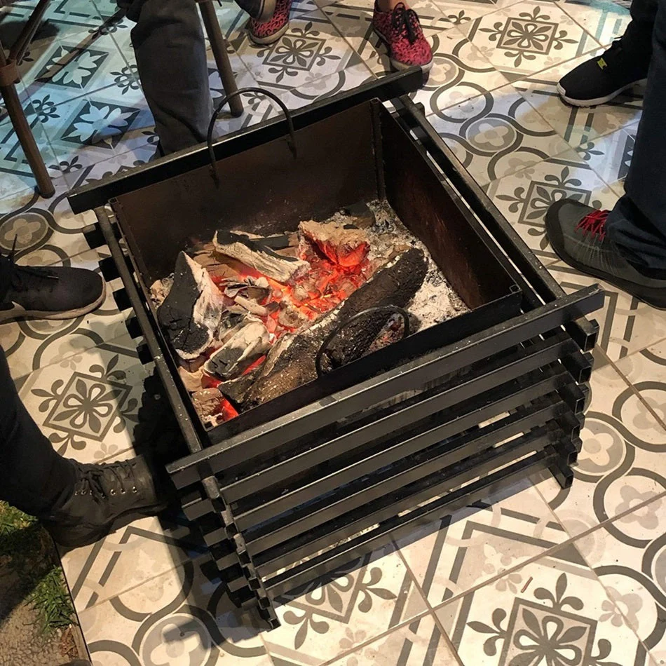 El Fogón Brasero Kas Chile, elaborado en fierro de alta resistencia, es ideal para compartir con amigos o familia y disfrutar al aire libre todo el año alrededor de la fogata. Úsalo en la terraza, el jardín, el parque, la playa, el camping al aire libre, etc! Se compone de una estructura exterior de fierro cuadrada negra y un contenedor interior de fierro desmontable para limpieza, color negro. El contenedor interior se encuentra elevado del piso para evitar quemaduras a la superficie de contacto. Las medidas del fogón son 54 x 54 x 43 cm (altura). Se puede utilizar con carbón o leña.