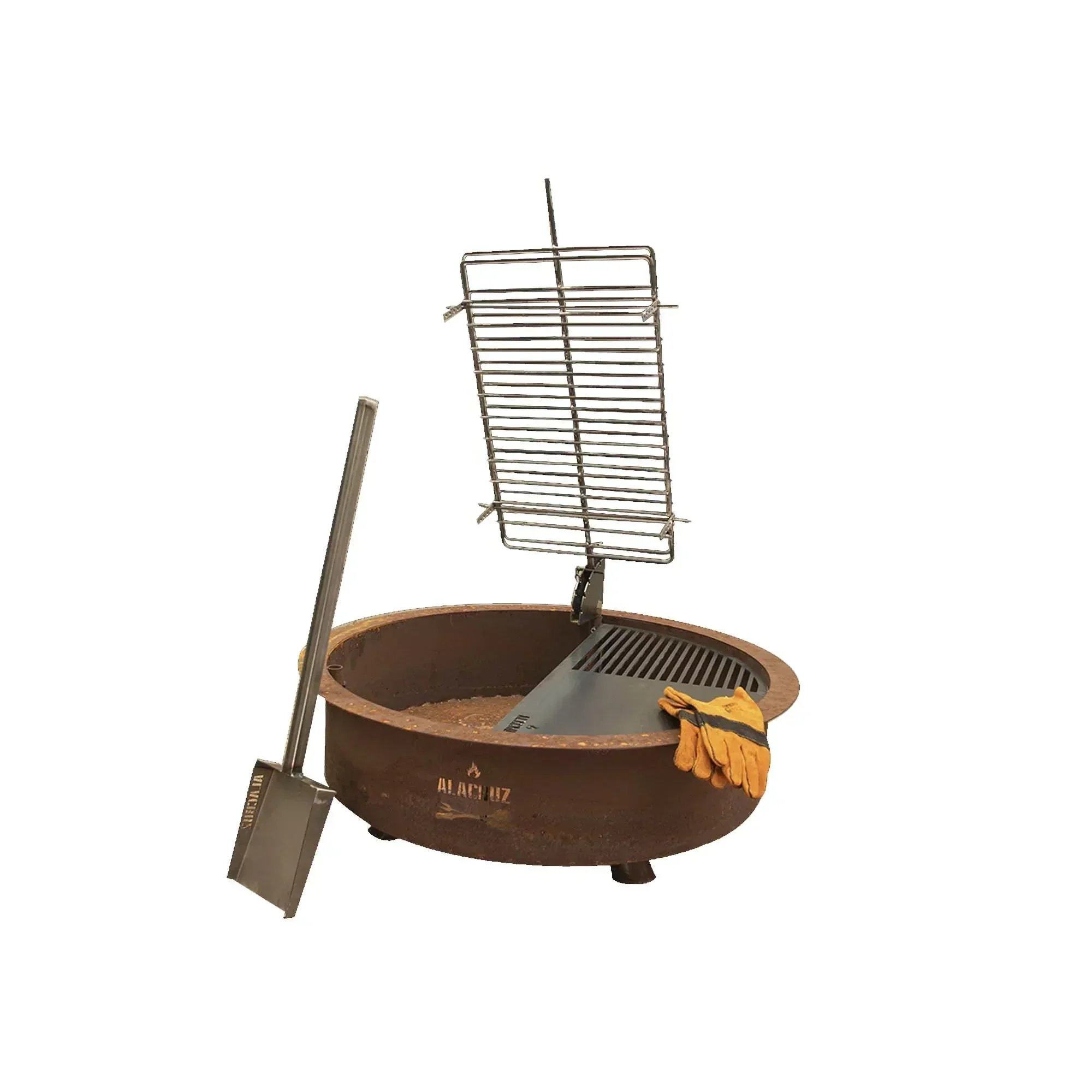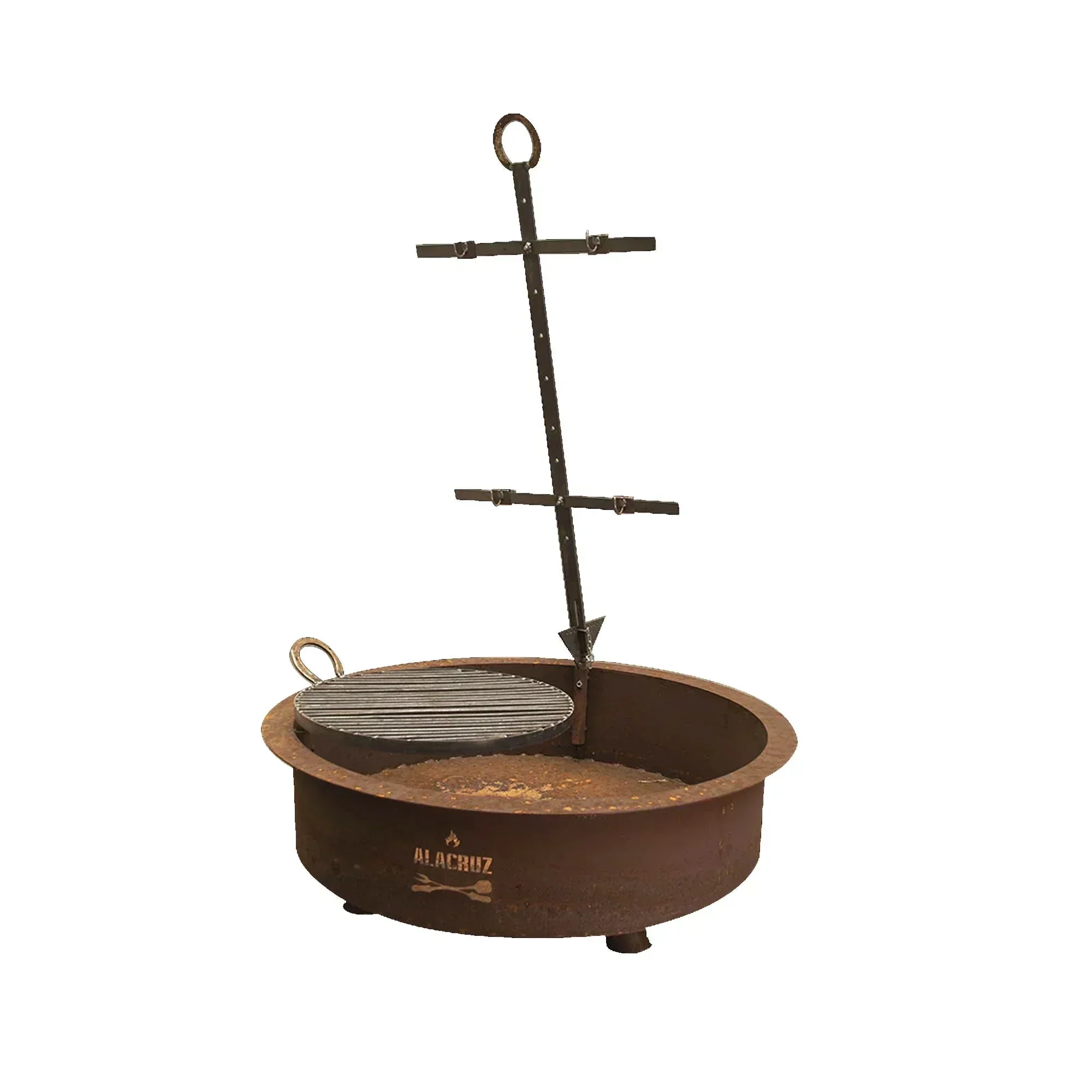 Un diseño estilo rústico, que sirve de fogón, brasero y parrilla. Una sola estructura de fierro en terminación óxido, soportada sobre patas, y que es compatible con todos los accesorios parrilleros Alacruz. Incluye una parrilla circular de 55 cm y una cruza de asador clásica. Sus accesorios incluyen, entre otros, prensa grande, media parrilla de 100 cm, disco asador, caldero, brasero central y mucho más. Uno de los productos clásicos de la reconocida marca Alacruz.