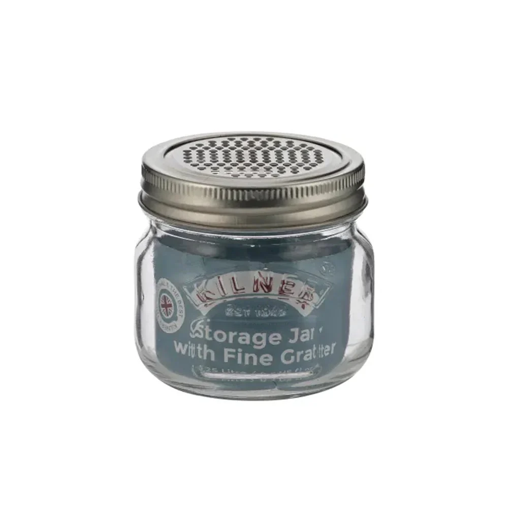 El Frasco con Rallador Fino Kilner® de 0,25 litros es la solución perfecta para rallar y almacenar ingredientes como nuez moscada, ajo, jengibre, queso parmesano y ralladuras de cítricos. Este práctico set incluye un rallador de acero inoxidable de alta calidad con microcuchillas afiladas, ideal para obtener ralladuras finas o pulpa según el tipo de alimento. Los ingredientes rallados se pueden guardar directamente en el frasco de vidrio, permitiendo un almacenamiento conveniente o un elegante servicio en la mesa. Incluye un frasco Kilner® de 0,25 litros, un disco rallador y una tapa de dos piezas para un sellado seguro.