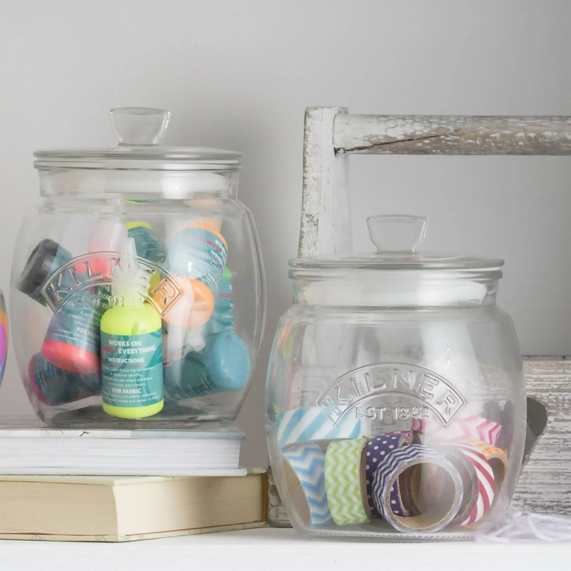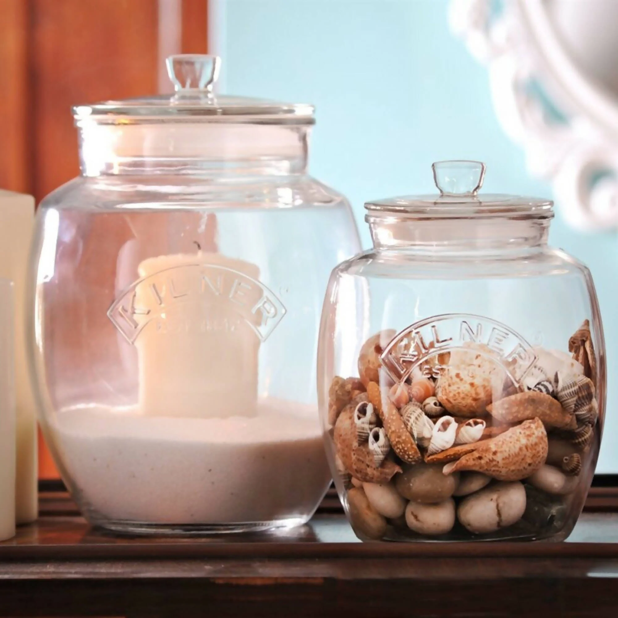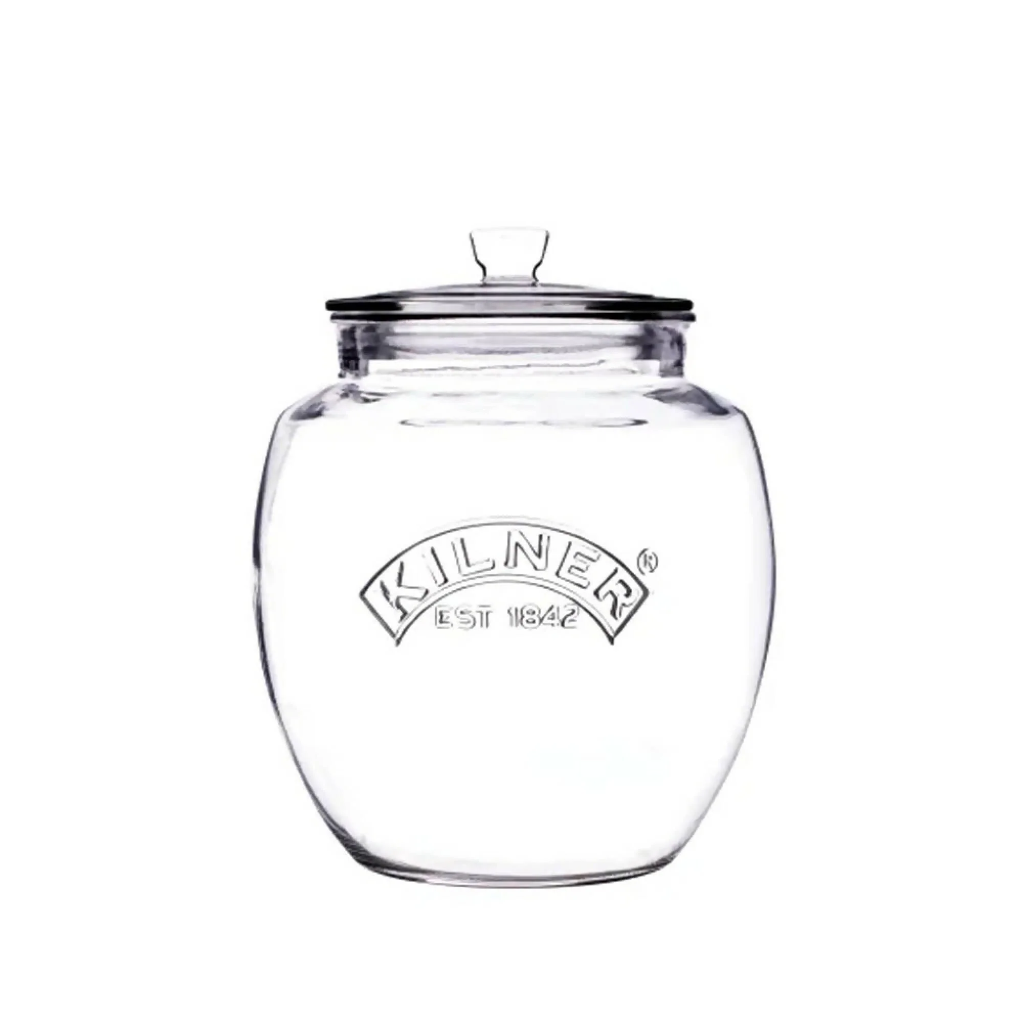 El frasco Universal Kilner de 2 litros tiene una silueta curva y elegante. Su bello diseño no sólo es ideal para el azúcar, cereales o frutos secos, sino que también proporcionará una solución atractiva para jabones, algodón en el baño, lana o lo que quieras.