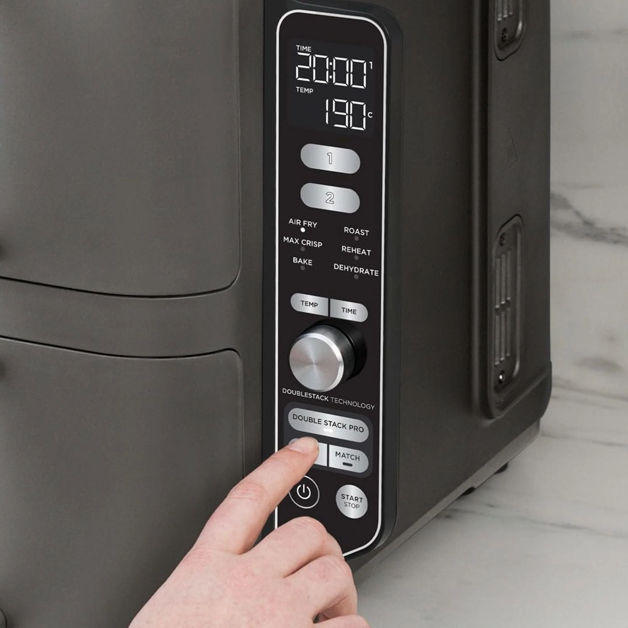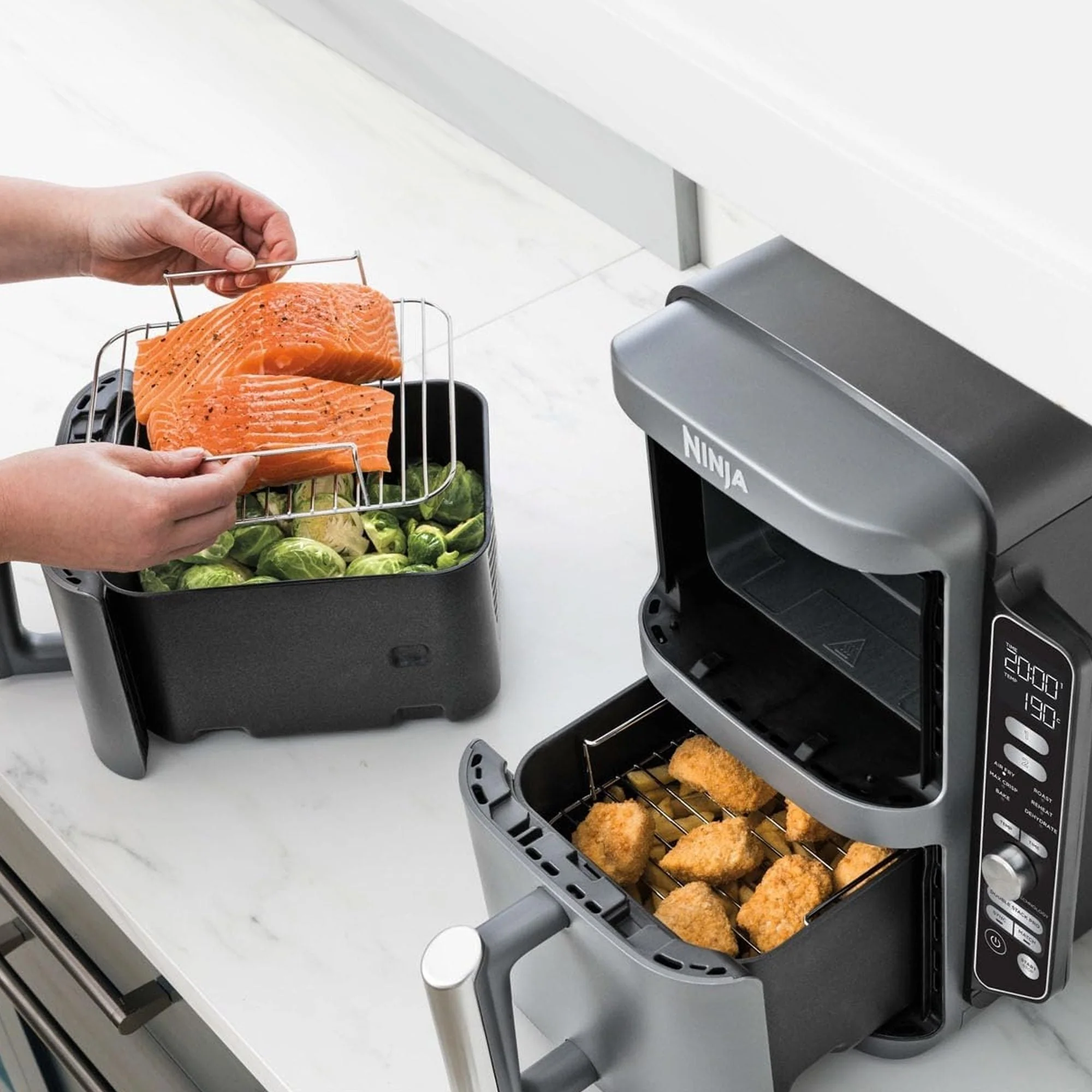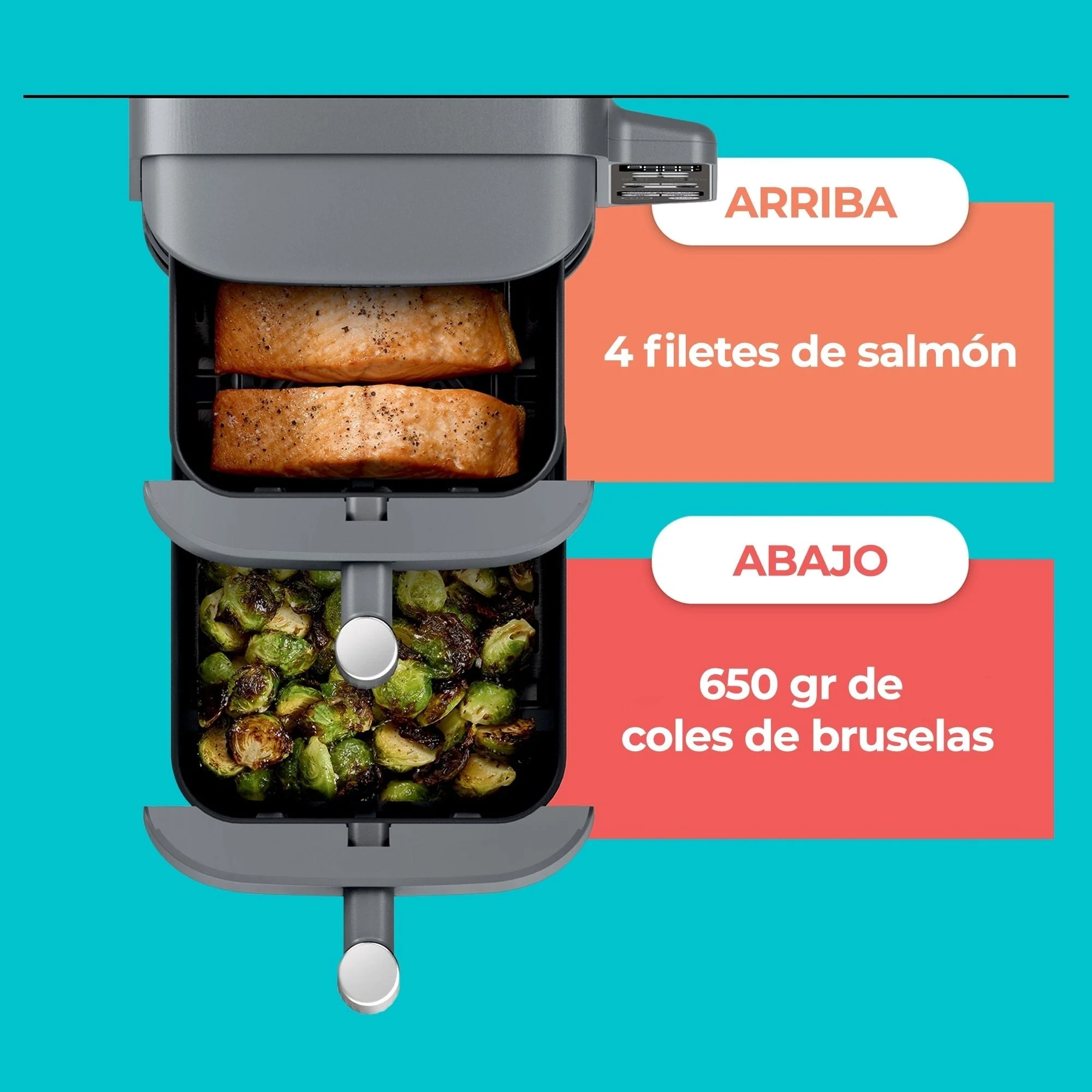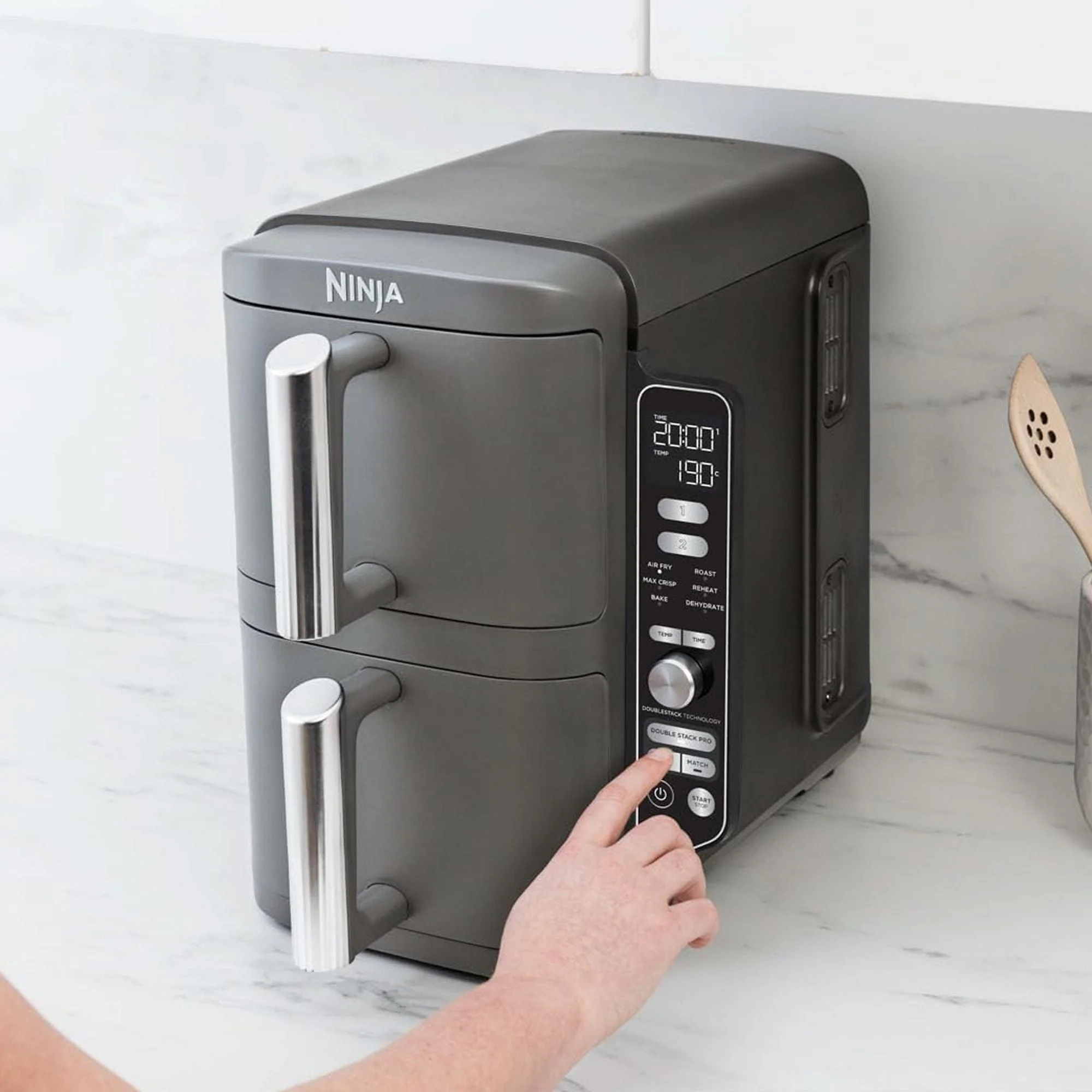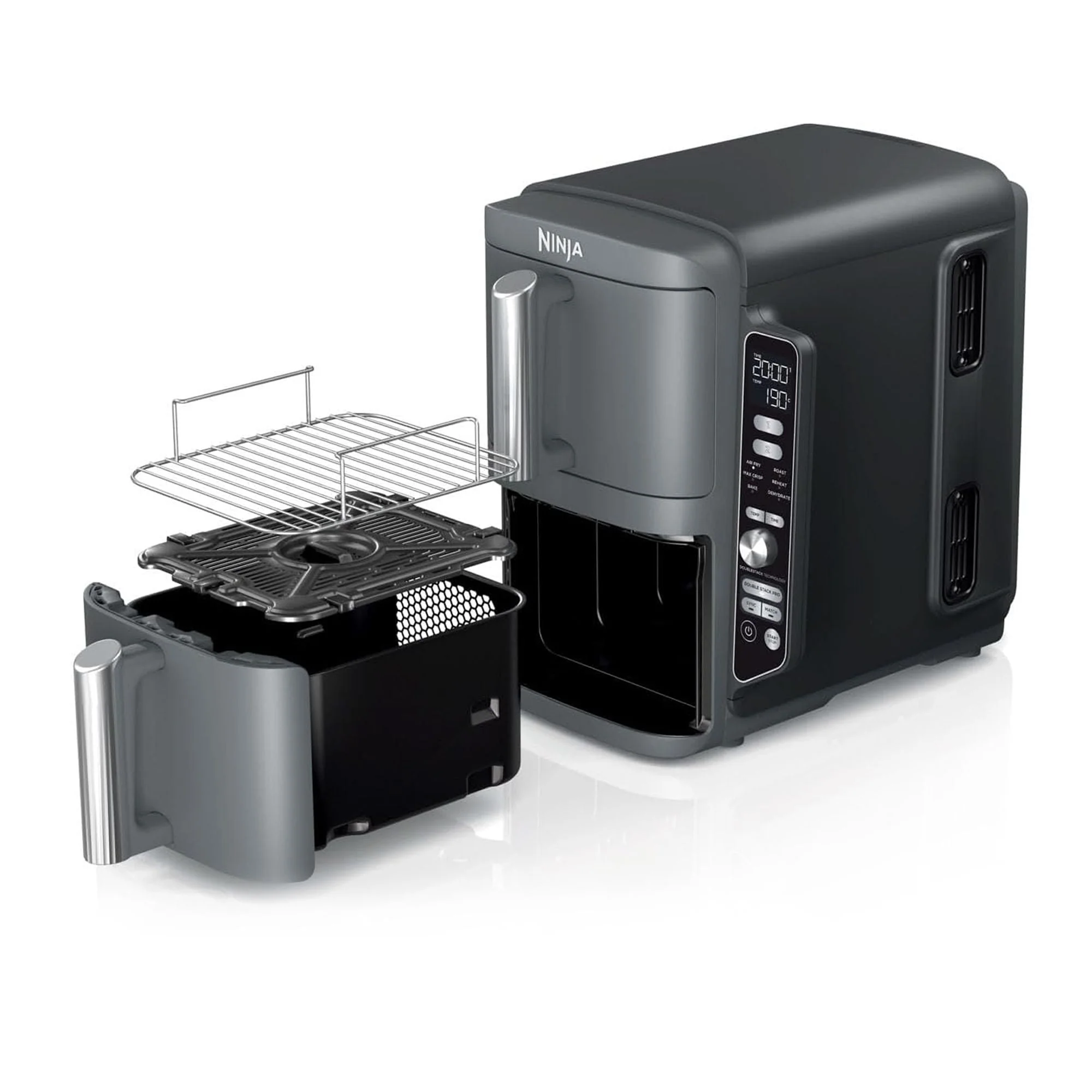 La freidora de aire doble Ninja Double Stack XL ofrece una solución compacta para cocinas pequeñas sin sacrificar capacidad. Con dos cajones independientes apilados de manera vertical, cocina hasta para 8 personas a la vez, logrando resultados dorados y crujientes en menos tiempo y con menos aceite. Perfecta para familias, ofrece versatilidad, rapidez y comodidad, todo en un diseño elegante y fácil de usar.