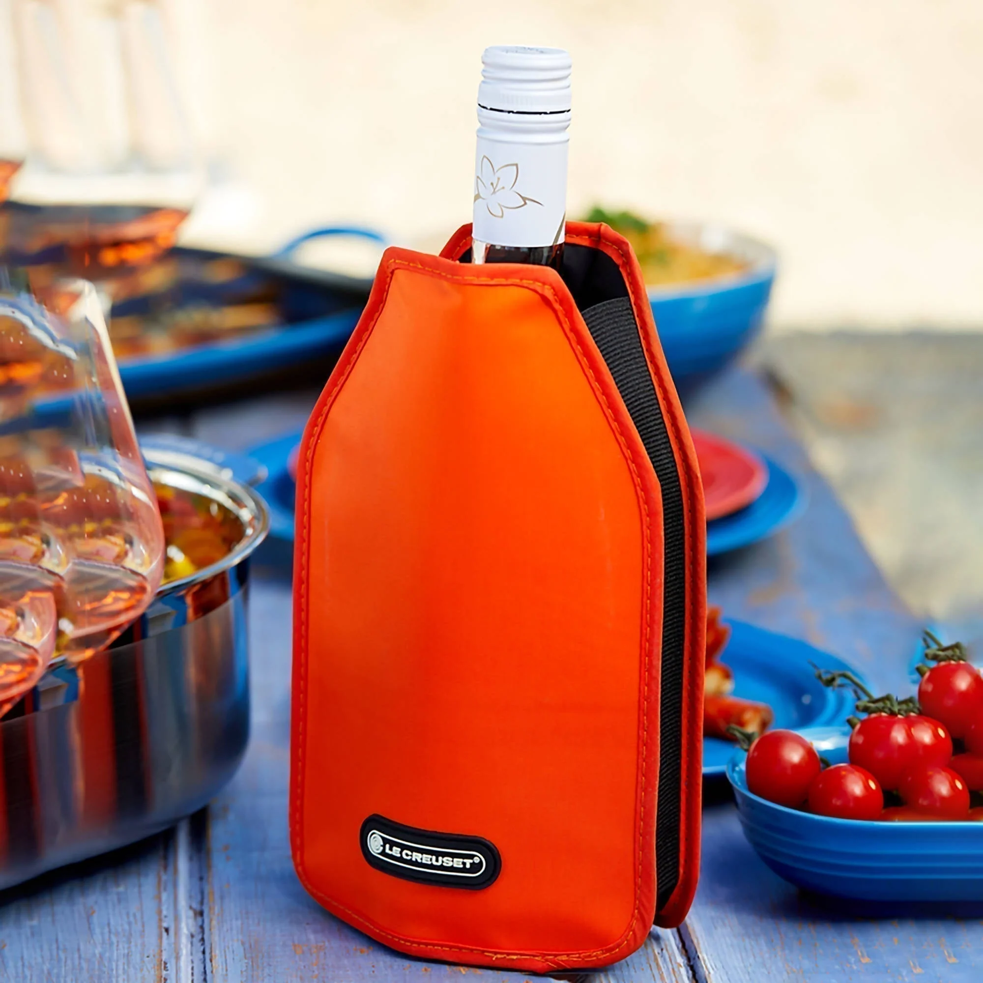 Indispensable para mantener sus botellas frías con elegancia. La funda enfriadora de vinos de Le Creuset, previamente colocada en el congelador, permite refrescar o mantener helada una botella de vino. El contenido se mantendrá fresco desde la primera hasta la última copa. Se adapta a todas las botellas de 75 cl.