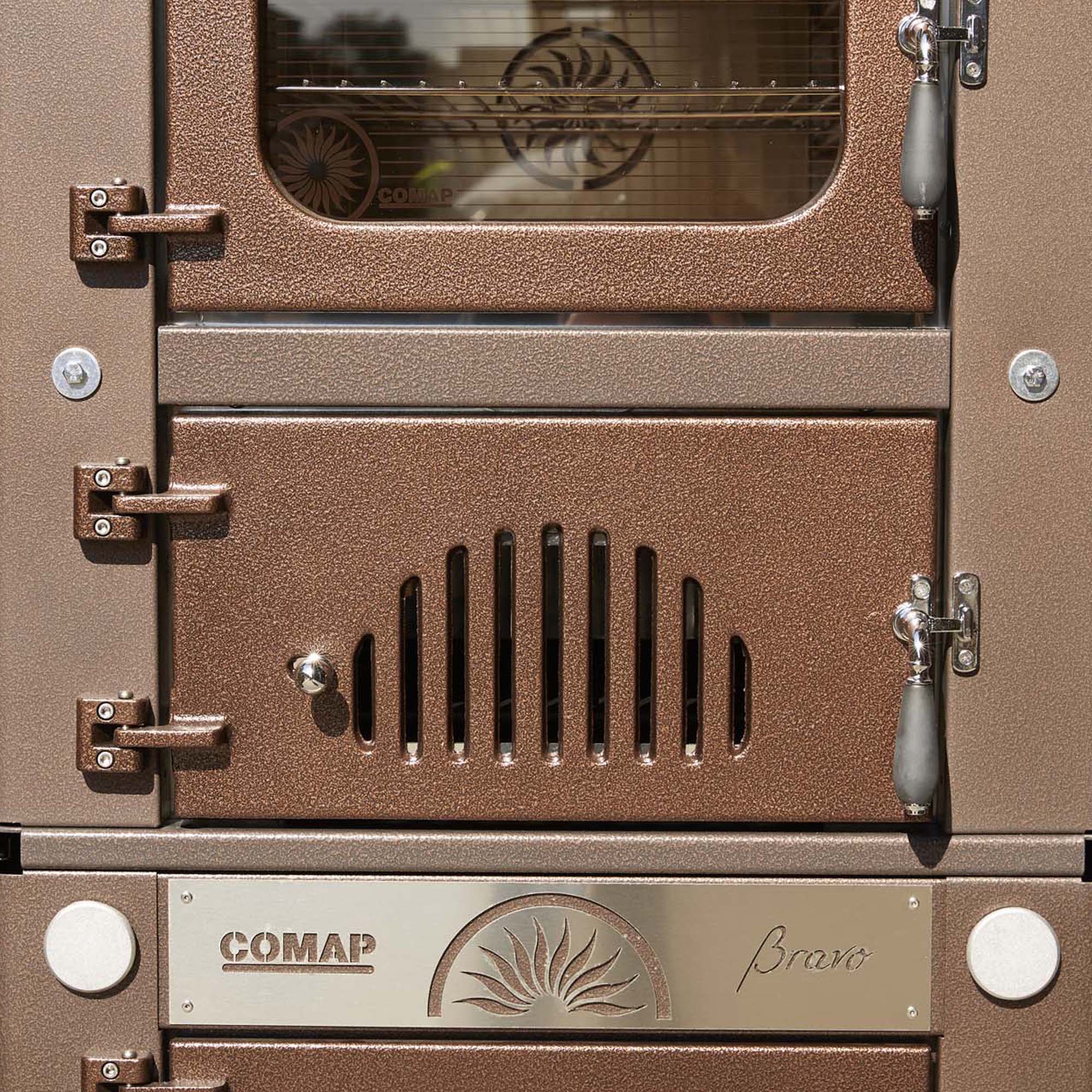 Vive una experiencia única de cocción con el Horno a Leña Brava de COMAP. Con 3 niveles de cocción y temperaturas de humo hasta 190°C que podrás mantener y controlar con su termómetro, timer y válvula reguladora para la salida de humo. Complementa todo esto con su moderno sistema de ventilación «breeze» y accesorios para maniobrar fuego, fuentes para horno de varios tamaños, bandeja recoge cenizas y rejillas de acero cromado. Obtén ese acabado ahumado que sólo un horno a leña te puede ofrecer.