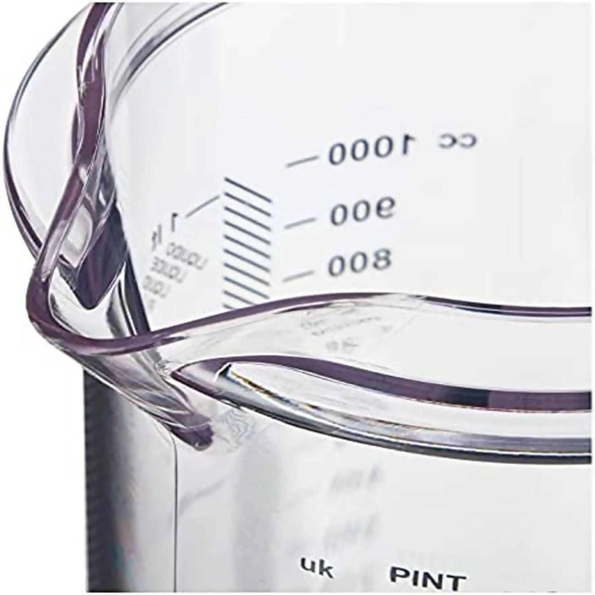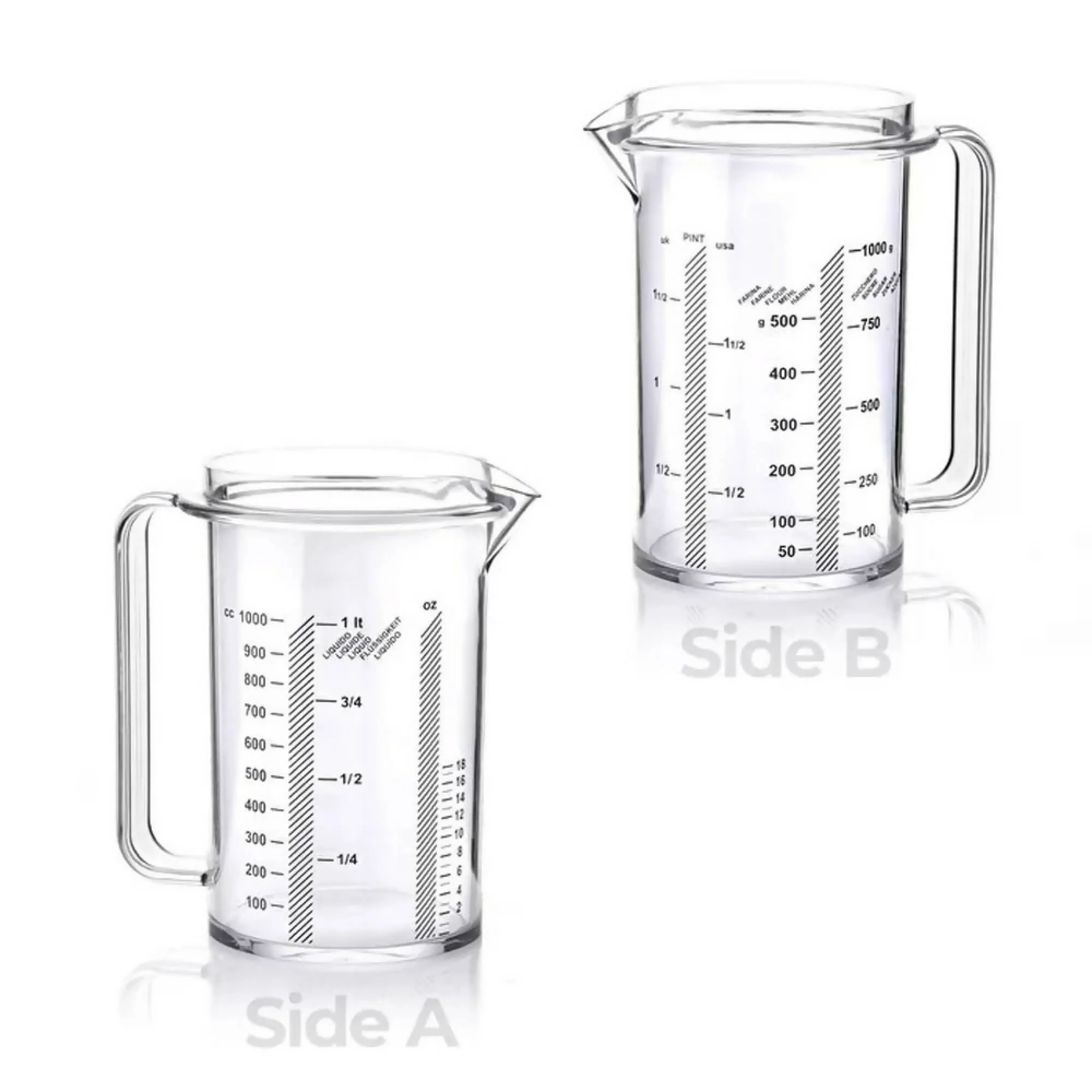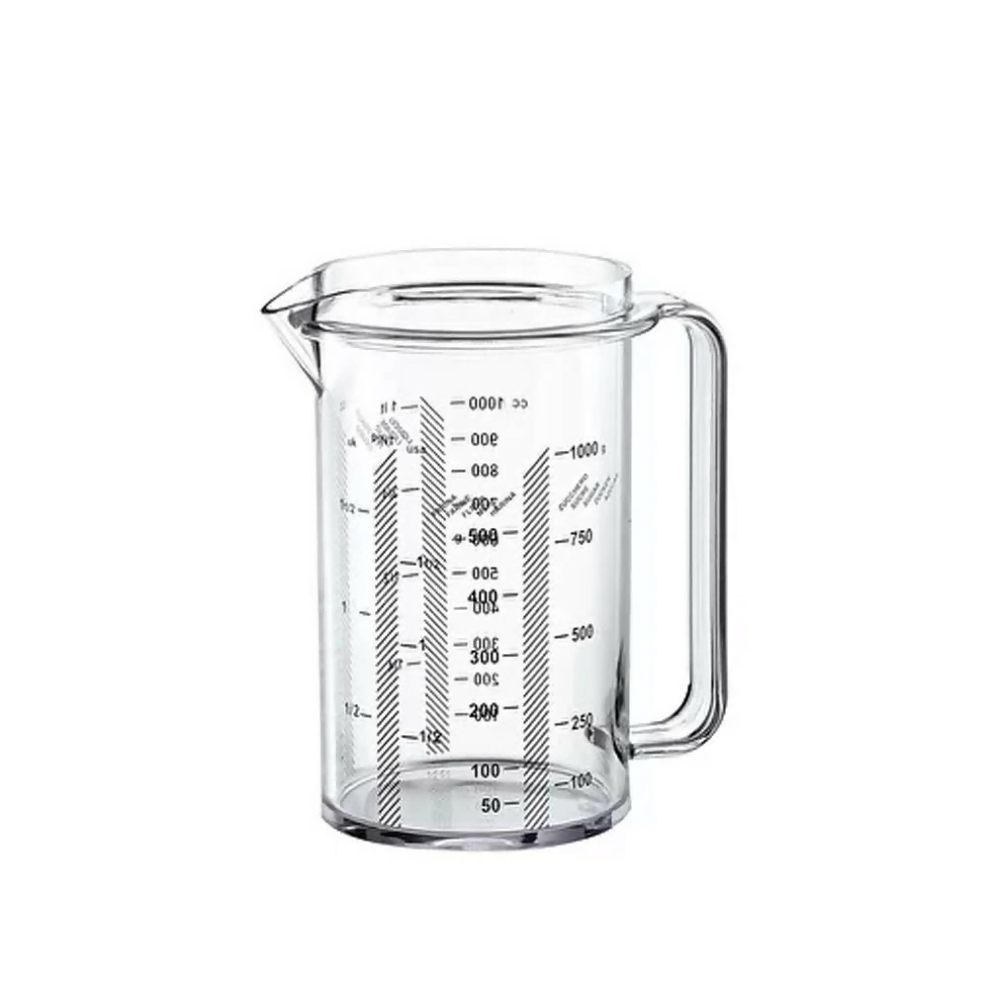El jarro medidor graduado está fabricado en material plástico. Perfecto para realizar mediciones de hasta 1 litro.