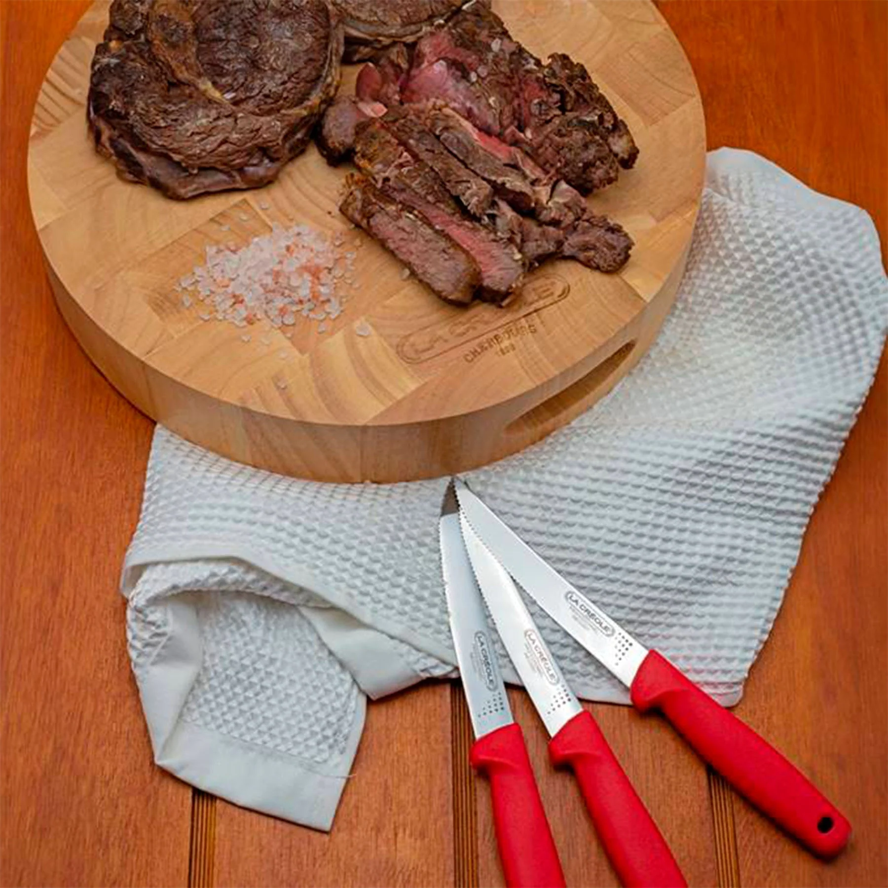 Eleva tus celebraciones con el super pack de La Créole, que incluye un juego de 6 cuchillos para asado y una robusta tabla para picar redonda de 30×5 cm. Este set es esencial para cualquier amante del asado y perfecto para compartir momentos especiales. Los cuchillos, diseñados específicamente para asados, te aseguran cortes precisos y fáciles, mejorando tu experiencia culinaria. La tabla, confeccionada con madera de Roble de Malasia, no solo destaca por su durabilidad y resistencia, sino que también añade un toque elegante a tu mesa gracias a su diseño y acabado de calidad. La densidad de la madera de roble asegura que la tabla no se deteriore fácilmente, resistiendo el uso frecuente y manteniendo su belleza a lo largo del tiempo. Este pack de La Créole es ideal para aquellos que valoran la calidad y la funcionalidad en sus utensilios de cocina. No esperes más para transformar tus reuniones con familia y amigos. Adquiere tu juego de cuchillos para asado y tabla para picar de La Créole hoy mismo y prepárate para disfrutar de asados y picadas con estilo, comodidad y eficiencia. ¡Haz que cada momento de asado sea inolvidable con el equipamiento perfecto!