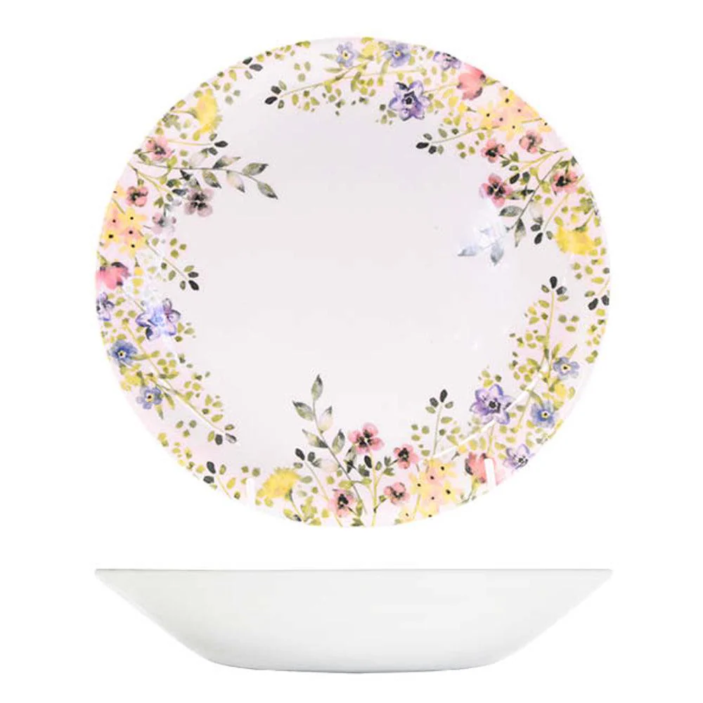 El Juego Loza Wildflower Bloom 12 Pzs Churchill incluye: 4 platos Base, 4 platos Ensalada, 4 platos Sopa