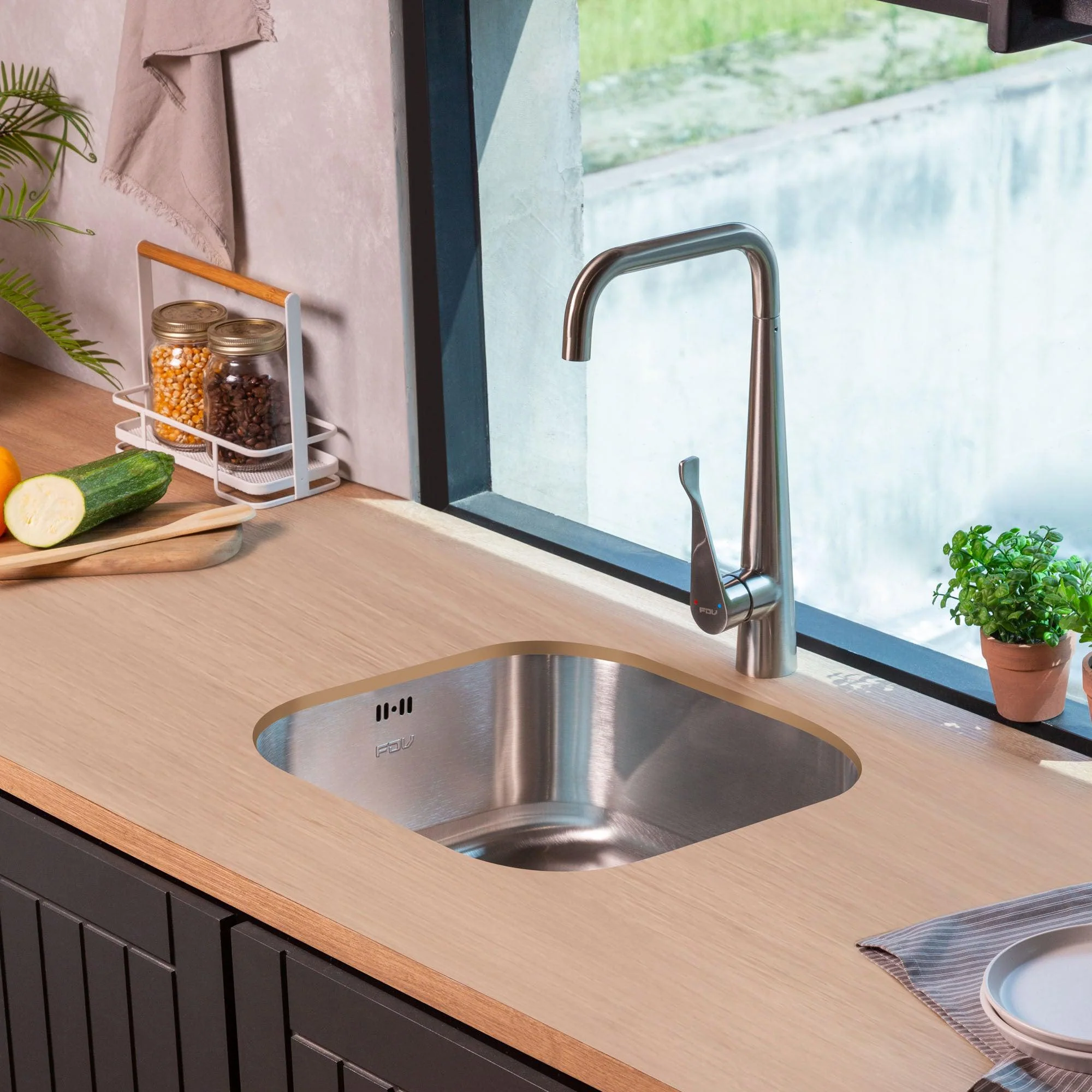 El Lavaplatos Cubus 1C de FDV combina diseño y funcionalidad para tu cocina. Bajo cubierta, ideal para espacios pequeños o con enfoque minimalista. Fabricado en acero inoxidable, con un espesor de 1 mm, y accesorios incluidos como desagüe y sifón.
