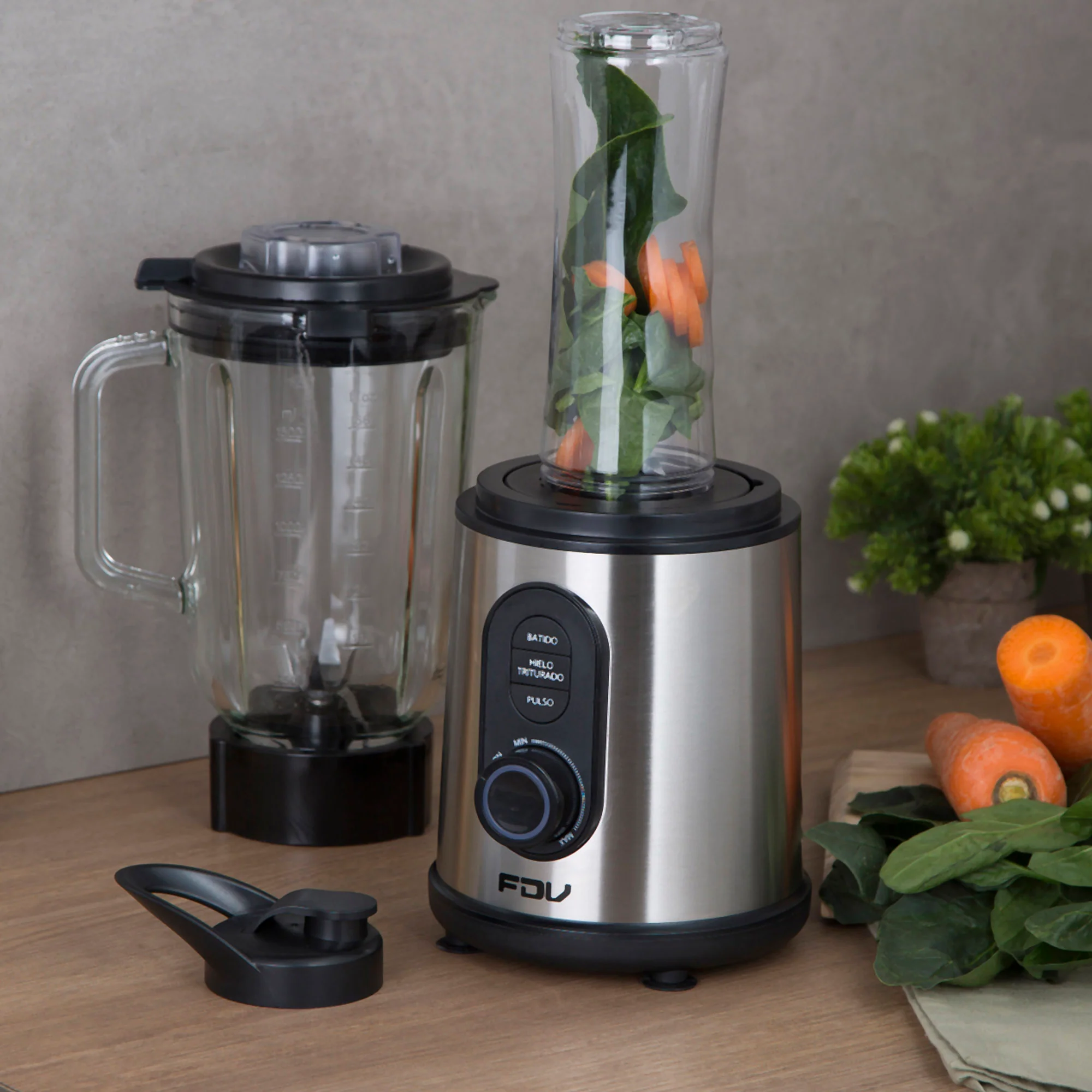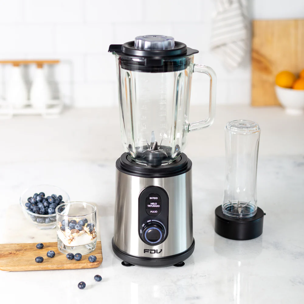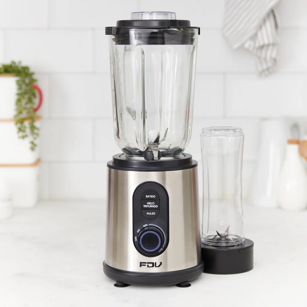 Prepara los mejores batidos y llévalos a donde tú quieras con la Licuadora FDV Breaker. Cuenta con vasos intercambiables, para que puedas hacer tus mejores recetas. El tradicional de 1,5 L y una deportiva, que puedes llevar contigo de 600 ml. Su cuerpo de es acero inoxidable, con mandos con luz led. Esta licuadora cuenta con 3 funciones, sistema antiderrame y sobre calentamiento. Sin dudas, un must en tu cocina.