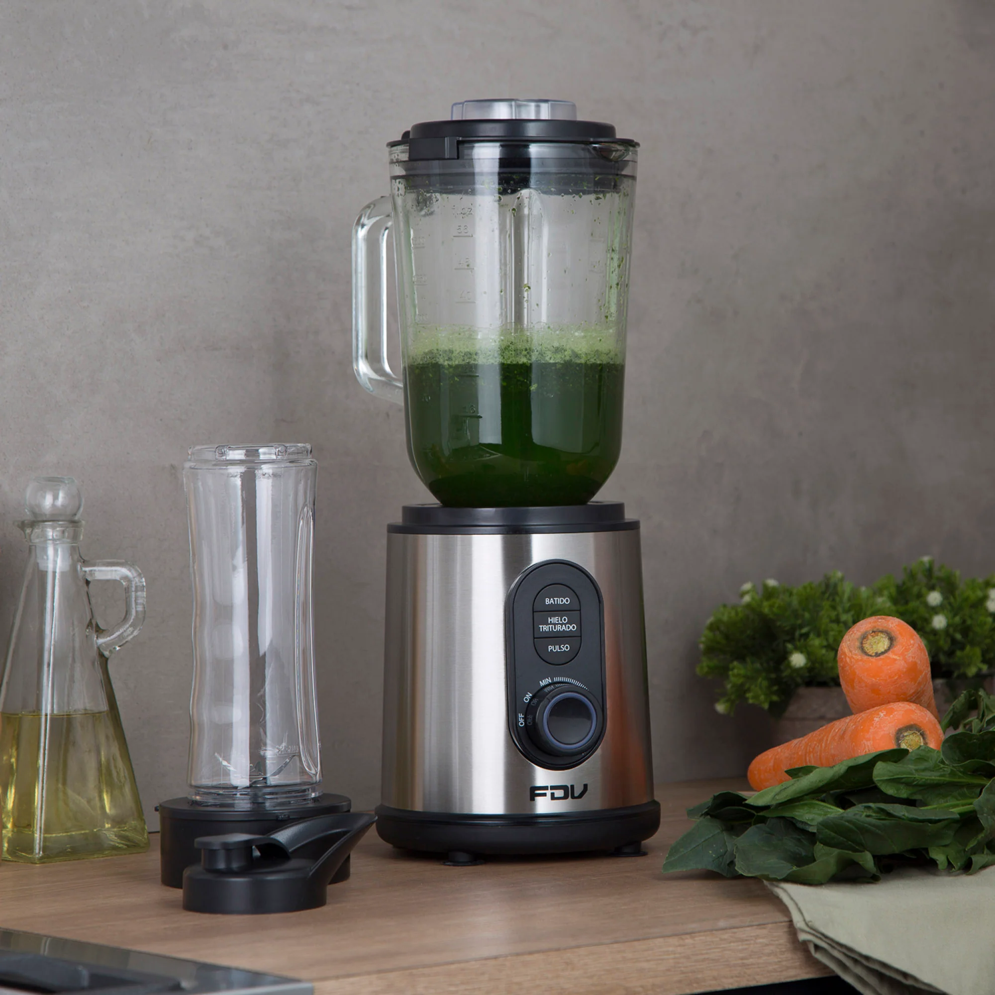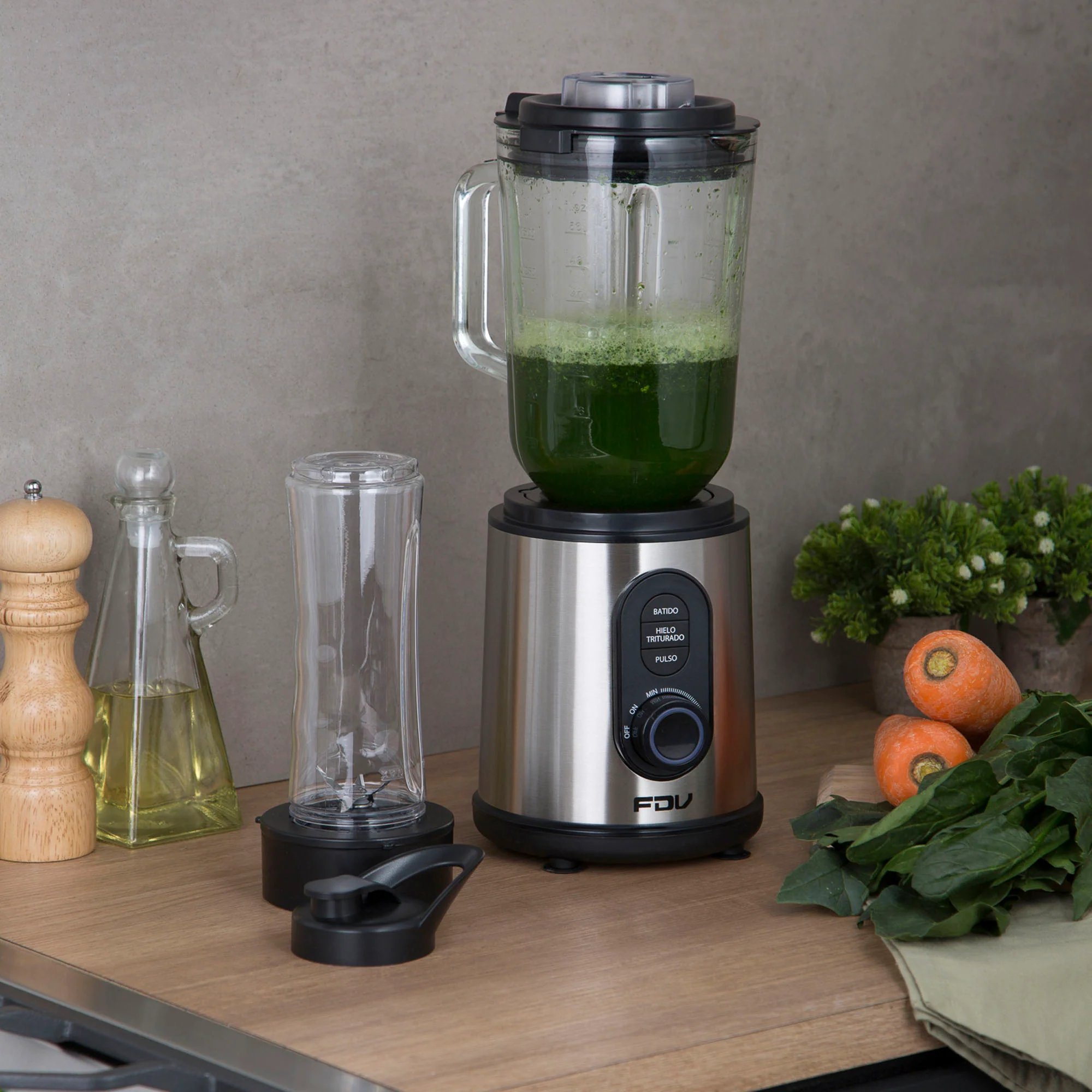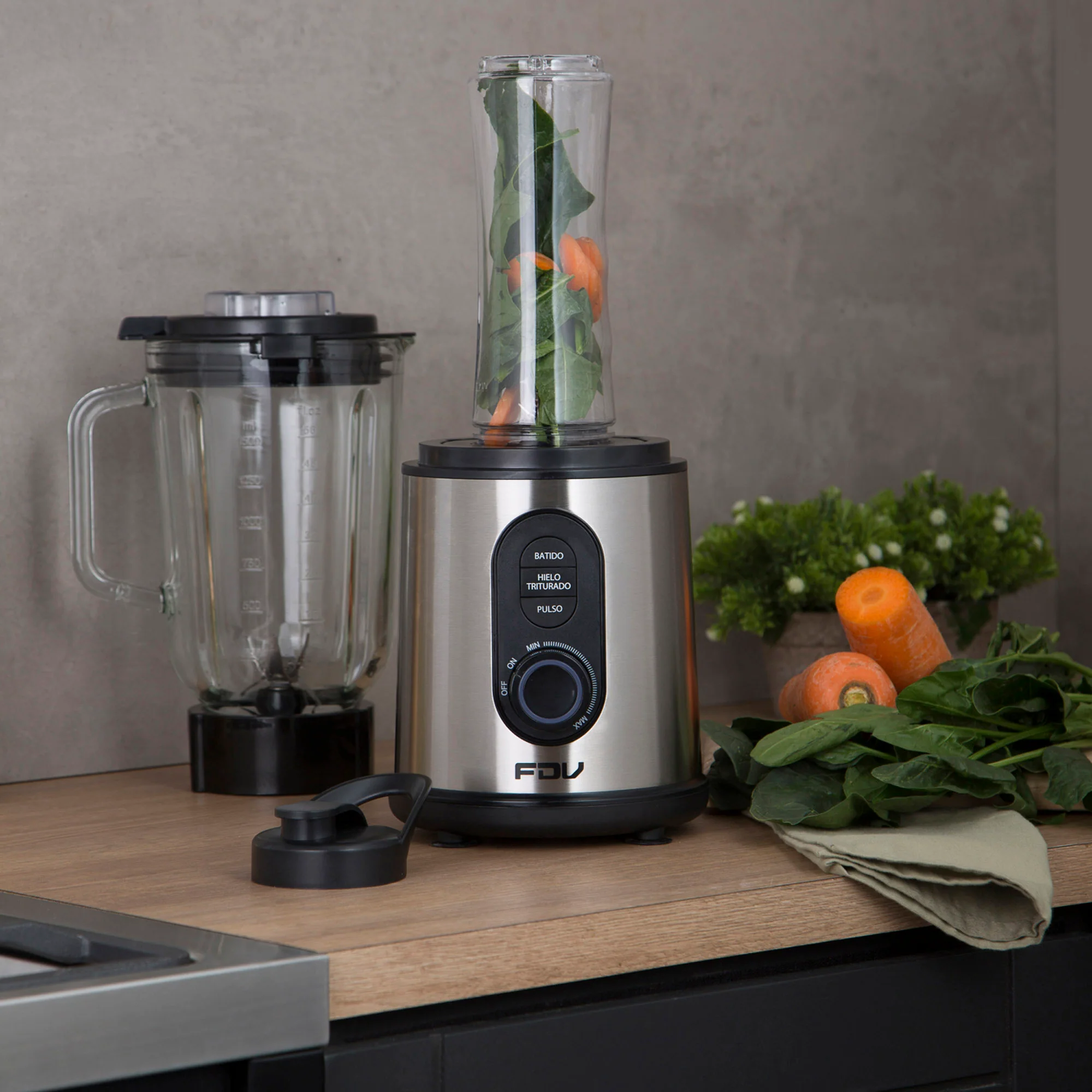 Prepara los mejores batidos y llévalos a donde tú quieras con la Licuadora FDV Breaker. Cuenta con vasos intercambiables, para que puedas hacer tus mejores recetas. El tradicional de 1,5 L y una deportiva, que puedes llevar contigo de 600 ml. Su cuerpo de es acero inoxidable, con mandos con luz led. Esta licuadora cuenta con 3 funciones, sistema antiderrame y sobre calentamiento. Sin dudas, un must en tu cocina.