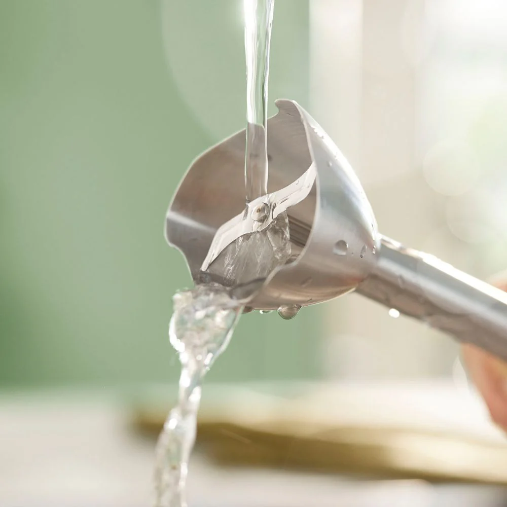Licuado rápido y eficaz con solo tocar un botón. La nueva licuadora manual de uso diario de Philips cuenta con un poderoso motor y un diseño único y ergonómico que proporciona un licuado rápido y eficaz con solo tocar un botón, lo que lo ayuda a preparar sin esfuerzo comidas caseras saludables todos los días. La forma ondulada especial en la parte inferior de la varilla mezcladora de la licuadora manual garantiza que no habrá salpicaduras ni derrames mientras licúa.