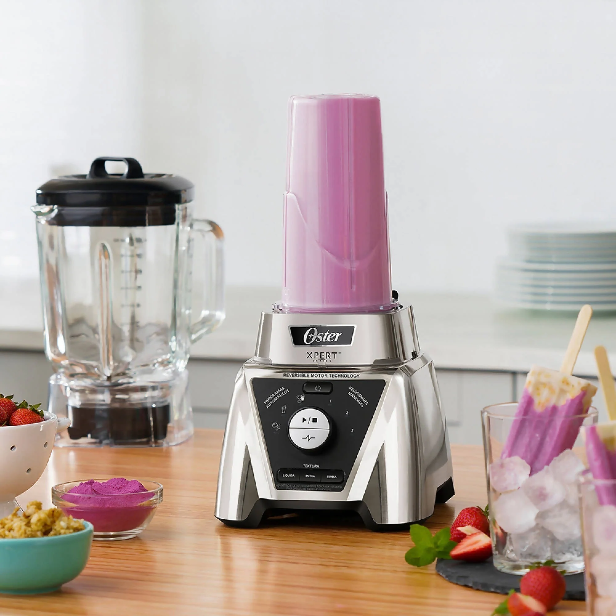 La licuadora Oster® Xpert Series™ con control de textura personaliza la consistencia de espesa a líquida. Te da el poder de preparar todo lo que imaginas. A ti que disfrutas el sabor de los ingredientes frescos y saludables, esta es la licuadora que estabas esperando.