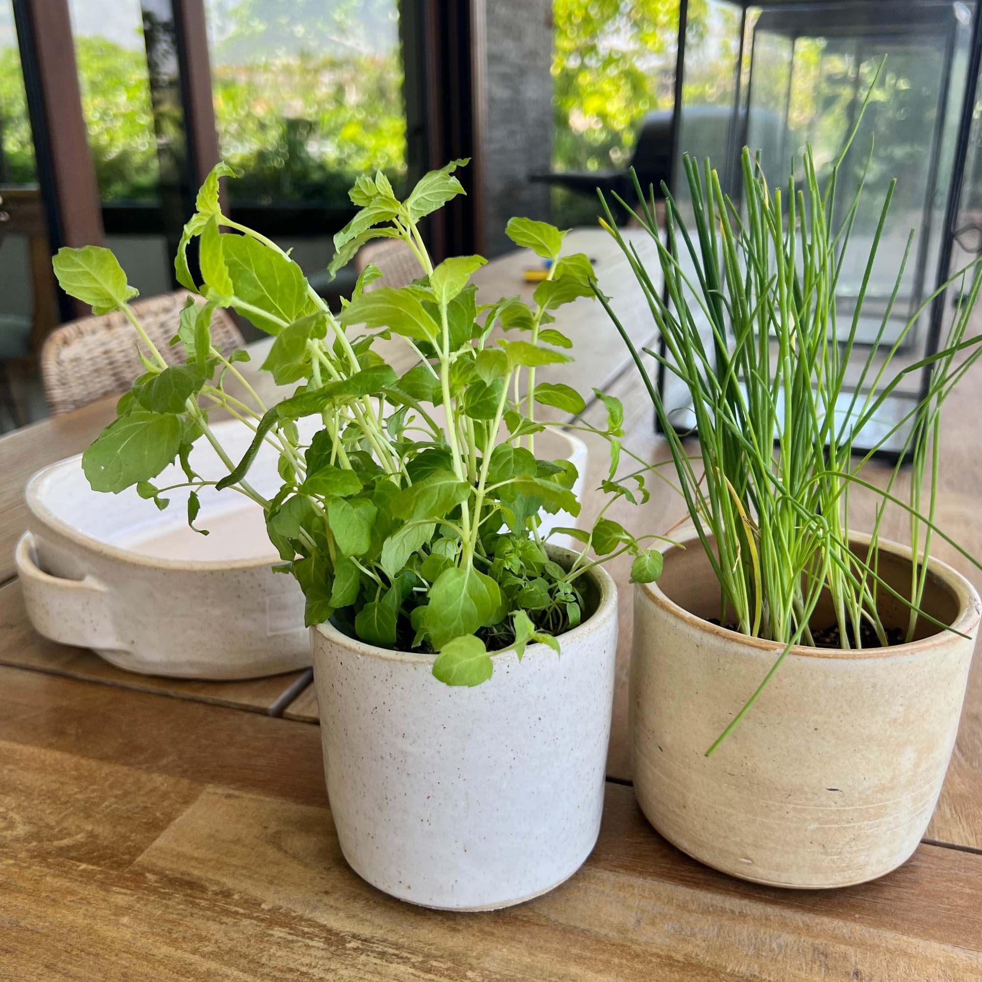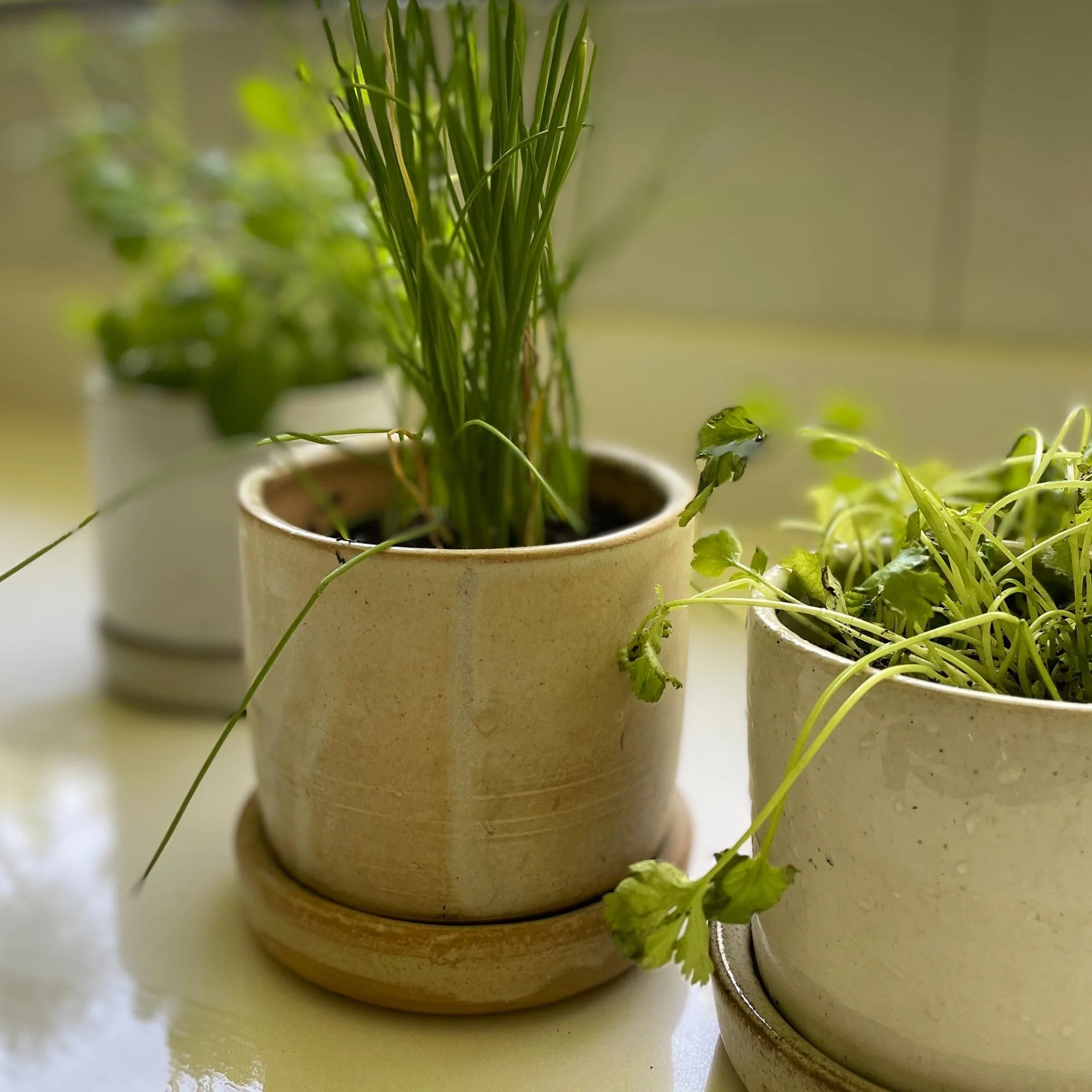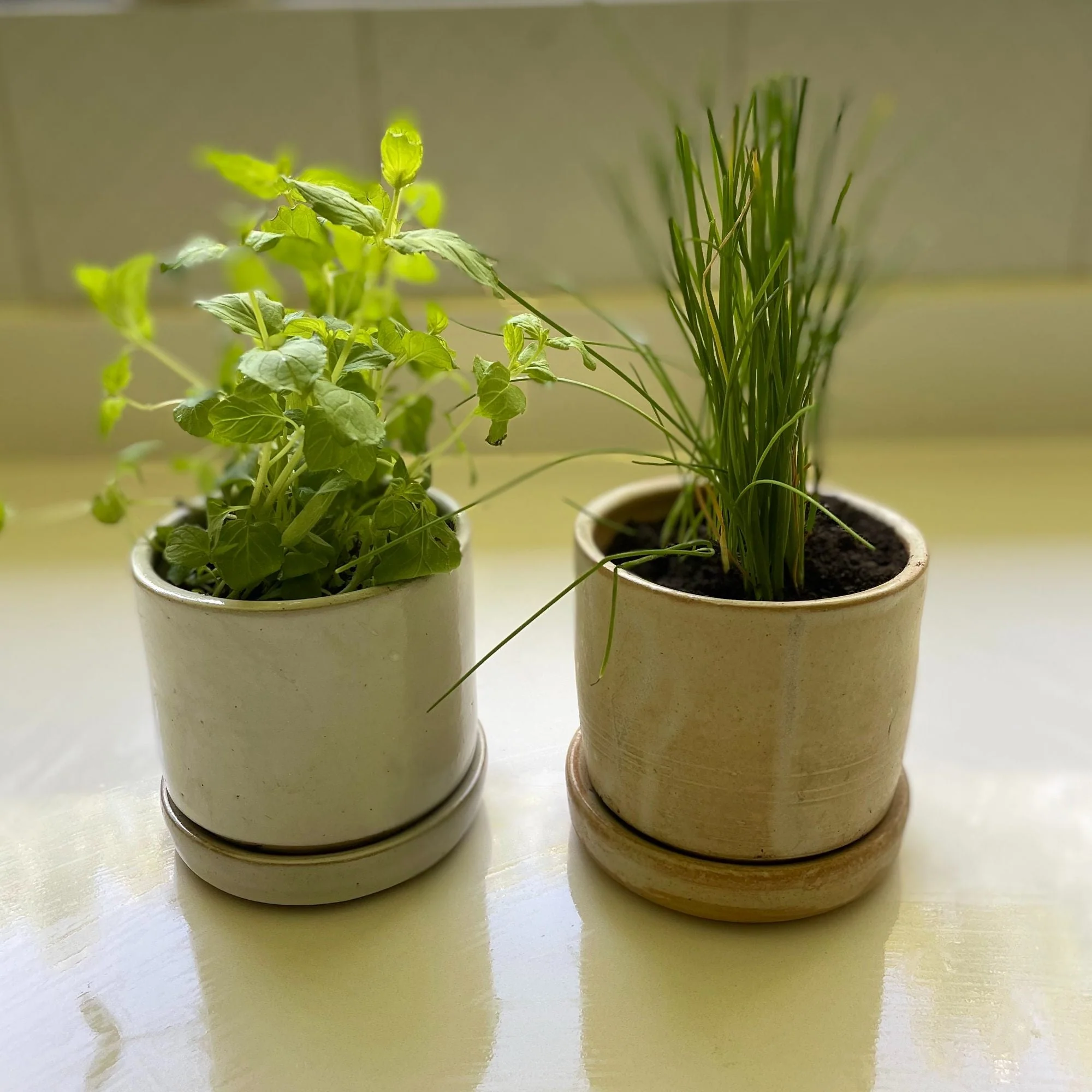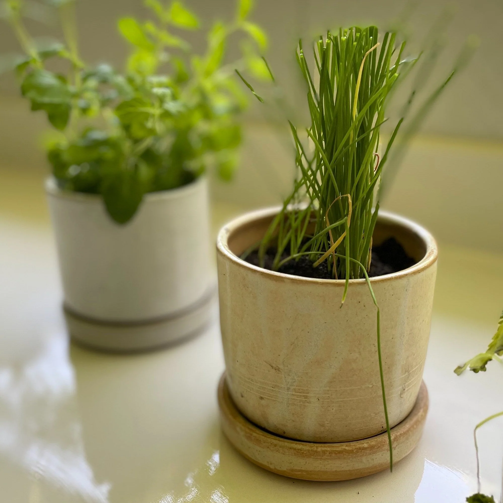 Incluye 1 macetero con drenaje y 1 plato. Macetero blanco de cerámica gres esmaltada, para plantar tus hierbas comestibles y llenar de verde la cocina. Ideales para mantener en el interior de tu casa ya que no escurre el agua, pudiendo dañar tus muebles y objetos. Te recomendamos ser cuidadoso/a con el riego de la planta, verificando y controlando la humedad óptima. Cada objeto es hecho a mano uno por uno en nuestro taller, al igual que los esmaltes. Es por esto que pueden existir pequeñas variaciones entre los tamaños, formas y colores.