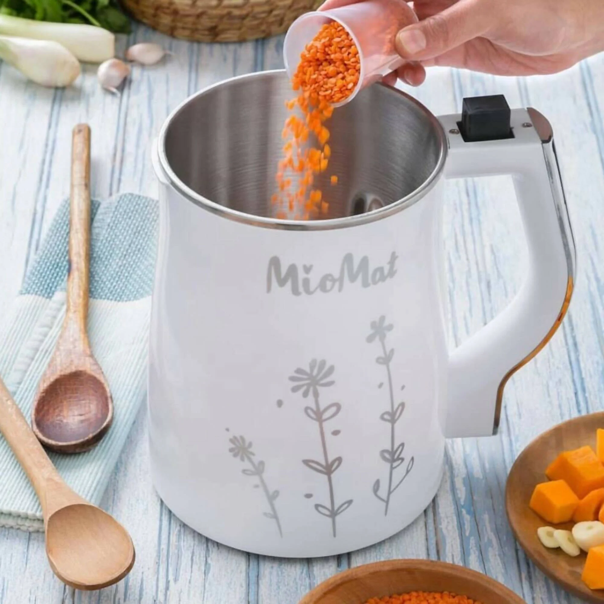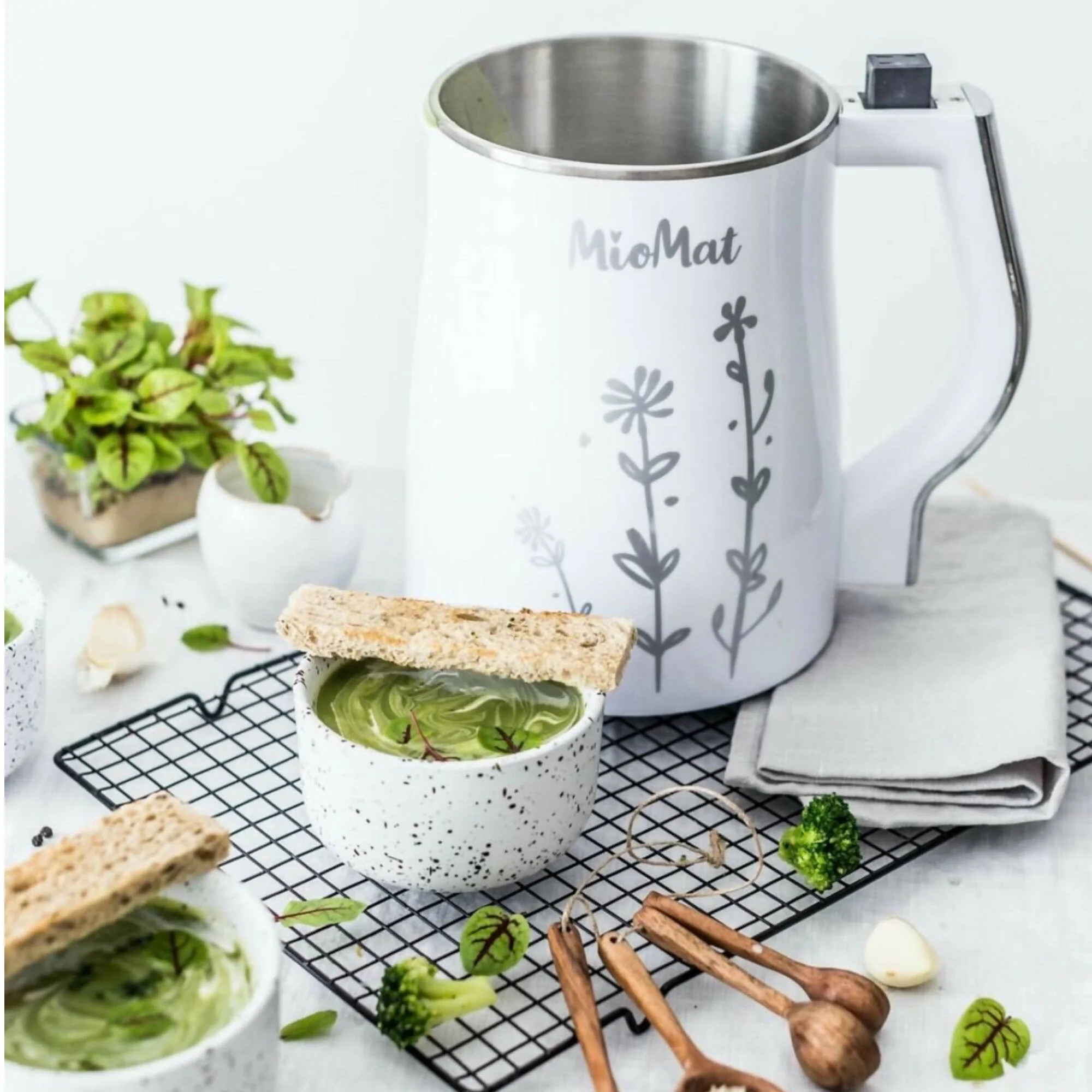 La nueva Máquina Procesadora de MioMat, la máquina de más alta calidad en materiales, motor y tecnología del mundo. Máquina para leches vegetales, compotas, sopas con trozos, cremas, porridge, infusiones, batidos