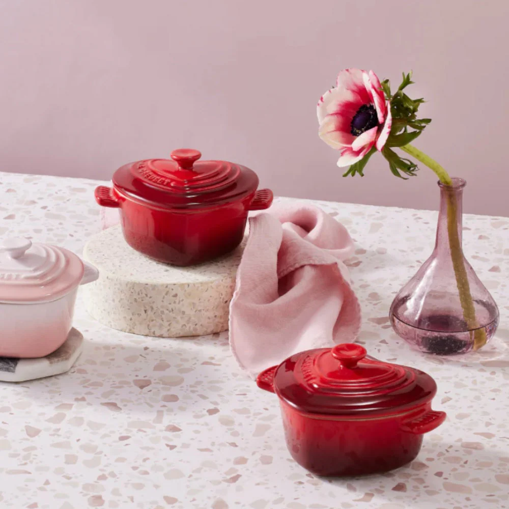 Añade un toque de amor y encanto a tu cocina con la Mini Cocotte Corazón Cereza de Le Creuset, un regalo perfecto para esa persona especial o para ti mismo. Esta cocotte, fabricada en cerámica de gres artesanal, no solo es hermosa con su forma de corazón y color cereza, sino también funcional para servir entrantes, postres, aperitivos y tapas. Es ideal para ocasiones especiales como el Día de San Valentín, el Día de la Madre, cumpleaños o simplemente para alegrar cualquier día. Con una resistencia excepcional a arañazos y una fácil limpieza, esta pieza de cerámica esmaltada es un testimonio de la maestría en artesanía de Le Creuset. Además, gracias a su gres termorresistente, soporta temperaturas de −23 ºC a +260 ºC. Al elegir Le Creuset, te aseguras de obtener lo mejor en calidad y durabilidad. No pierdas la oportunidad de incorporar este encantador utensilio a tu colección de cocina. Compra tu Mini Cocotte Corazón Cereza de Le Creuset hoy y disfruta de la combinación perfecta de estilo, funcionalidad y cariño en cada preparación. Incluye 1 unidad.
