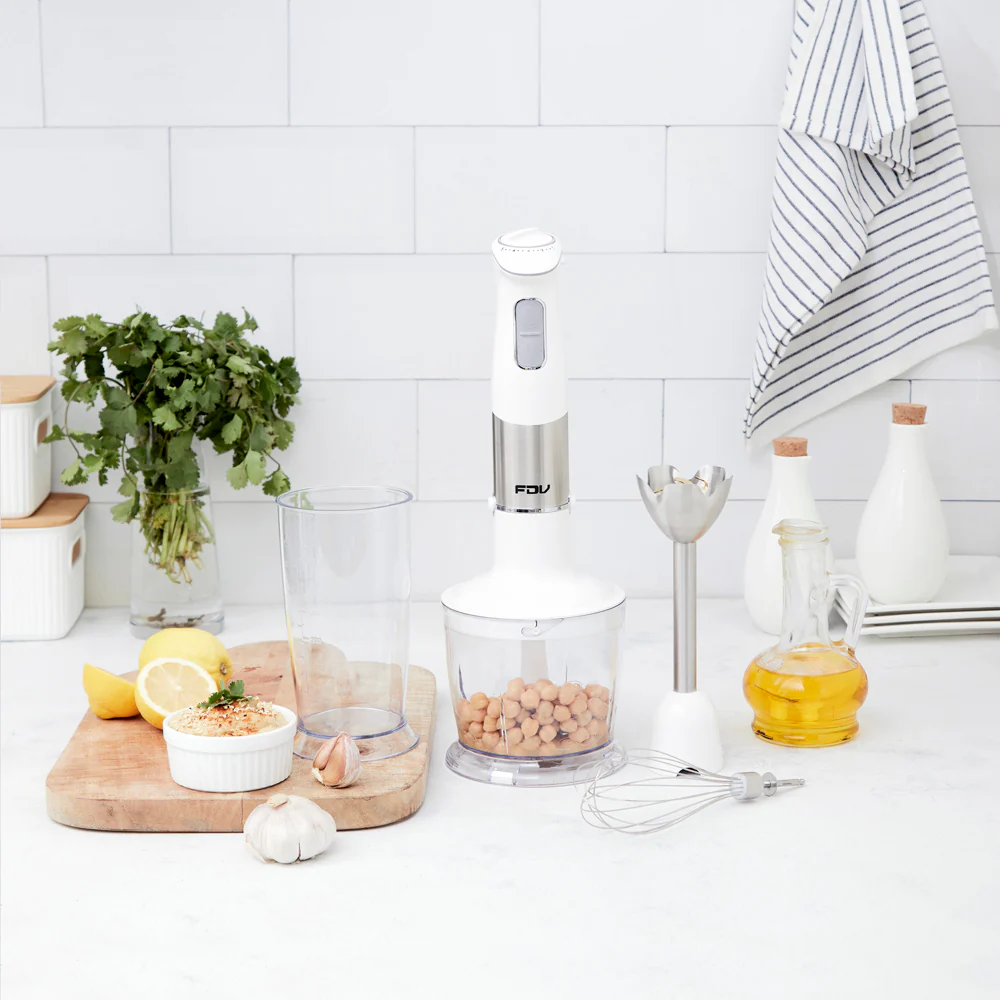 Perfecta para preparar sopas, batidos, salsas y más, con eficiencia y comodidad. La Minipimer Breeze FDV es una herramienta versátil para tu cocina, fácil de usar y limpiar.