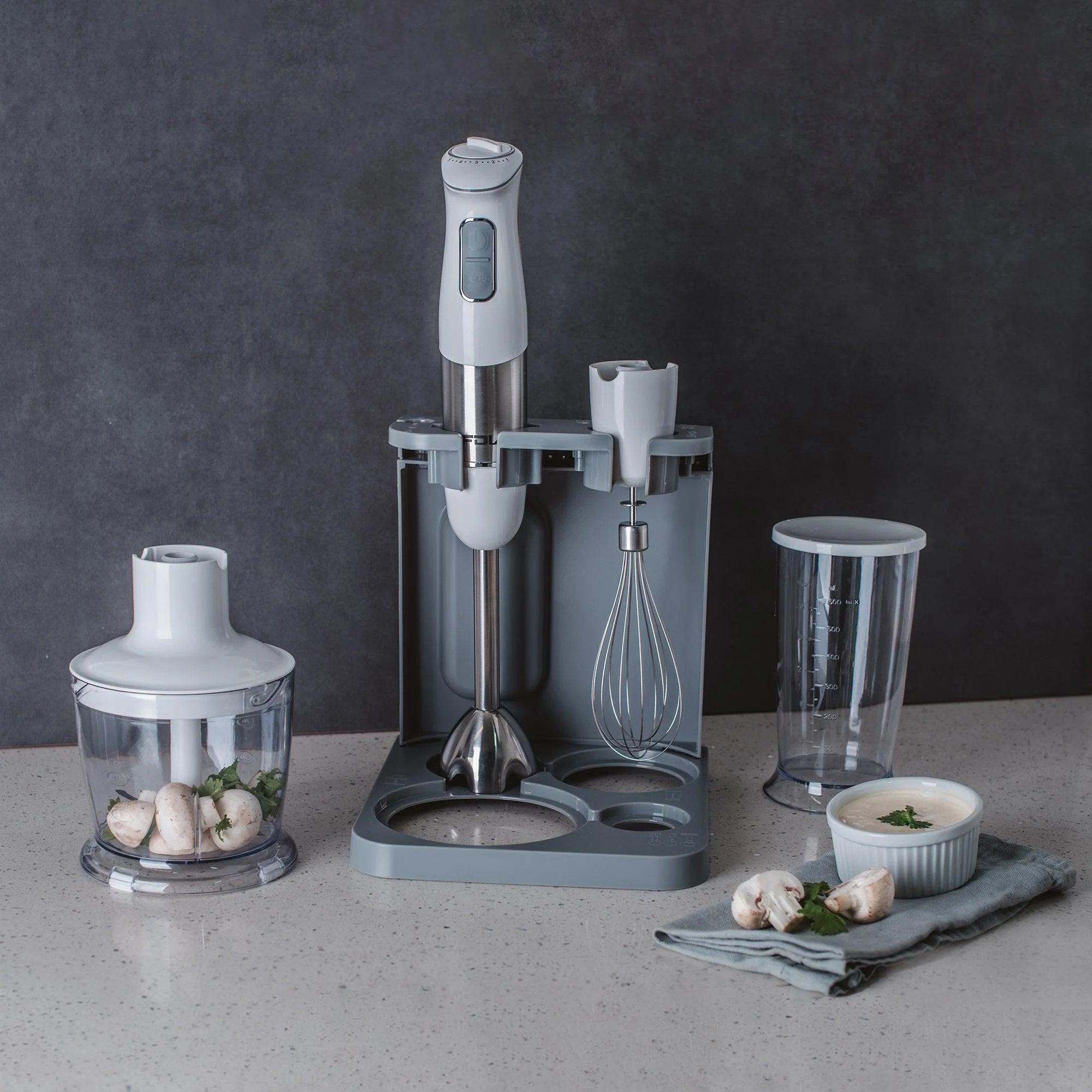 La licuadora de mano miniprimer Breeze de FDV, tiene un diseño ligero y de bajo nivel de ruido para que puedas cocinar tus preparaciones sin ruidos molestos. Cuenta con 4 cuchillas de acero inoxidable y terminaciones en titanio, resistente ideal para preparaciones con alimentos crudos.