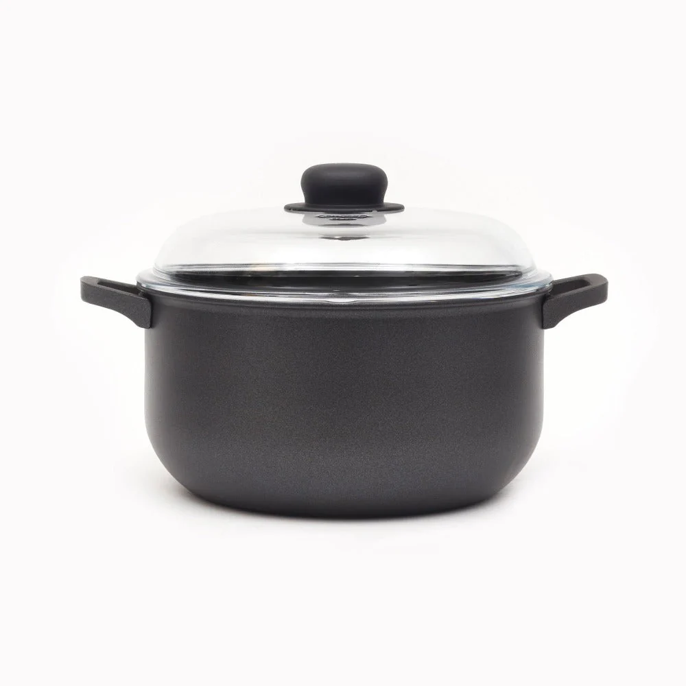 Haz de tu cocina tu lugar favorito con ella podrás preparar una deliciosa carne, pollo y vegetales con mejor sabor, perfecta cocción jugosas y blandas carnes. Su cuerpo y asas de aluminio forjado, trae una tapa de vidrio templada, apto para todo tipo de cocina incluida inducción, marca Alemana Greblón fabricado en Portugal Comunidad Europea. Las placas de inducción son más rápidas y potentes que las otras fuentes de calor, disfruta con la nueva olla Athenea el arte de cocina con nuevas tecnología.