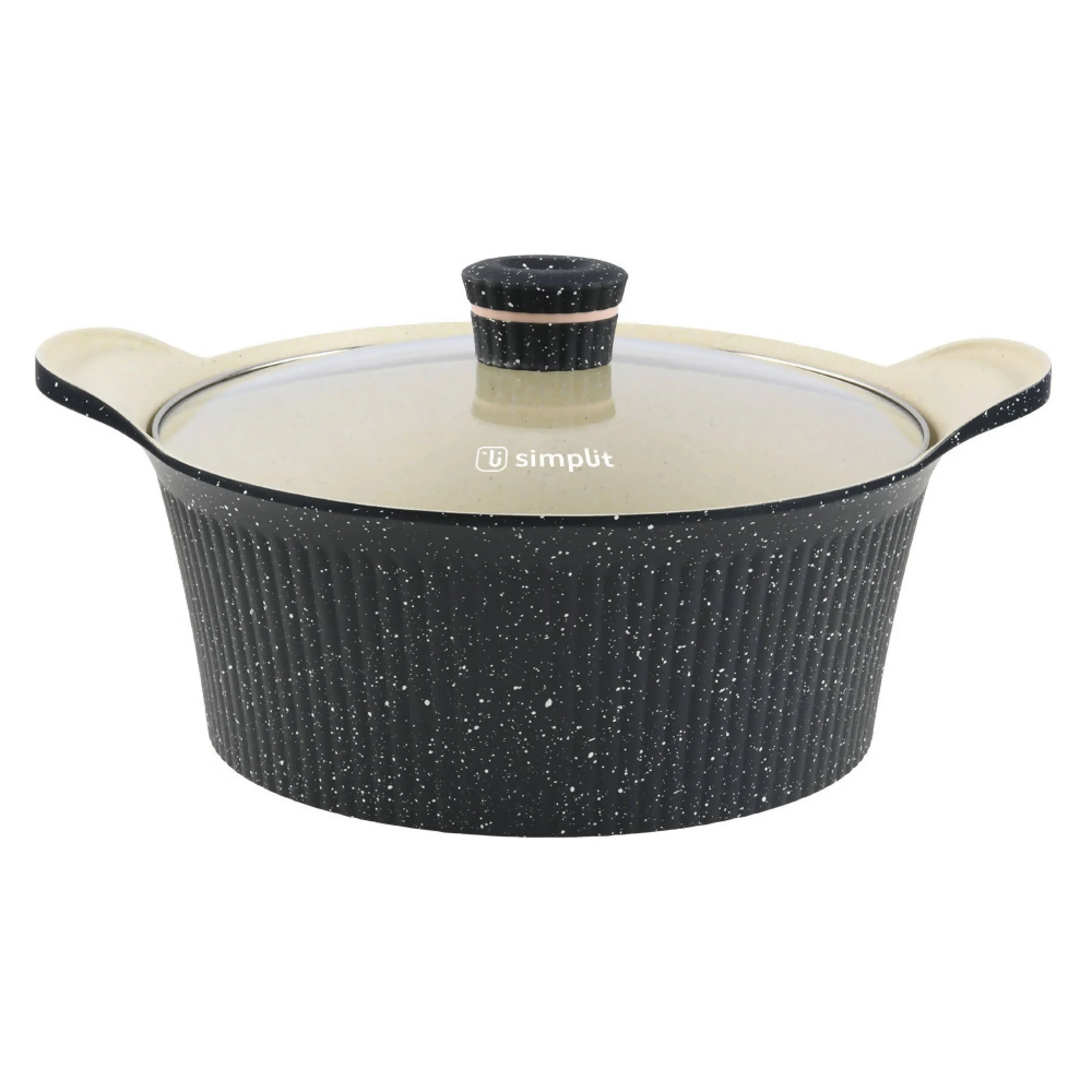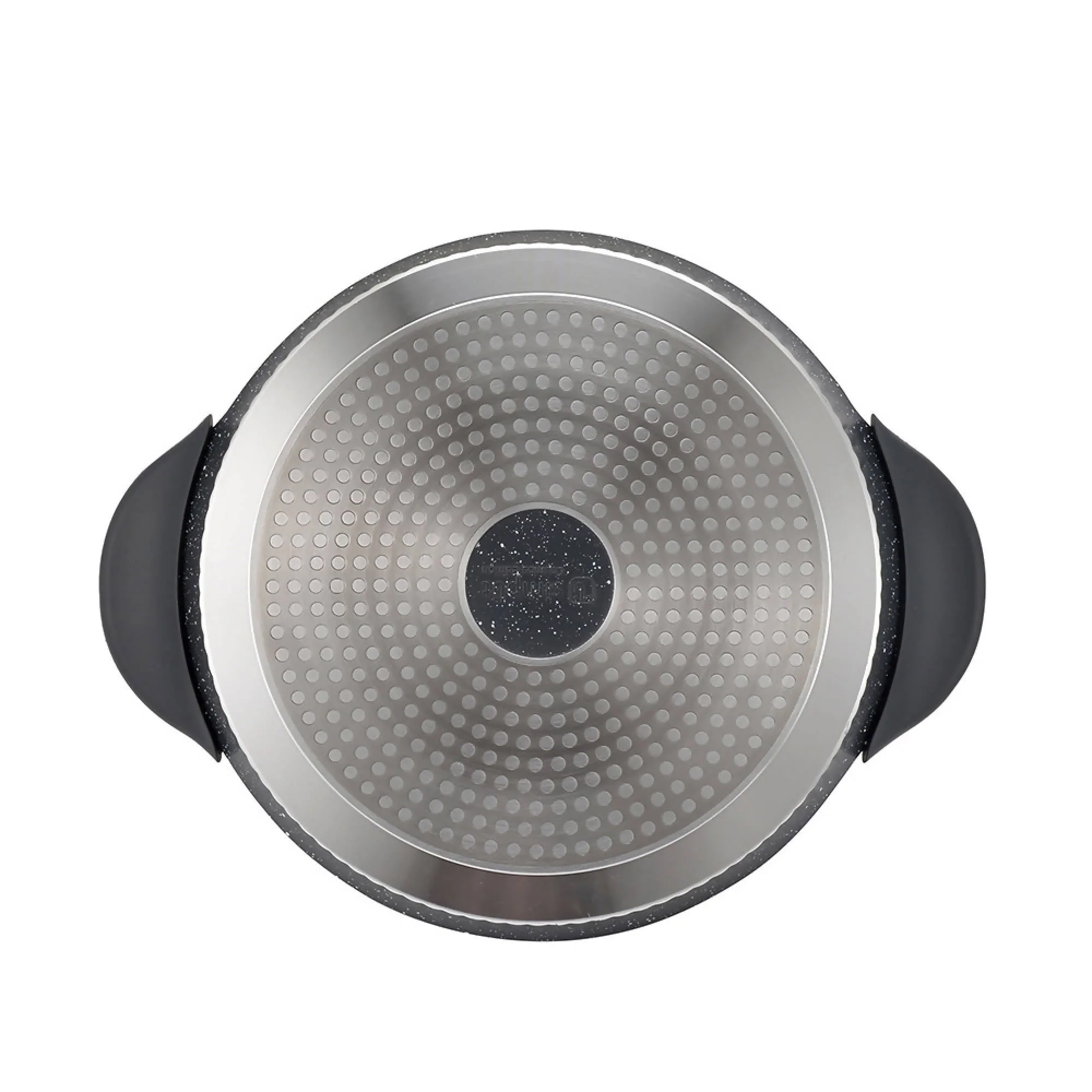 Cosmos Edition presenta un diseño marmolado inspirado en la galaxia.Al ser de color verde petróleo en su exterior y crema al interior, brinda una sensación natural mientras cocinas. Su cuerpo de aluminio fundido garantiza el almacenamiento de calor.