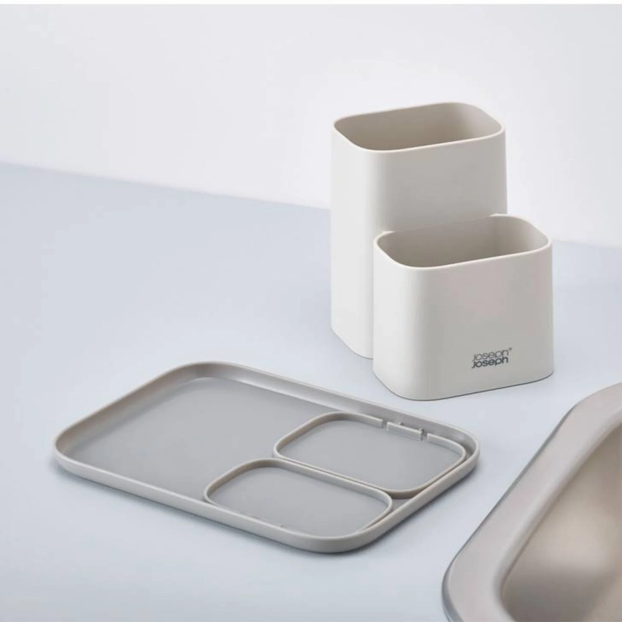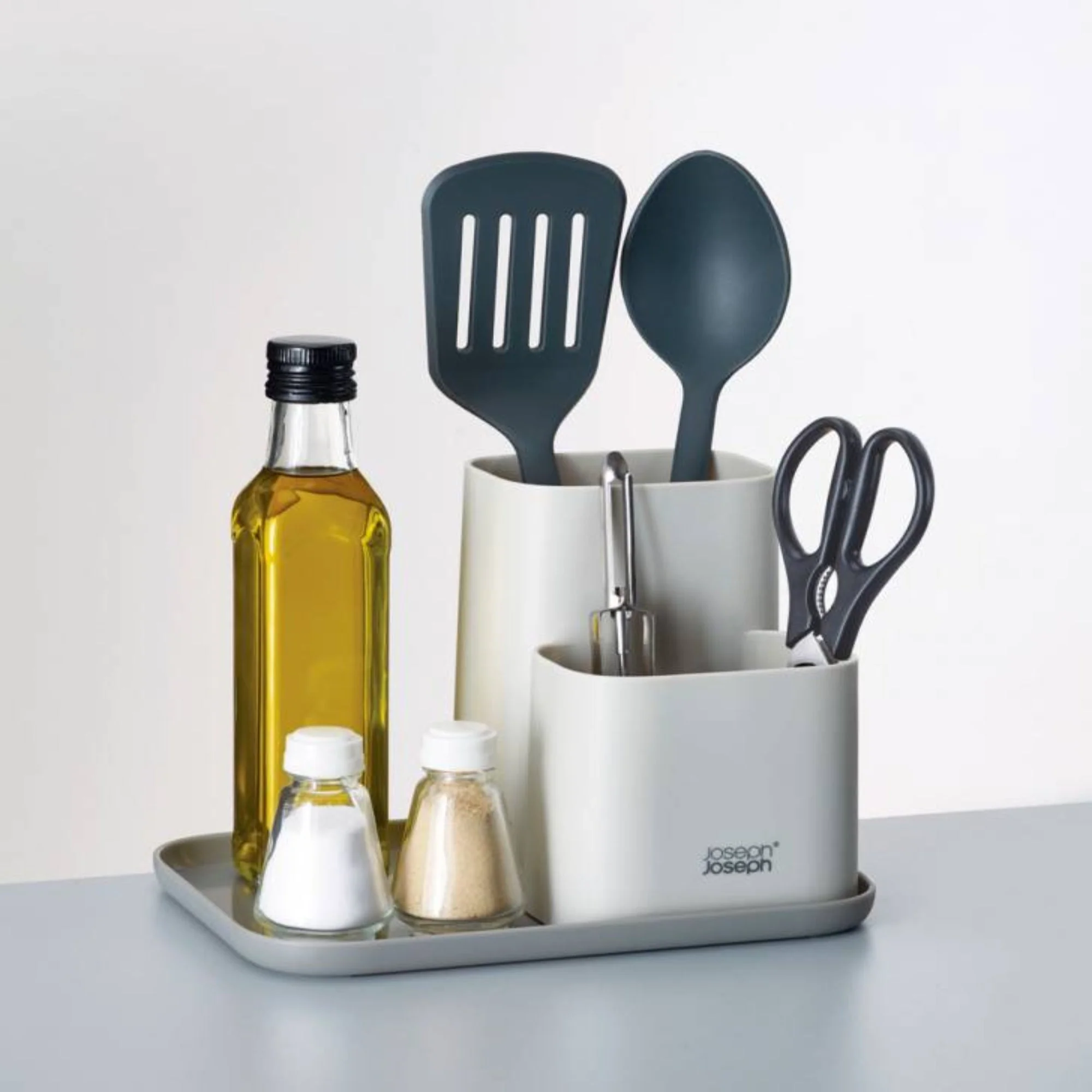 Optimiza tu espacio y mantén tus utensilios ordenados con el Organizador de Utensilios Duo de Joseph Joseph. Con dos compartimentos separados, puedes guardar una variedad de utensilios de cocina, desde espátulas hasta abridores, de manera organizada y accesible. La bandeja adicional es ideal para almacenar aceites, sales y condimentos, manteniéndolos al alcance de la mano. Además, su diseño permite separar el organizador para una limpieza fácil y rápida, asegurando que tu cocina esté siempre impecable.