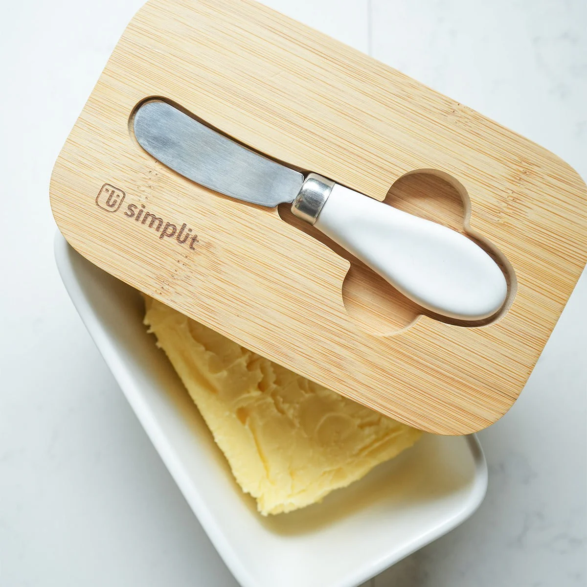 Disfruta de la combinación perfecta de estilo y funcionalidad con nuestro Mantequillero de Cerámica de 600 ml. Su tapa de bamboo con cuchillo incluido mantiene la mantequilla fresca y lista para untar con elegancia. Acompáñalo con nuestra Panera Metálica: metal blanco y tapa de bamboo que conserva el pan fresco y también funciona como tabla de corte o presentación. Este dúo no solo es práctico, sino que aporta un toque moderno y sofisticado a tu cocina. ¡Haz de cada comida una experiencia de lujo!
