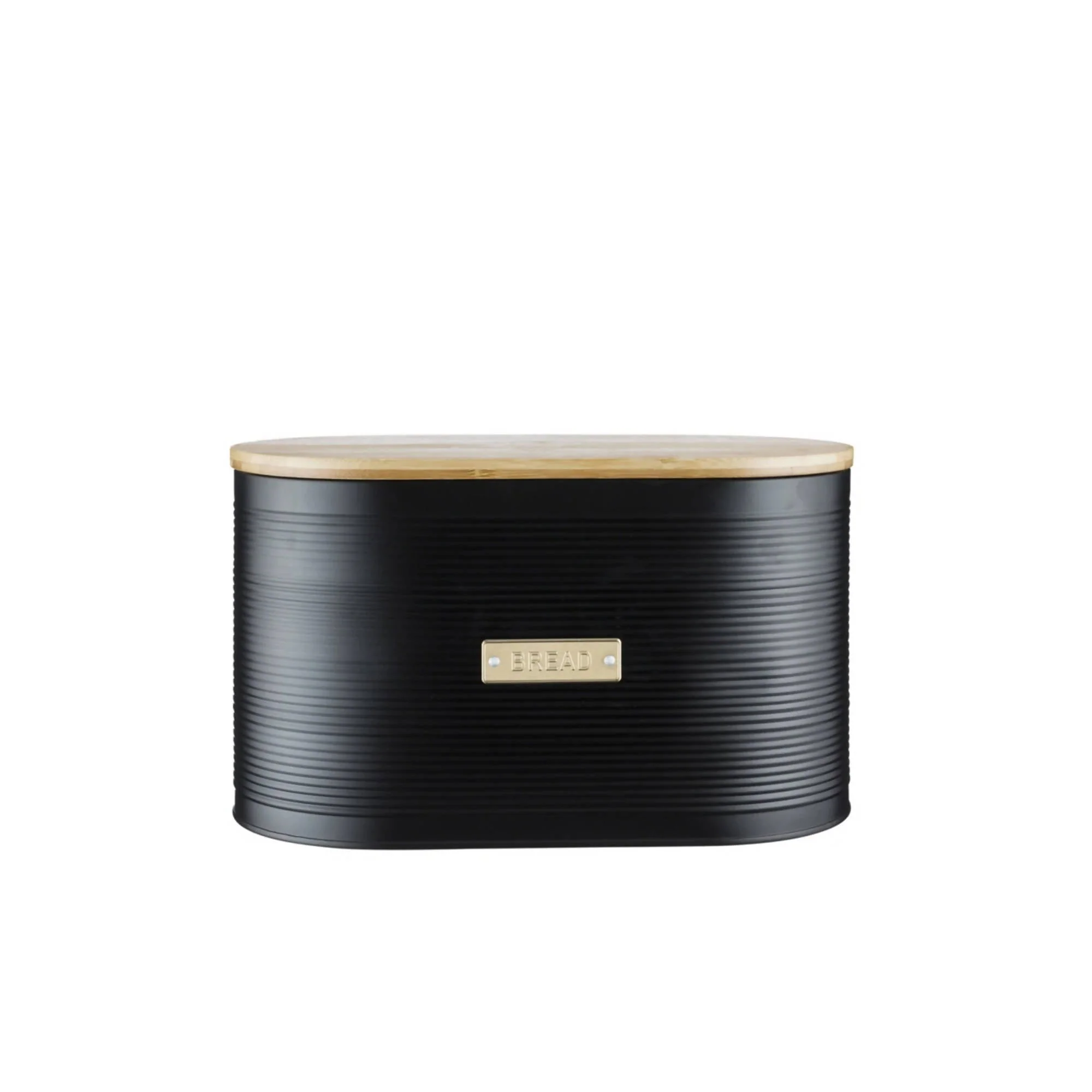 La línea Otto de Typhoon combina el sofisticado negro mate con el dorado para ofrecer elegancia y glamour a la cocina. Otto es práctico y elegante y su panera es perfecta para guardar tus productos recién horneados. La tapa de bambú de origen sostenible puede funcionar como una tabla para cortar o preparar. Las tapas de la panera se asientan perfectamente en la parte superior de la bandeja de pan, lo que permite que el contenido respire y se conserve correctamente. El almacenamiento Typhoon se crea a partir de acero revestido resistente y duradero que es fuerte y liviano.