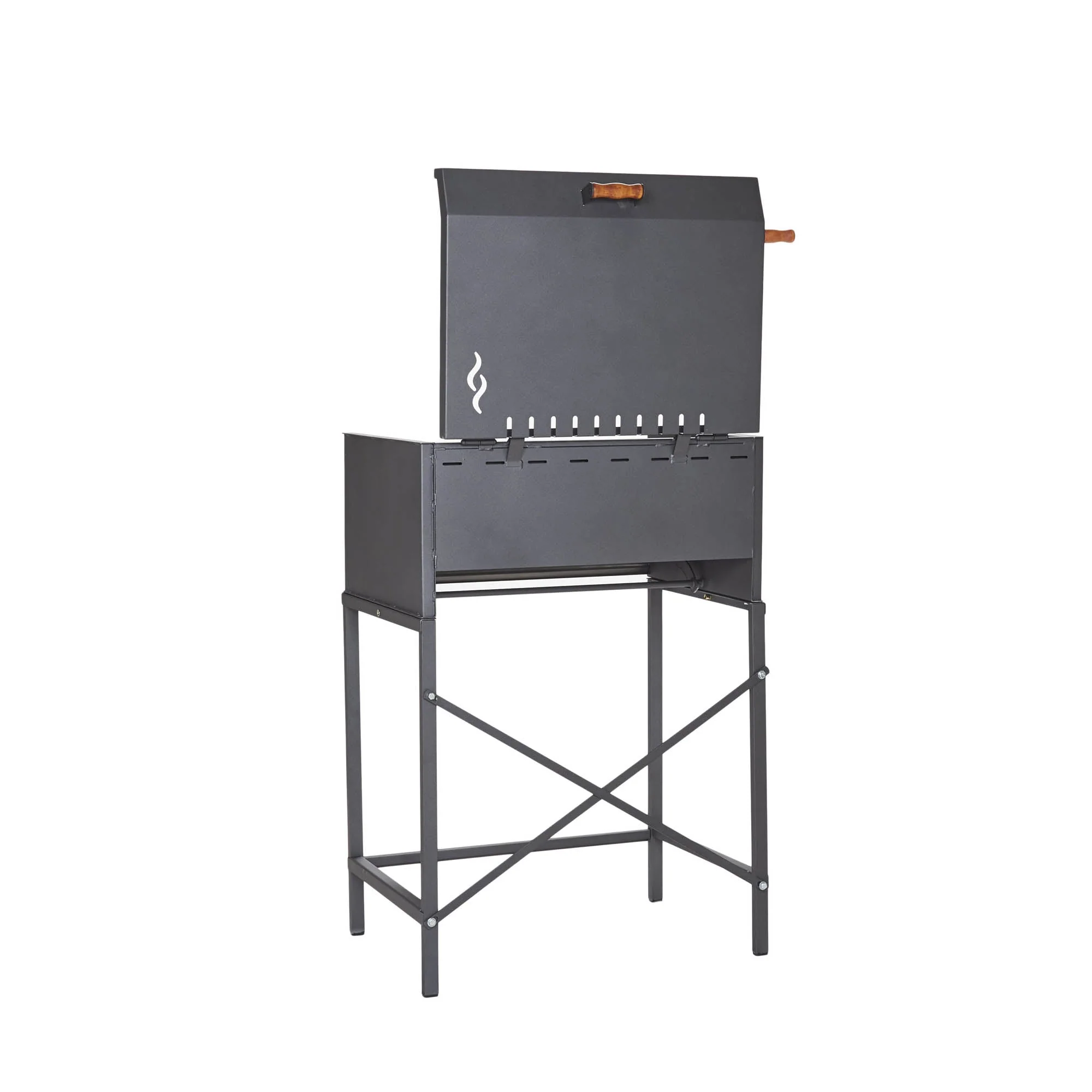 Ahora ya no hay excusas para no disfrutar de un buen asado, pues la Parrilla Pacífico tiene, en su tamaño compacto, el potencial para ser un gran compañero en tus parrilladas. De partida, hay que olvidarse de esas parrillas que son enclenques e inestables. Éste es un equipo robusto, rígido, el cual se encuentra montado sobre una base fija de hierro. Pensado para durar. Posee como opcional un brasero para generar el fuego por fuera de la parrilla.