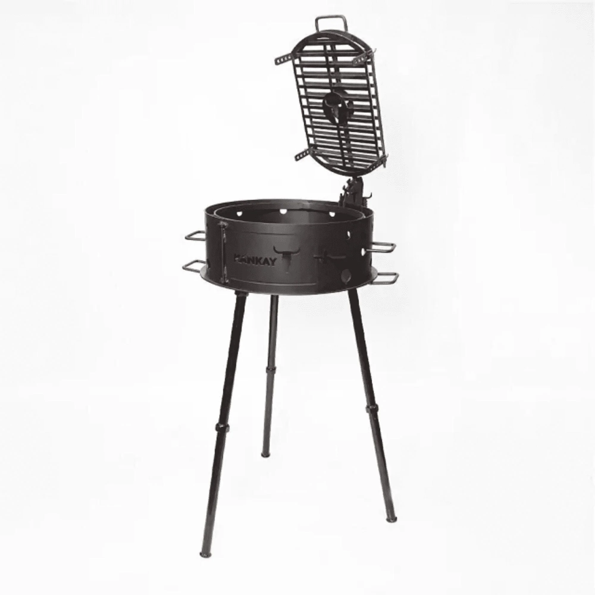 Base de disco de arado, fogón de hierro con puerta para facilitar el manejo de las brazas. La base de cocción es una parrilla de hierro y una placa de hierro de 3mm de espesor. Fabricado en hierro, incluye tabla lateral que facilita la dinámica del anfitrión al momento de asar. ¿Qué incluye? Parrilla circular c/ plancha, Cruz 3.0; Tabla Lateral de apoyo