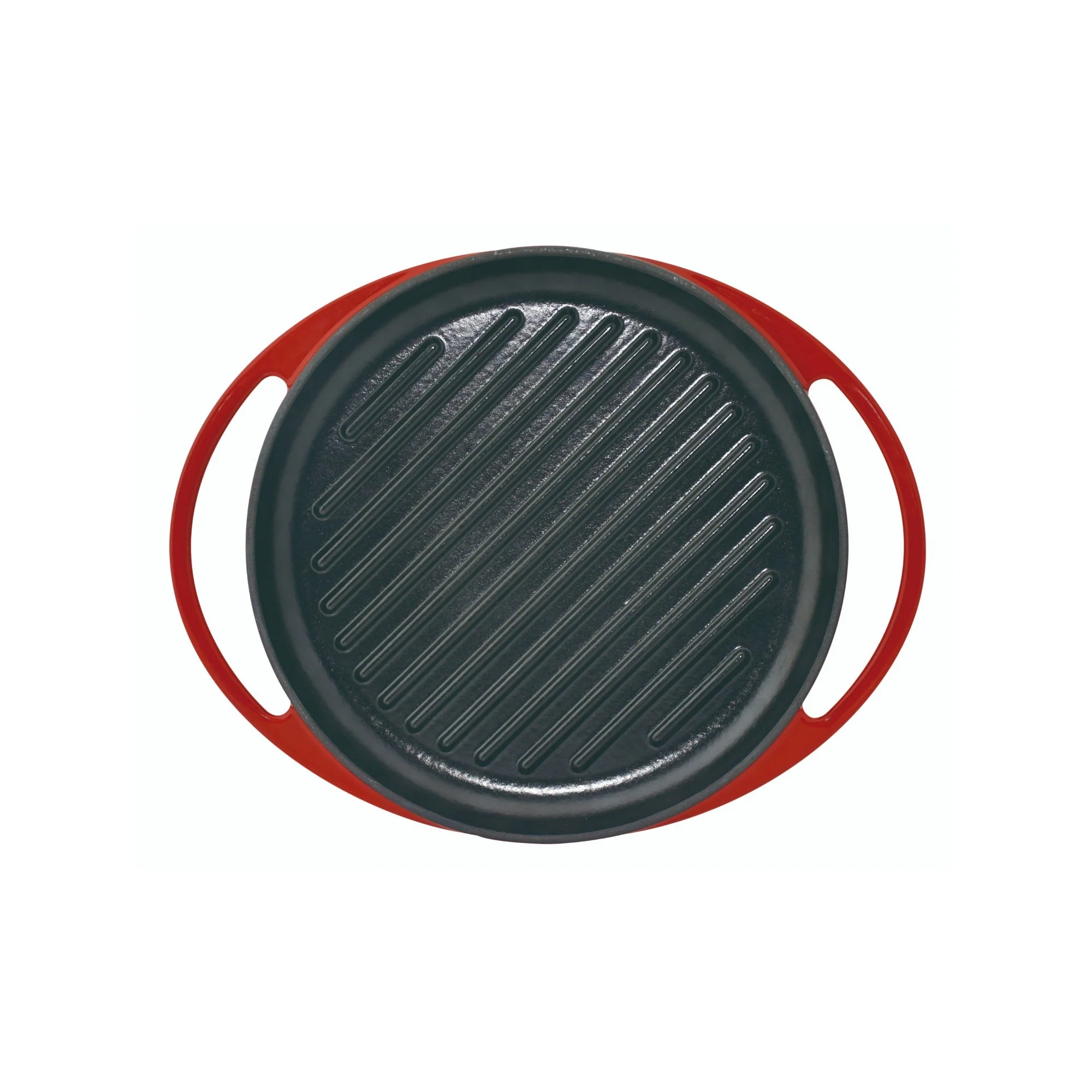 Grill de hierro fundido. Especial carnes y verduras. Hierro fundido esmaltado: perfecta distribución del calor, transmisión rápida de temperatura, mantenimiento del calor máximo, resistente y duradero. Esmaltado exterior. Cocina sana y natural. Asas laterales. Apta para: horno y barbacoa, todo tipo de cocinas, inducción, gas, vitrocerámica. Superficie diámetro 25 cm. Fácil de limpiar.