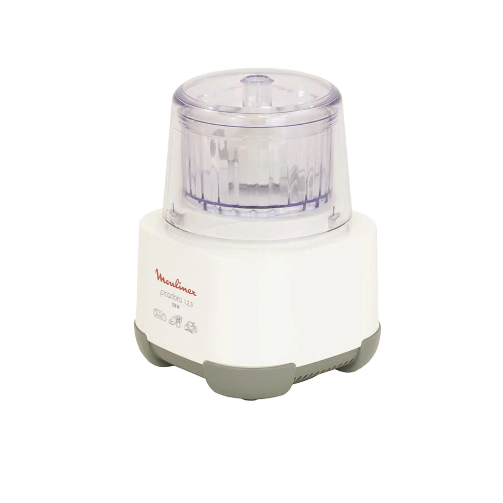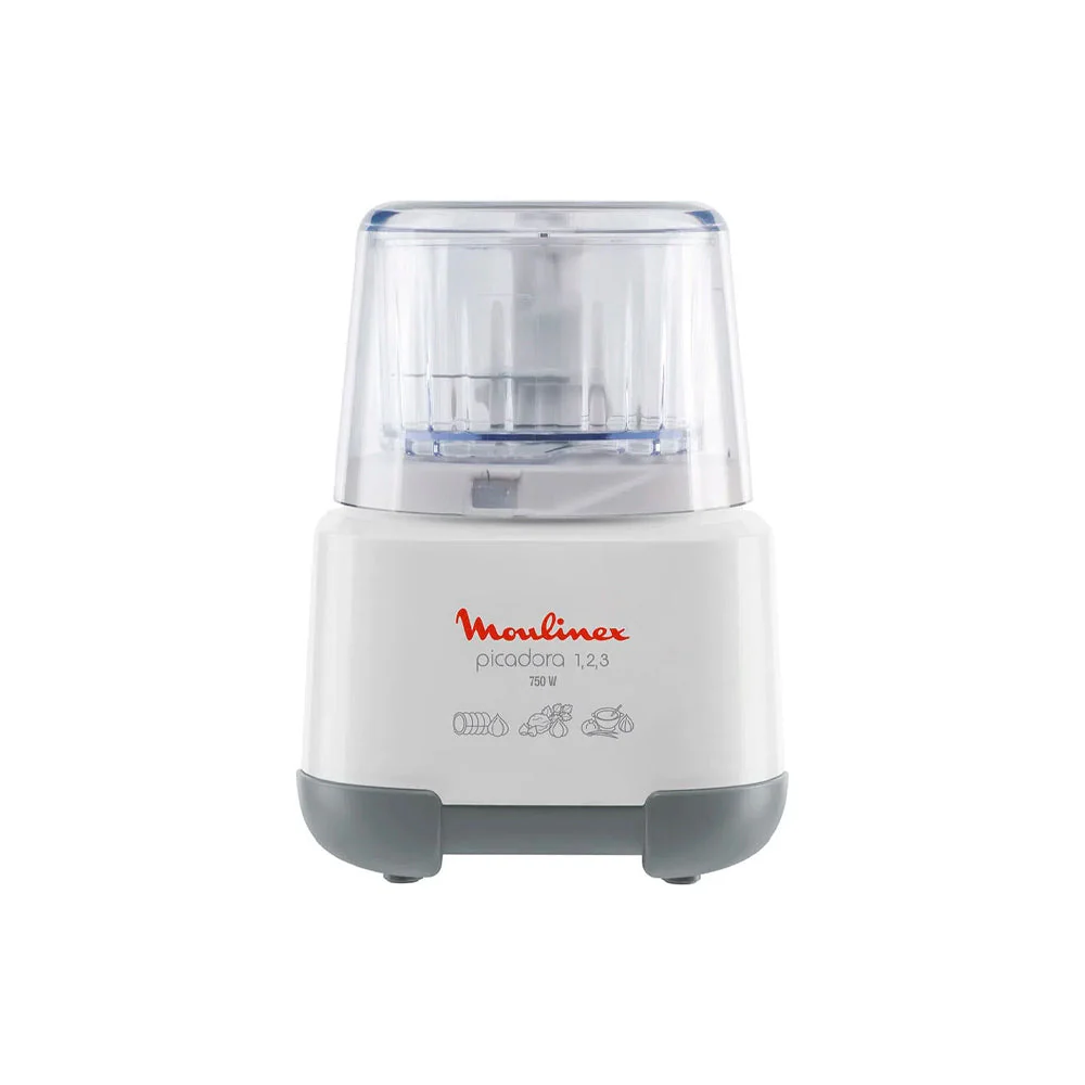 Pica y Licúa todo en segundos gracias a la Picadora 1, 2, 3 de Moulinex. Cocina más fácil, pica toda clase de alimentos, incluso carne en tan sólo 3 pulsos. Posee sistema 1, 2, 3 sencillo, sólo presionando el bowl. Posee cuchillas súper afiladas en acero inoxidable. Además, cuenta con un sistema de seguridad electrónico que evita que el motor funcione si el vaso no se inserta correctamente.