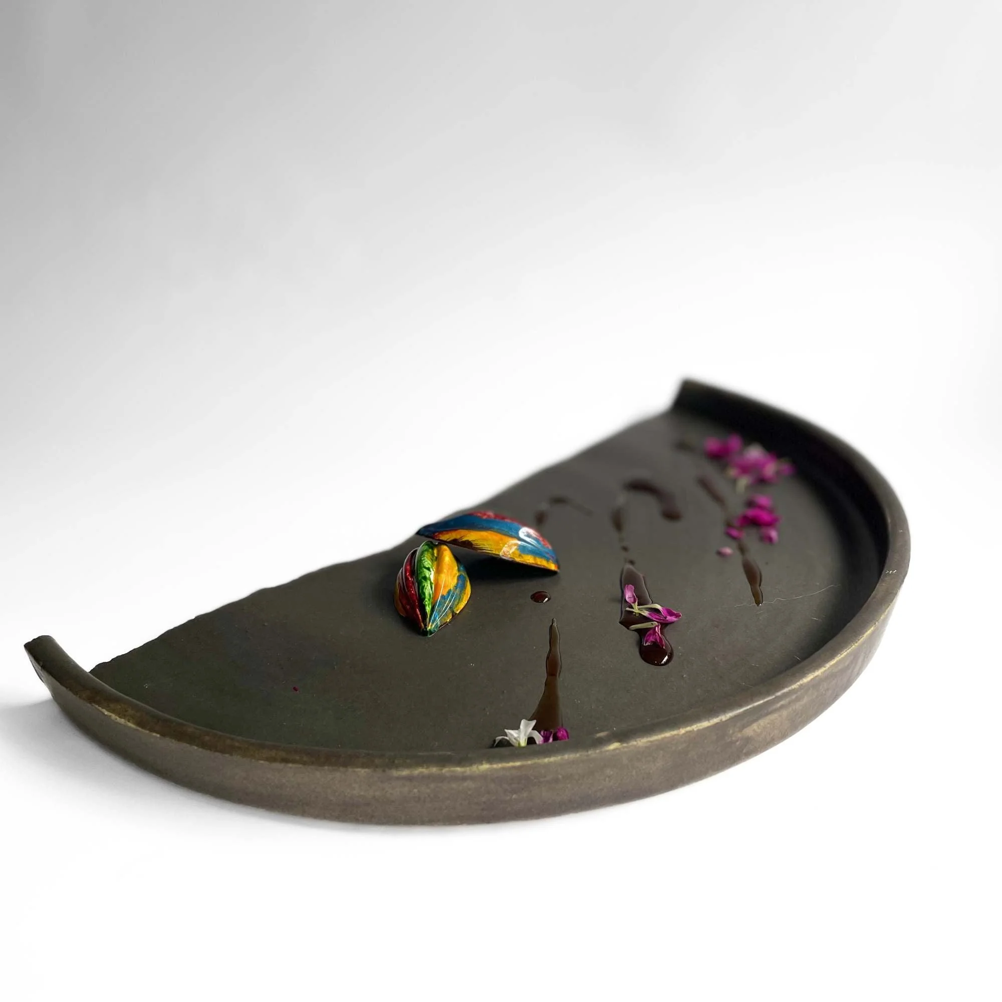 «Ritual» es una línea exclusiva de piezas y platos en cerámica de gres, elaborados de forma artesanal, con inspiración en objetos litúrgicos y ceremoniales. Esta interpretación del ritual llevado a la mesa, se convierte en lienzo ideal para servir una amplia variedad de platos, desde entradas y ensaladas hasta platos principales y postres. Cada objeto es hecho a mano uno por uno en nuestro taller, al igual que los esmaltes. Es por esto que pueden existir pequeñas variaciones entre los tamaños, formas y colores.