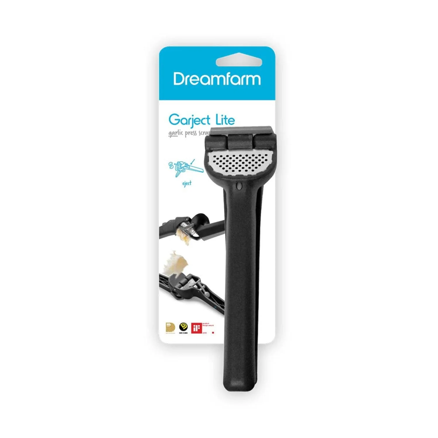 Garject Lite es una potente prensa de ajo: presiona fácil y completamente varios dientes de ajo a la vez, sin necesidad de pelar primero.El diseño inteligente asegura que todo el ajo prensado entre en tu comida y nunca en tus dedos.