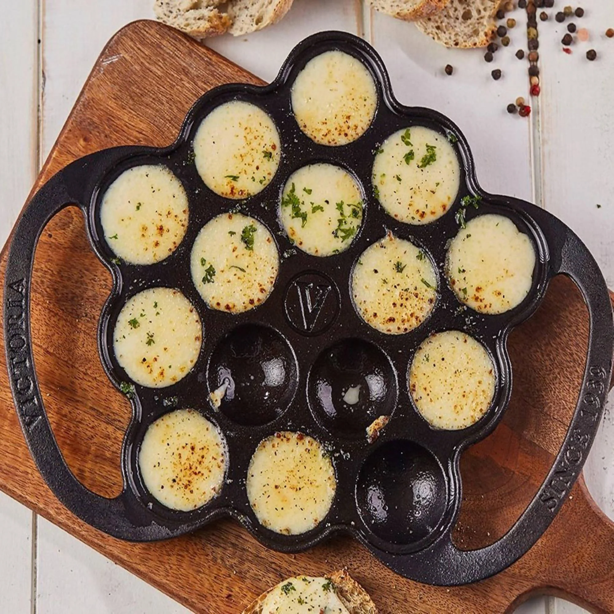 Con la Provoletera de hierro fundido Victoria puedes puedes preparar distintas recetas como mini pancakes, mini huevos, derretir queso provolone y todo lo que se te ocurra en versión miniatura.Esta Provoletera cuenta con alta tecnología en la distribución de calor, además cuenta con mangos ergonómicos, permitiendo una mejor manipulación a la hora de preparar cada una de tus recetas.