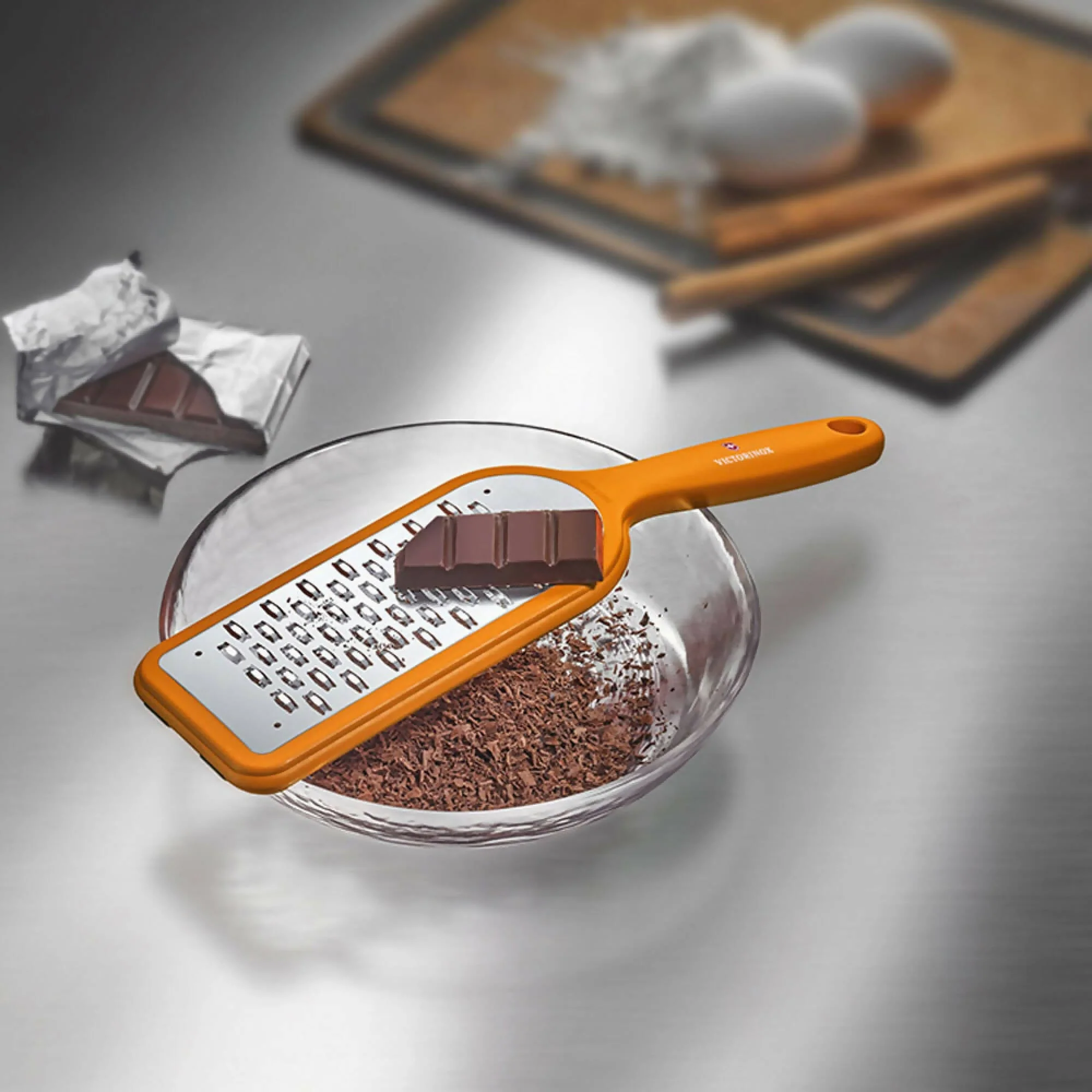 Filo medio con hojas bidireccionales. Es un rallador, pero no se parece a los que usted conoce. Conozca nuestra alternativa amigable a la mandolina rebanadora tradicional. Ergonómico, fácil de usar y totalmente perfecto para la cocina, nuestro rallador con filo medio se destaca tanto en versatilidad como en seguridad. Sus hojas bidireccionales muy afiladas permiten un movimiento hacia adelante y hacia atrás sin esfuerzo, lo cual crea virutas de textura ideal para chocolate, queso duro y zanahorias por igual. En resumen, este utensilio es simplemente «grandioso».