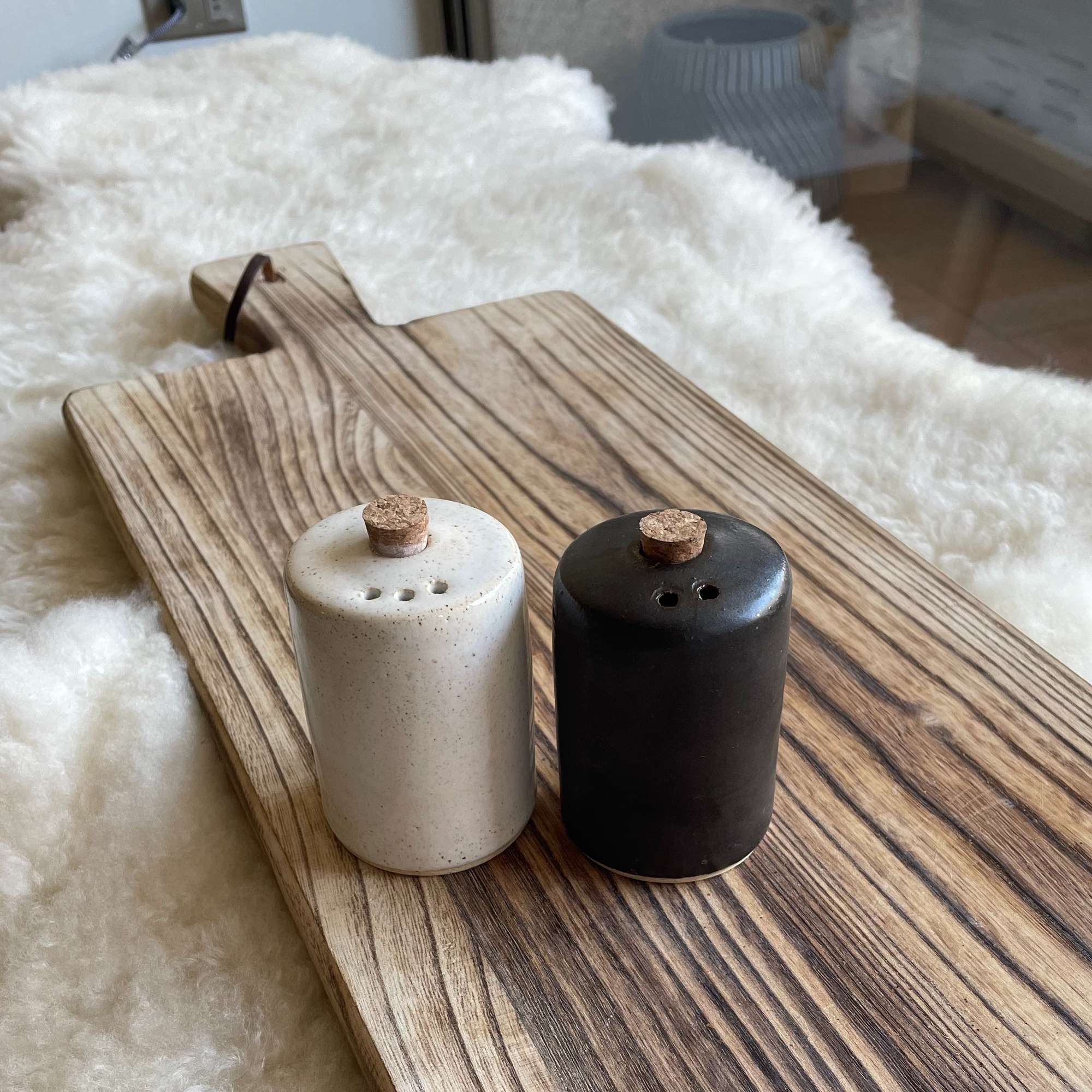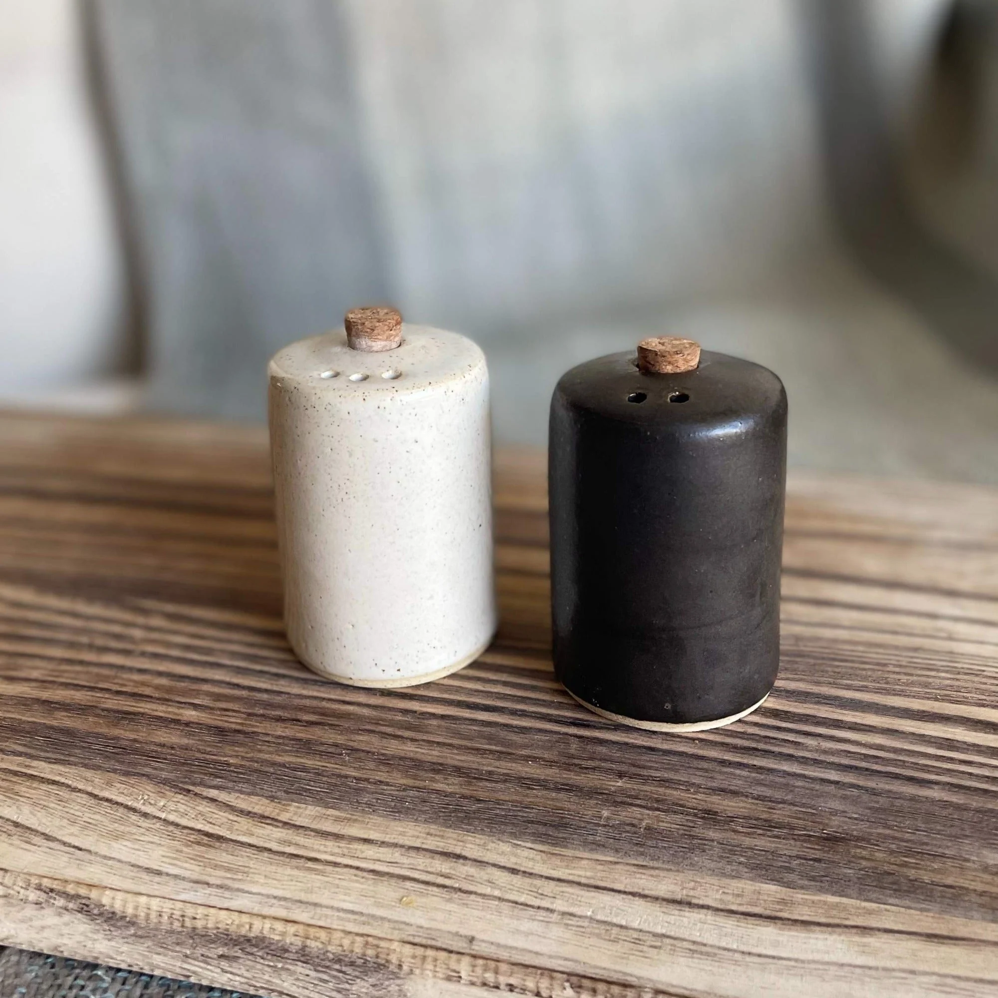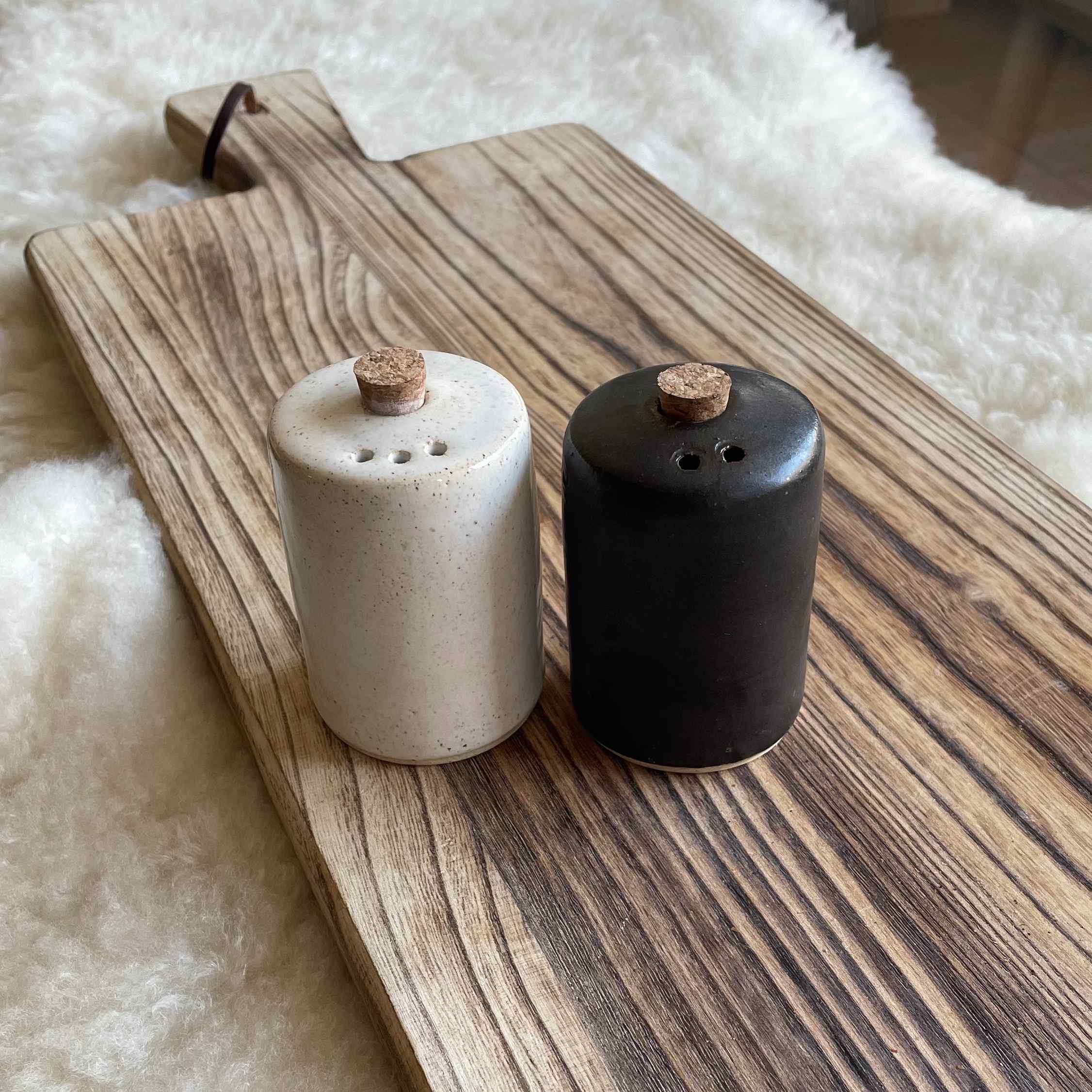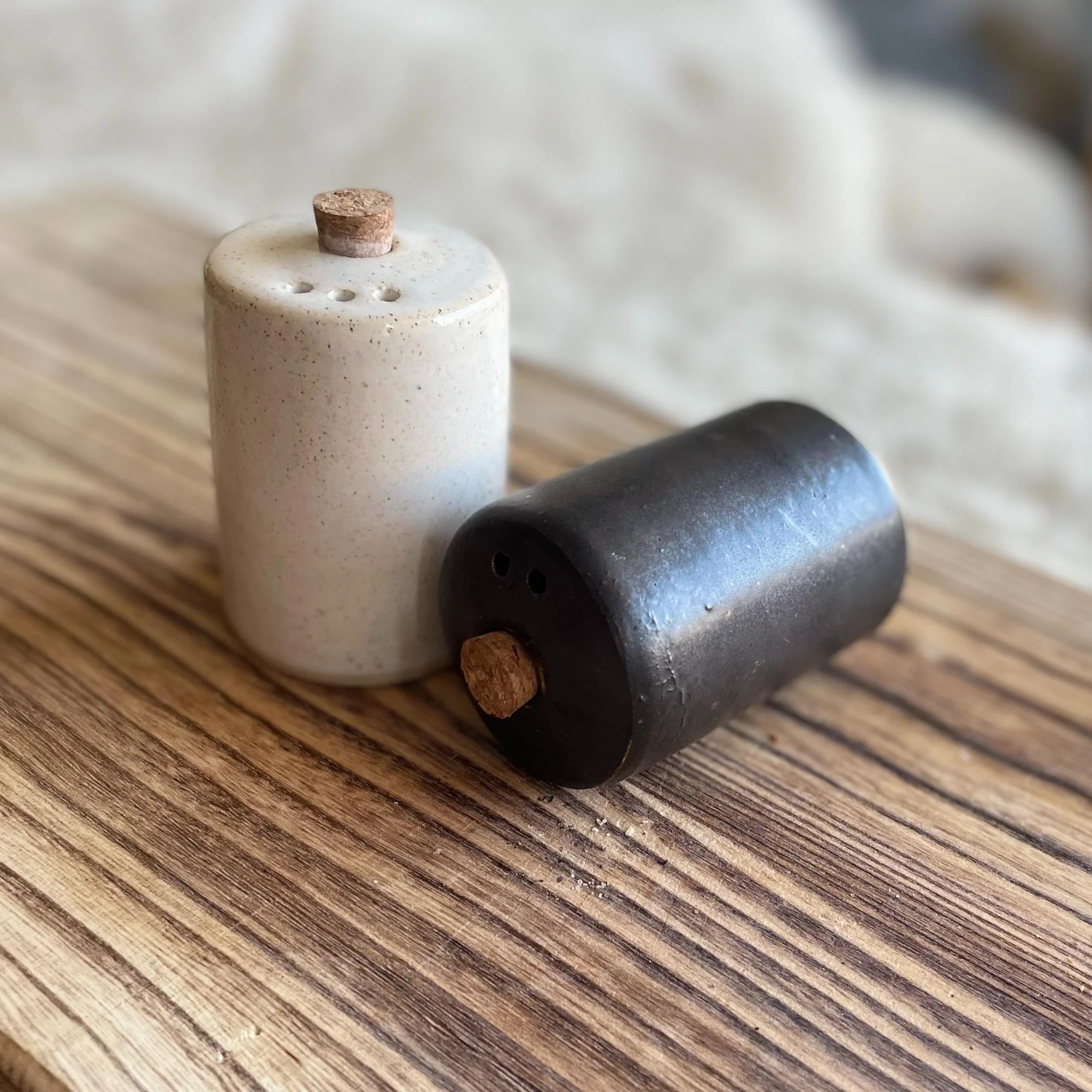 ¡Un infaltable en tu mesa! De diseño minimalista, estos inseparables de toda comida, salero y pimentero, en su versión blanco y negro, ideal para hacer juego con cualquier estilo de decoración. Cada objeto es hecho a mano uno por uno en nuestro taller, al igual que los esmaltes. Es por esto que pueden existir pequeñas variaciones entre los tamaños, formas y colores. Incluye un salero blanco y un pimentero negro. Se recomienda tener cuidado al manipular las piezas.