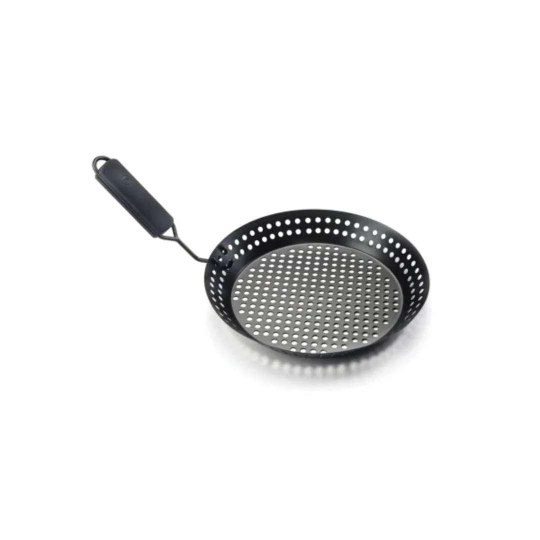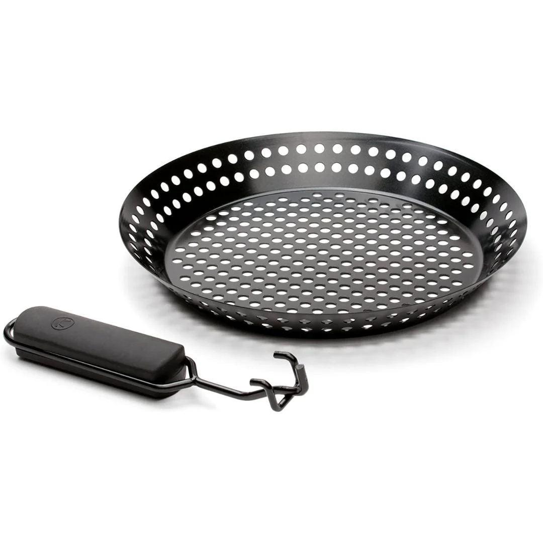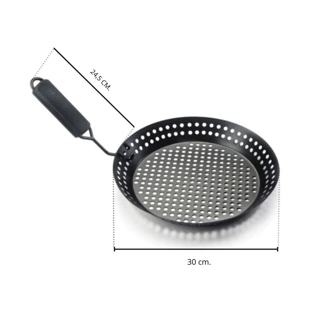 Es hora de impresionar a tus invitados con este sartén antiadherente. El revestimiento antiadherente libre de PTFE/PFOA y el mango extraíble de agarre suave facilitan la limpieza y brindan durabilidad. La superficie para asar perforada de la sartén garantiza una cocción consistente y realza los sabores naturales de los alimentos, al tiempo que le permite asar verduras, mariscos, pescados, y ¡Todo lo que quieras! sin temor a que se caigan a través de las rejillas. El asa plegable que se incluye permite dejar la sartén en la parte superior de la parrilla mientras se cocina. Asa a la perfección con esta sartén versátil, construida para impresionar.