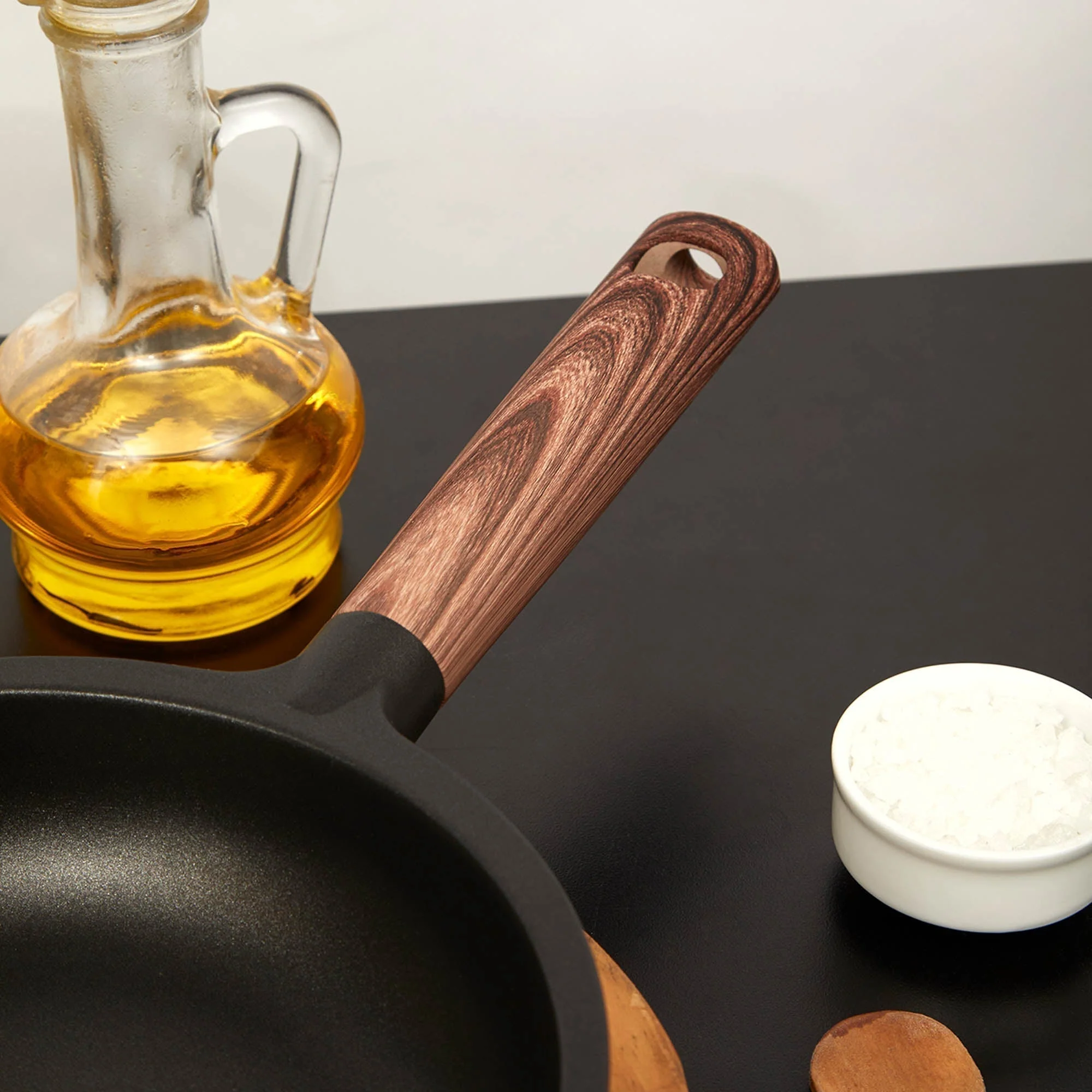 Cocina tus platos favoritos de manera saludable y sostenible con el Sartén Eco Nature de 20 cm de Oroley. Perfecto para carnes, pollo, pescado y más, este sartén de aluminio fundido cuenta con una base antiadherente ecológico ILAG, libre de PFOA, con certificación en Suiza, garantizando comidas jugosas y tiernas. Su mango de silicona premium con efecto madera Soft Touch te ofrece comodidad y seguridad al cocinar, siendo compatible con todo tipo de cocinas, incluidas gas, eléctrica y de inducción. Sigue sencillos cuidados como lavarlo a mano y utilizar utensilios adecuados para mantener su durabilidad. Este sartén no solo mejora tu experiencia culinaria sino que también respeta el medio ambiente. Adquiere este esencial de cocina importado para Chile por Kitabco Spa, y da un paso hacia una cocina más ecológica y elegante.