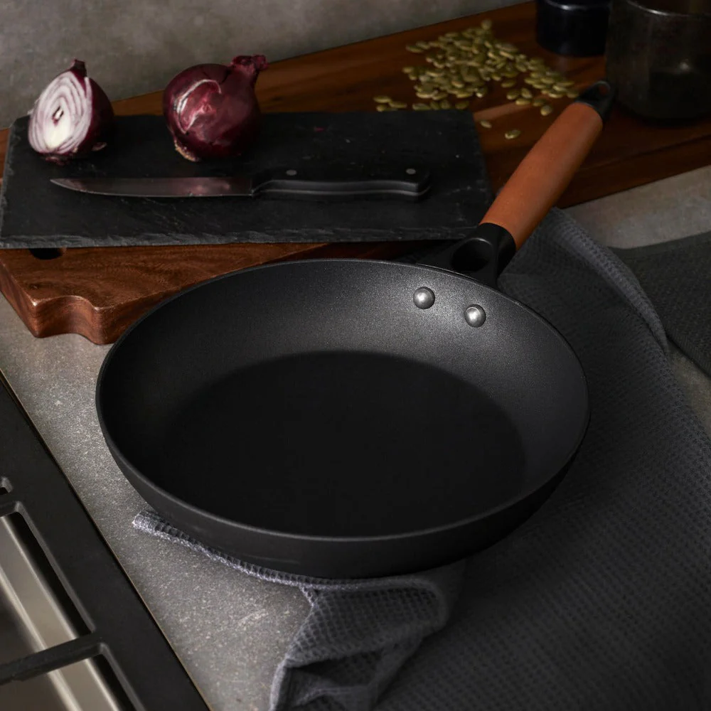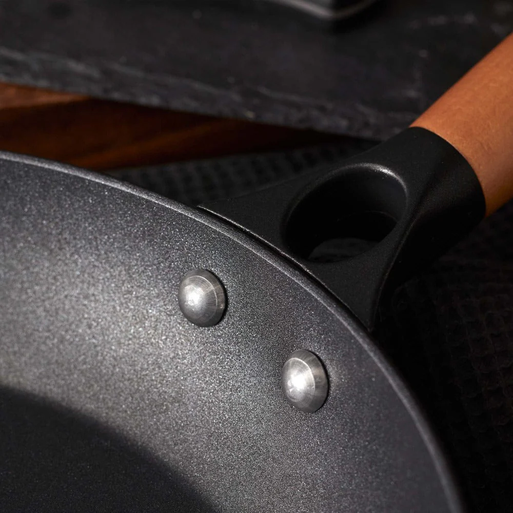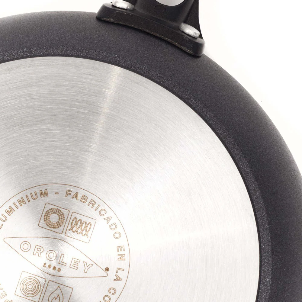 Oroley te ofrece diseño y tecnología al servicio de la cocina. Con los mejores materiales y diseños exclusivos. Línea Nadur aluminio forjado antiadherente Ecológico (libre de PFOA y PTFE) marca alemana Greblon fabricado en Portugal Comunidad Europea, full inducción de acero inoxidable 0.6mm de espesor, mango aplicación madera, sartén Nadur 24 cm.