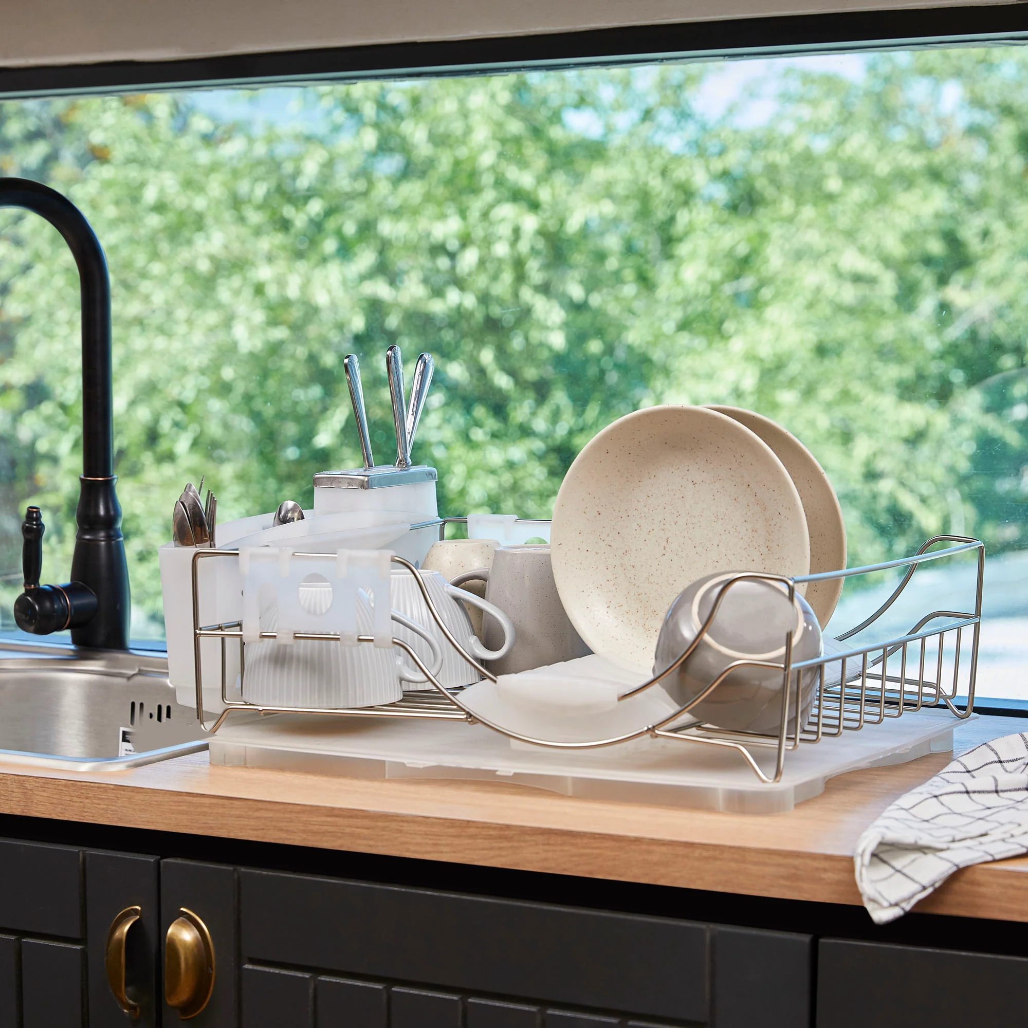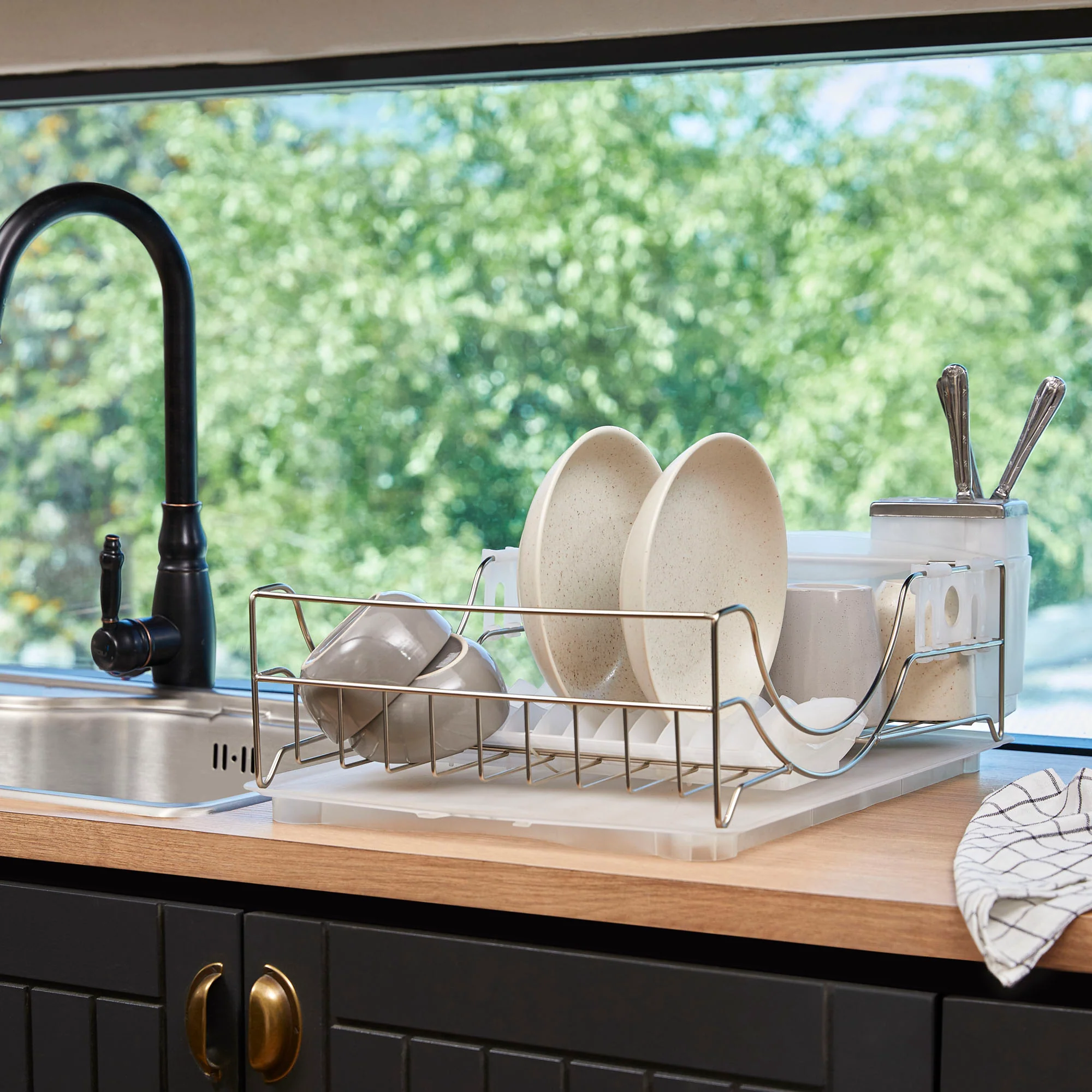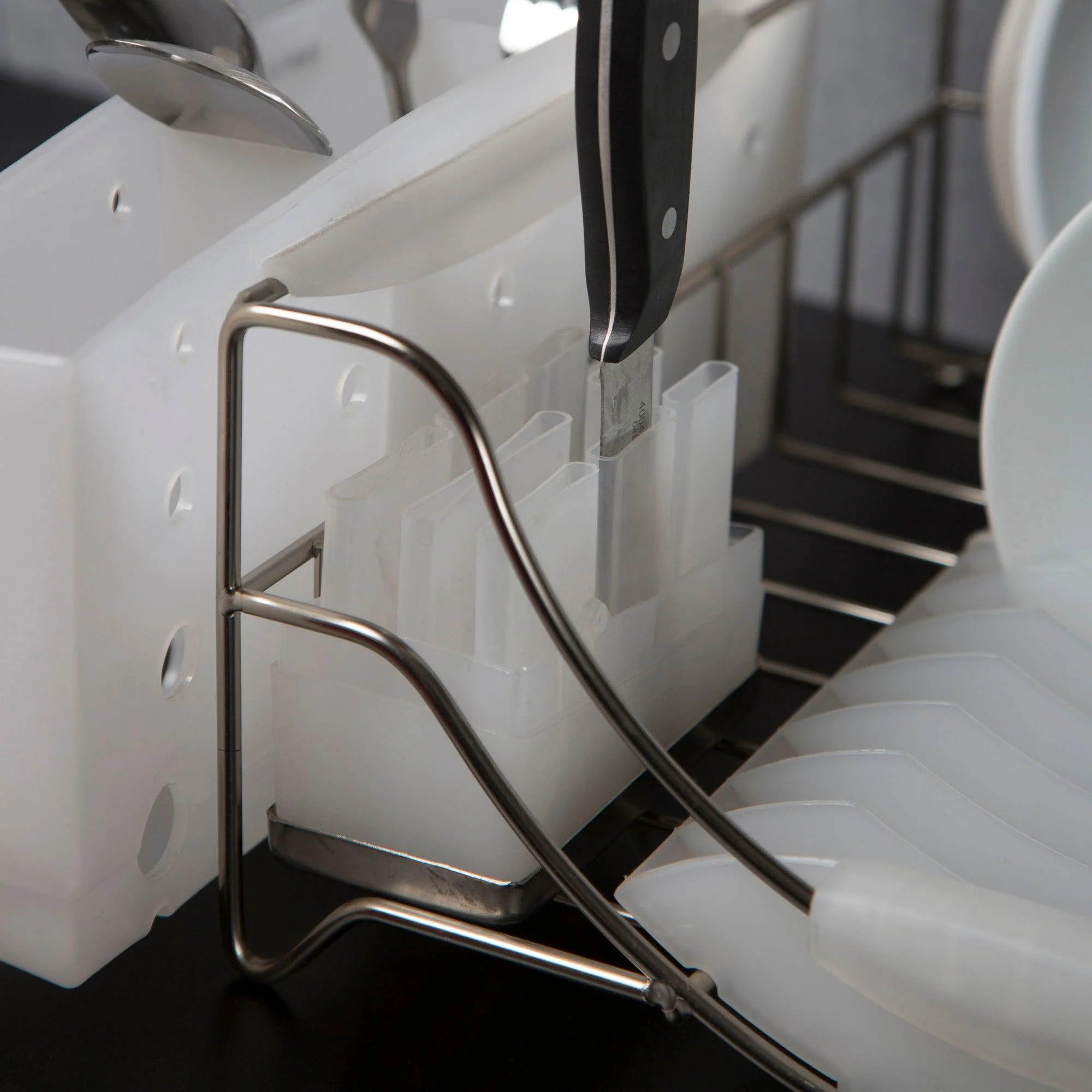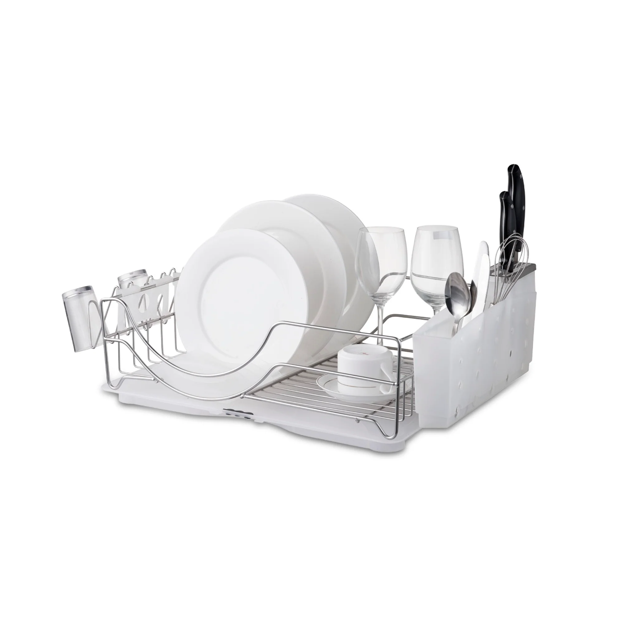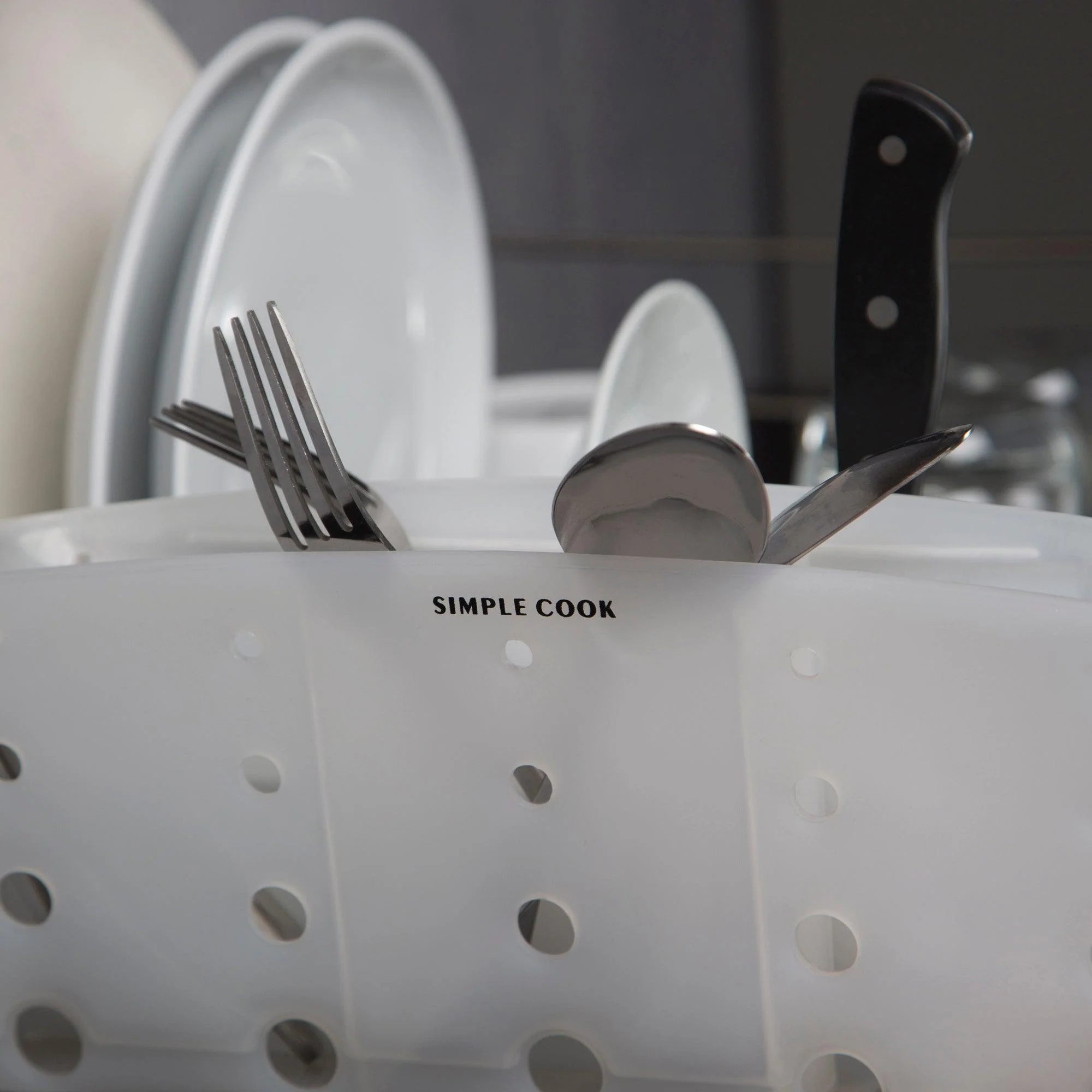 El secaplatos Diamond de Simple Cook es esencial para mantener tu cocina organizada. Fabricado con estructura de acero inoxidable y bases plásticas resistentes, ofrece espacio para hasta 14 platos, así como un contenedor especial para cuchillos y una rejilla para vasos. Además, cuenta con una bandeja desmontable para recoger gotas, lo que facilita la limpieza.