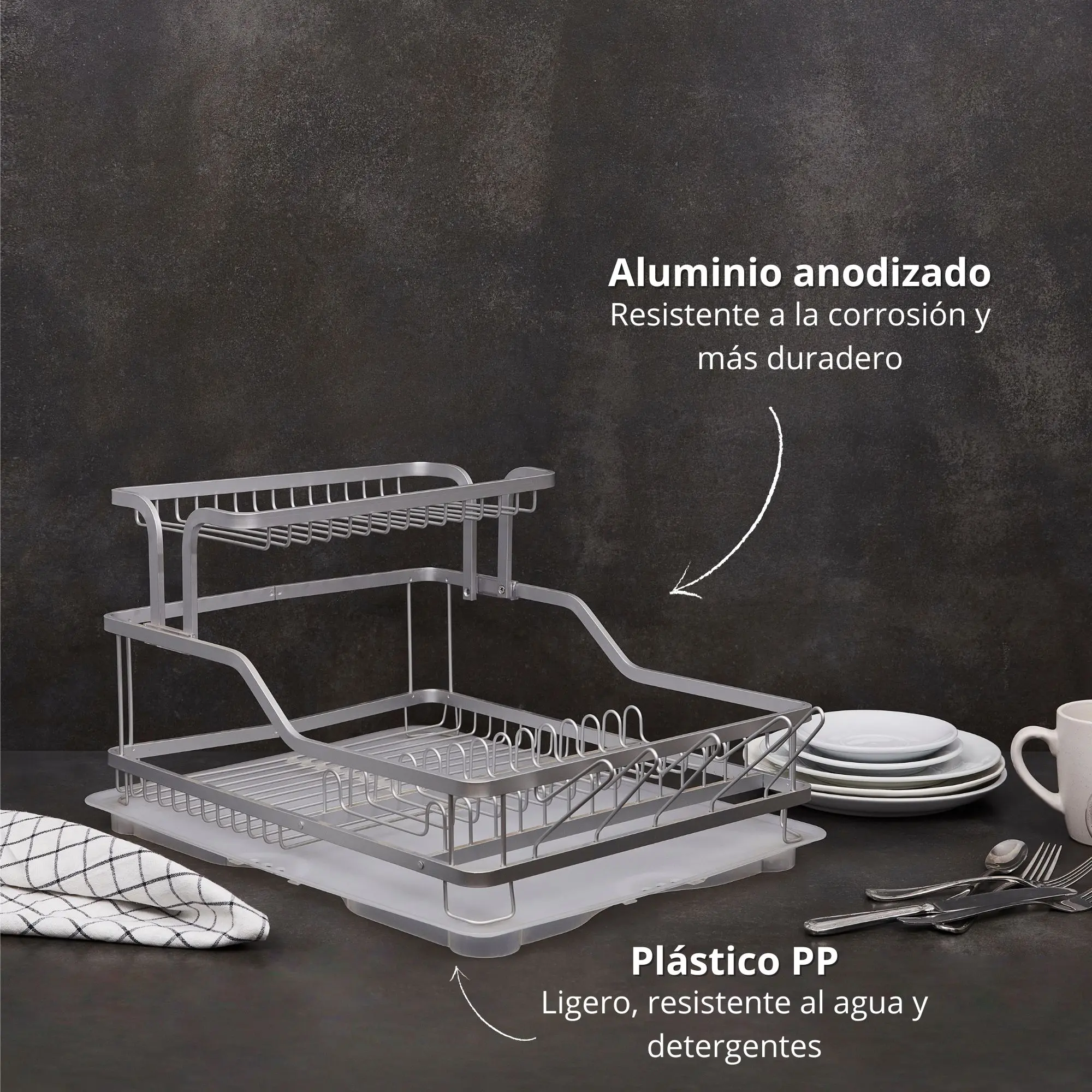 Nuestro Secaplatos Simple Cook Quarzo Duo es el complemento perfecto para tu lavaplatos. Cuenta con doble drenaje y zona desplegable de vasos, lo que lo convierte en una alternativa fácil de limpiar e ideal para que tu loza, vasos y cubiertos logren un buen secado. Su material plástico e inoxidable permitirá que siempre este como nuevo. ¡Convierte el lavado en un placer!