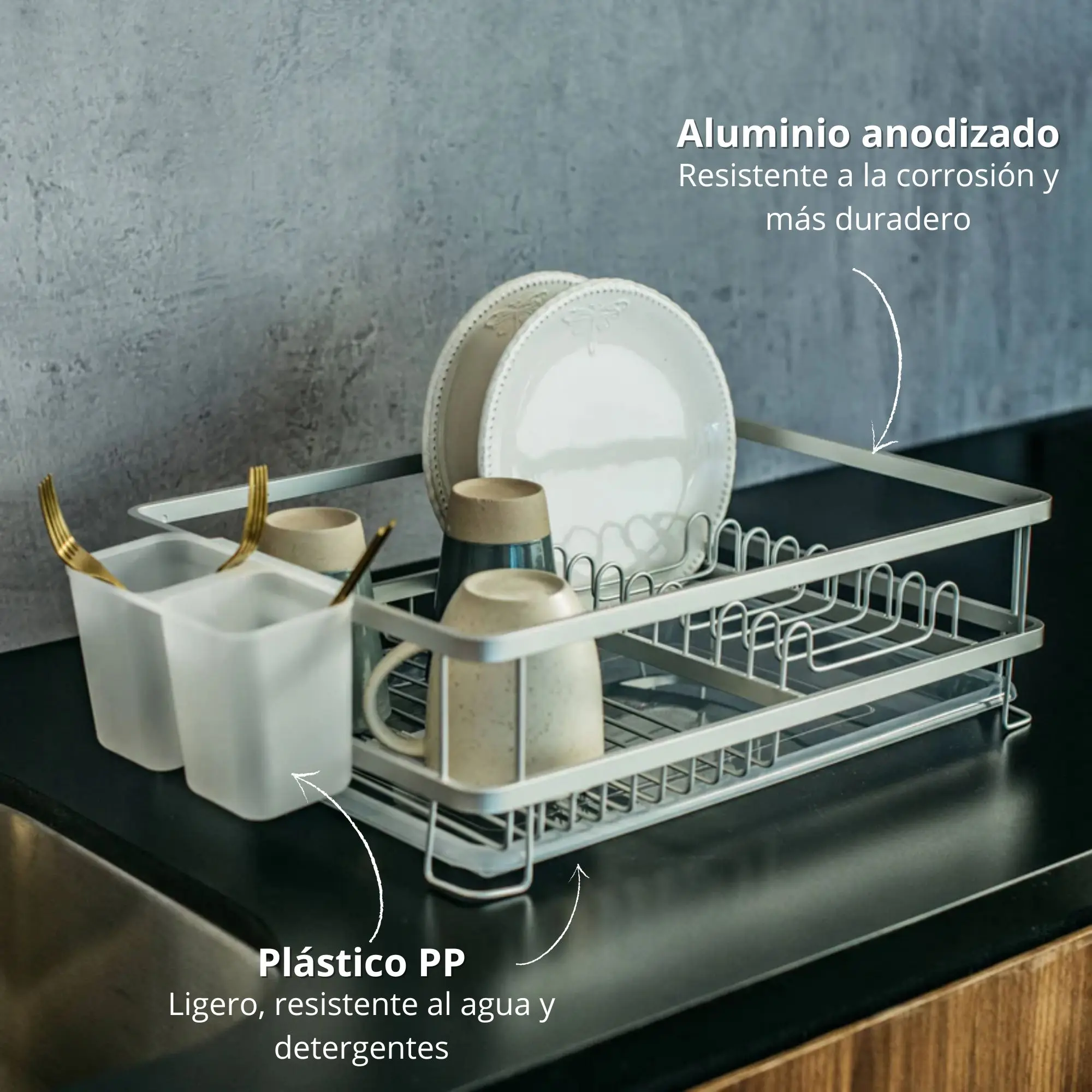 Simplifica el secado de tu vajilla con el Secaplatos Uranio de Simple Cook. Su diseño elegante y compacto optimiza el espacio en cocinas modernas, mientras que su construcción en aluminio y plástico PP garantiza resistencia a la corrosión y larga durabilidad. Disfruta de un área de trabajo ordenada gracias a su bandeja recoge gotas y contenedor independiente para cubiertos.