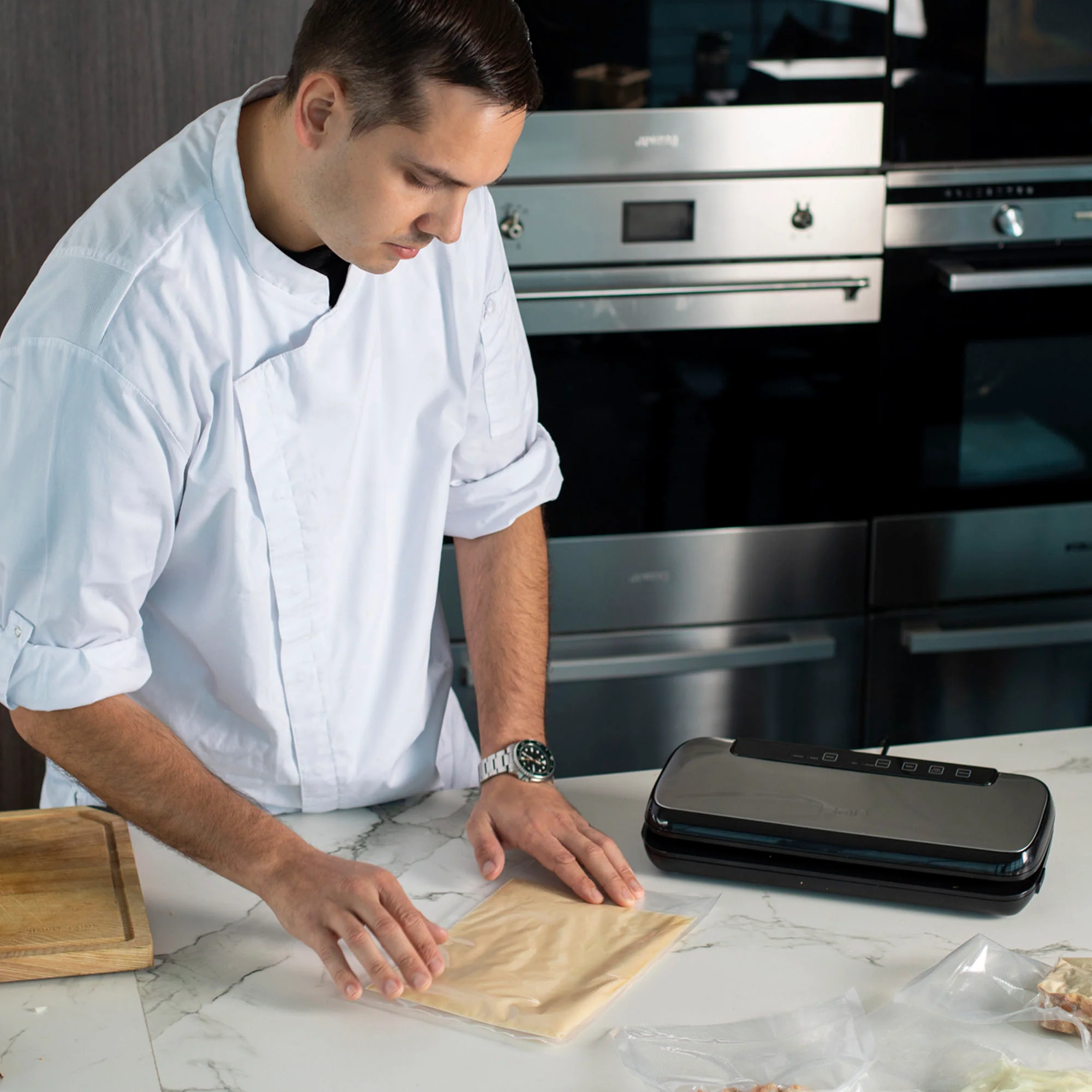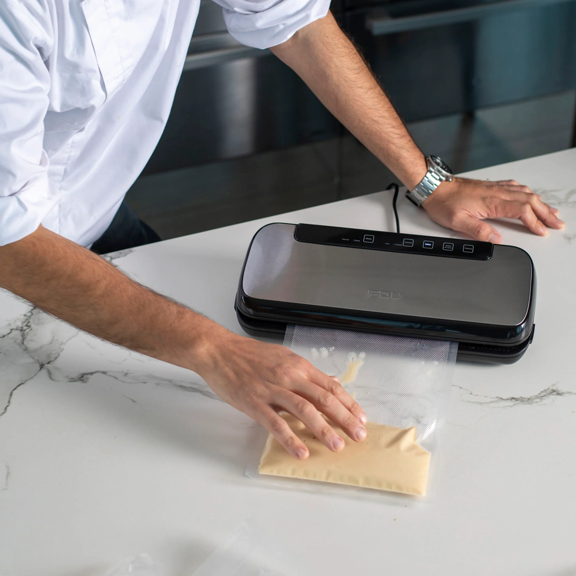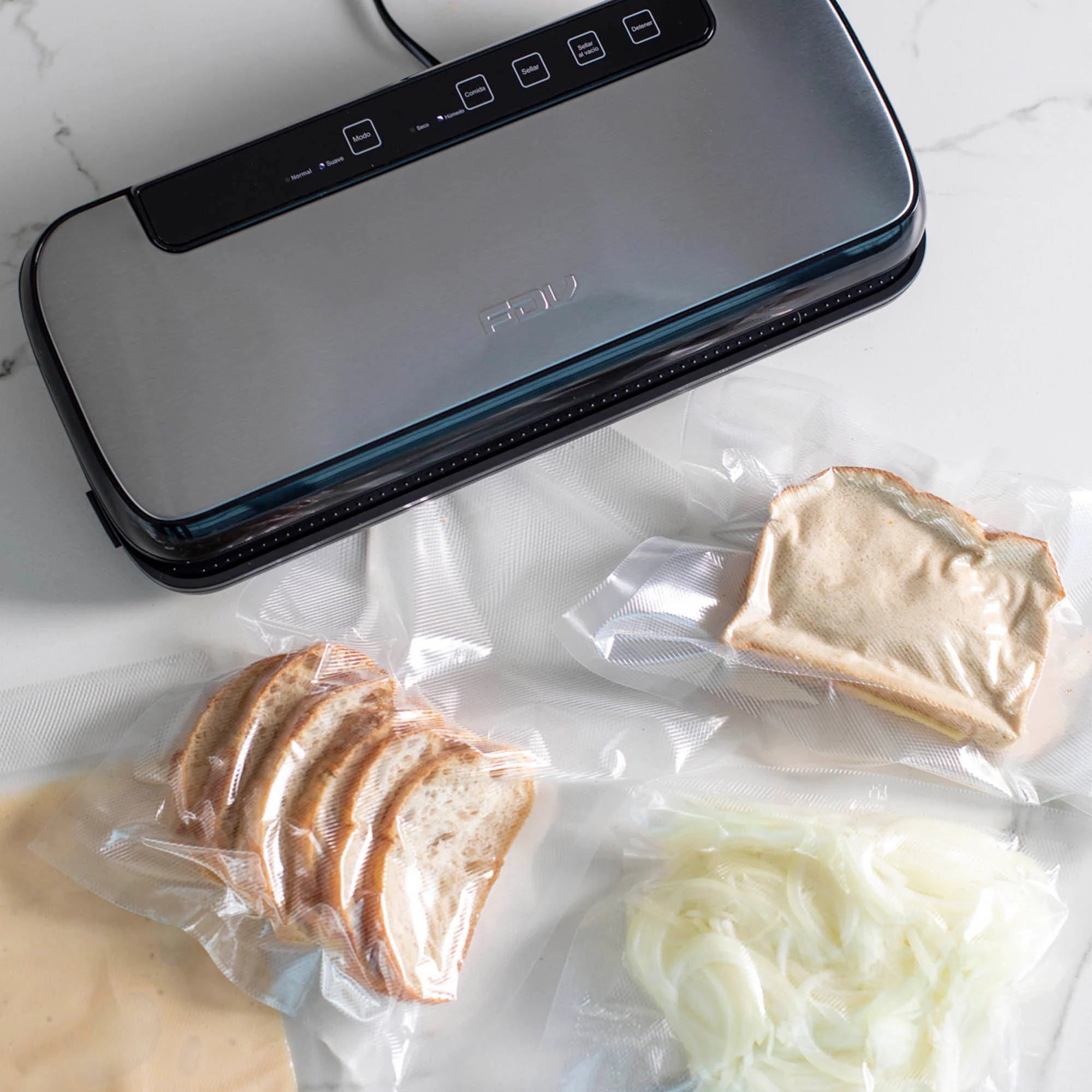 Descubre la innovadora selladora al vacío Astro FDV, con estructura de acero inoxidable anti huellas y mandos touch para un uso fácil. Sella bolsas en 6-10 segundos. Incluye funciones de sellado al vacío y normal, y accesorios como rollo de papel, 5 bolsas y manguera para recipientes al vacío. Ideal para bolsas de 20 cm de ancho, ofrece opciones de sellado suave y normal para preparaciones secas o húmedas. Simplifica tu conservación de alimentos con esta avanzada selladora.